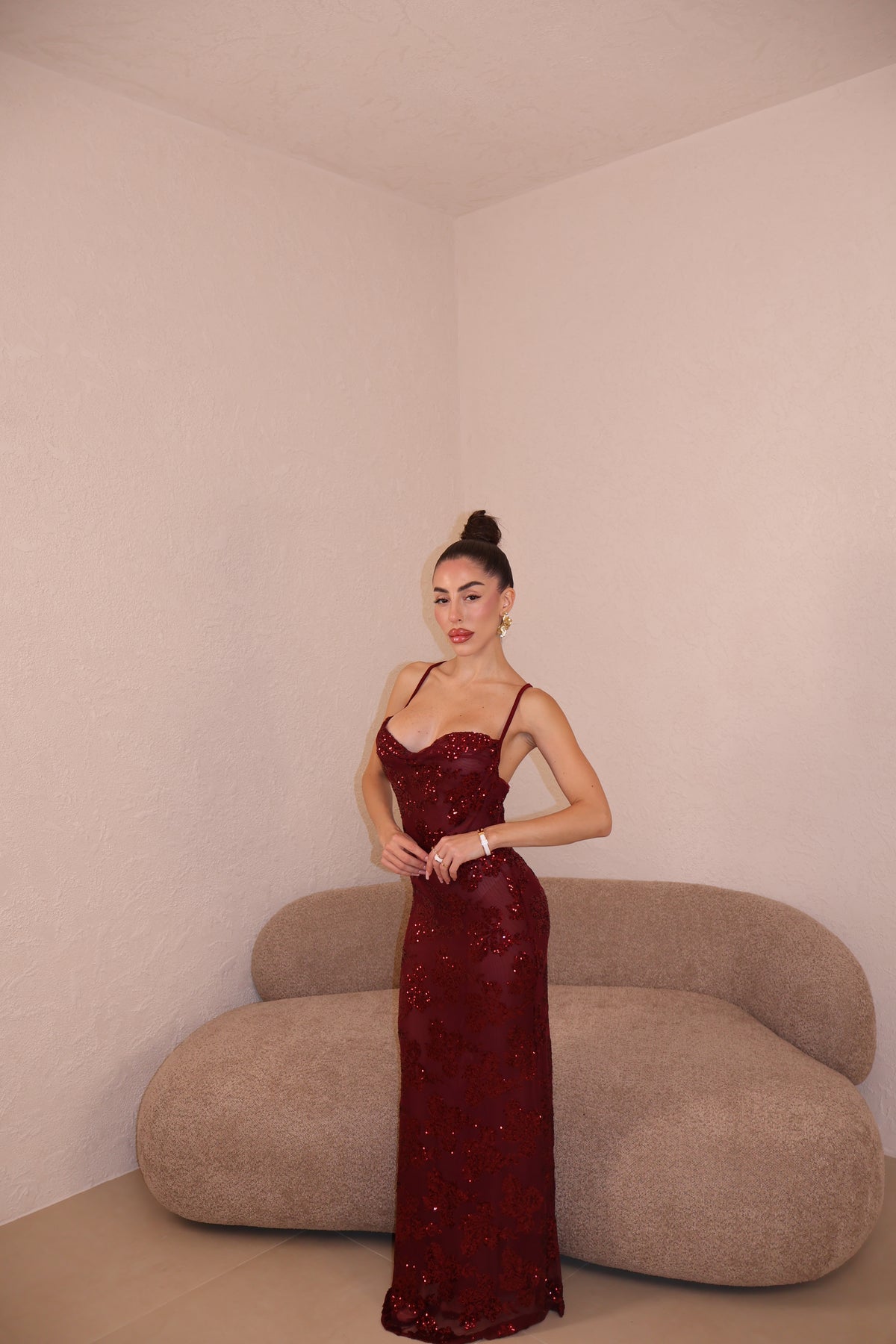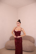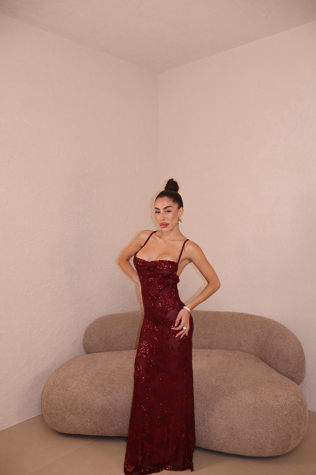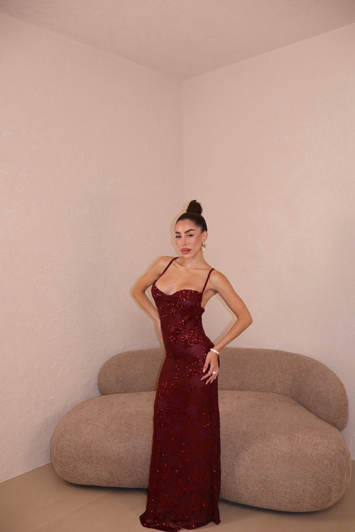 Abito lungo semitrasparente con ricami in paillettes. Bretelle regolabili sul retro con incrocio. Taglia unica.