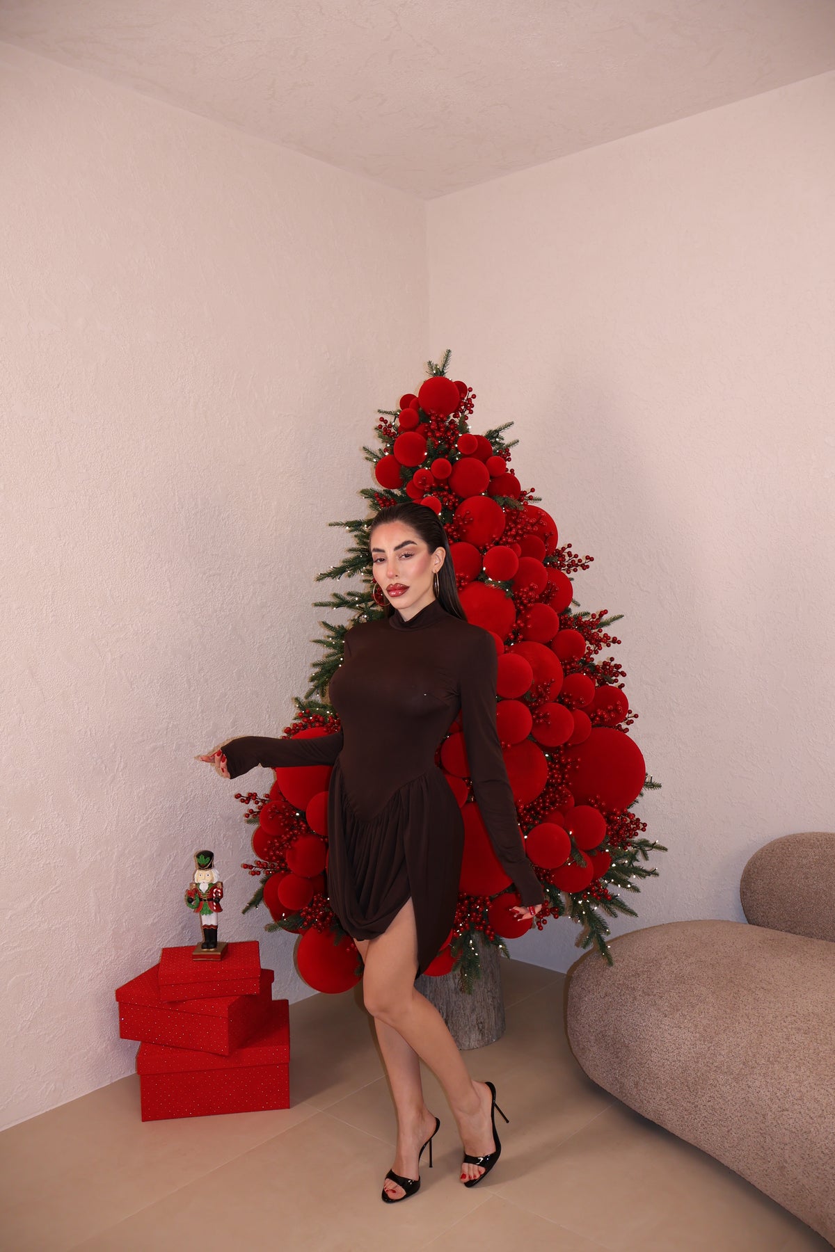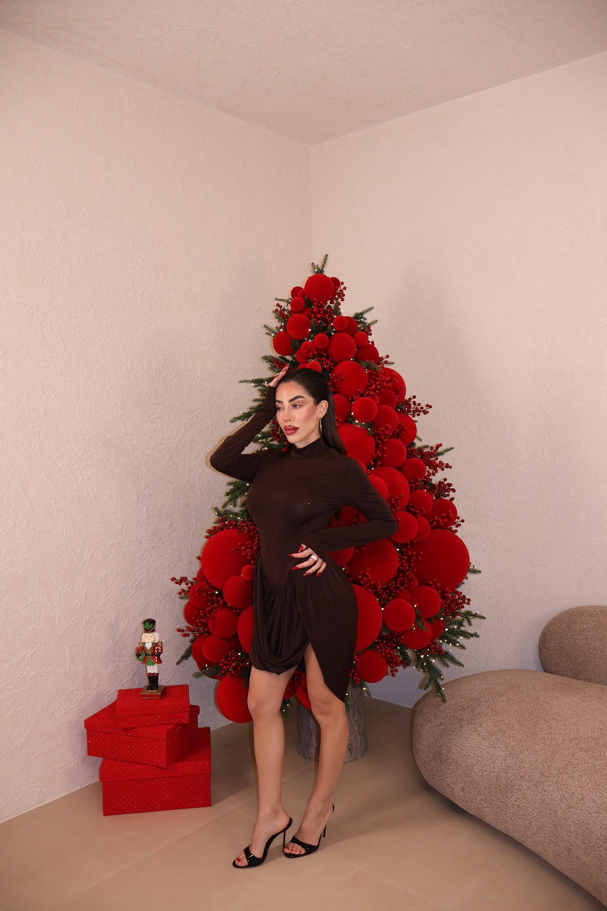 Abito in licra con gonna drappeggiata. Culotte inclusa. Taglia uica.