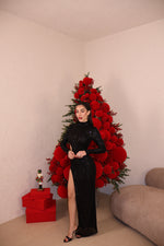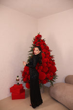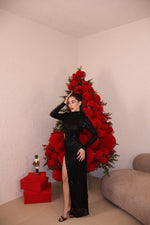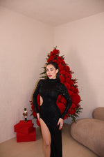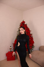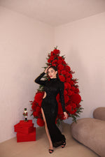 Abito lungo in paillettes con spacco laterale ed apertura sul fianco. Spalline imbottite. Taglia unica.