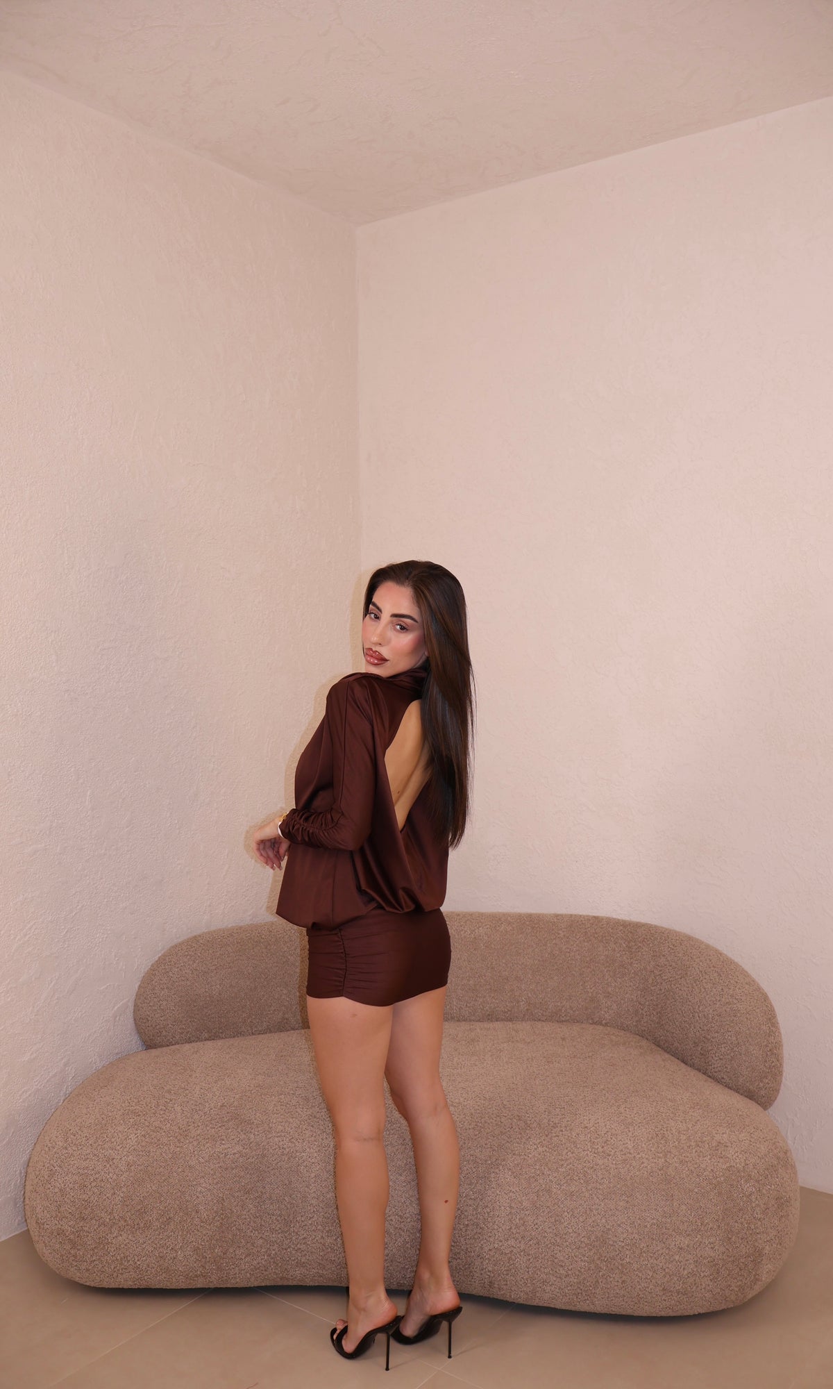 Abito corto in licra con apertura sul retro. Taglia unica.