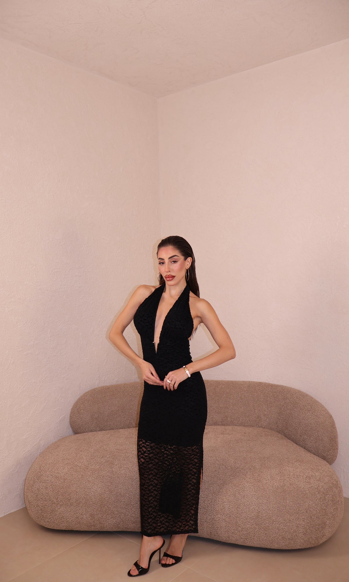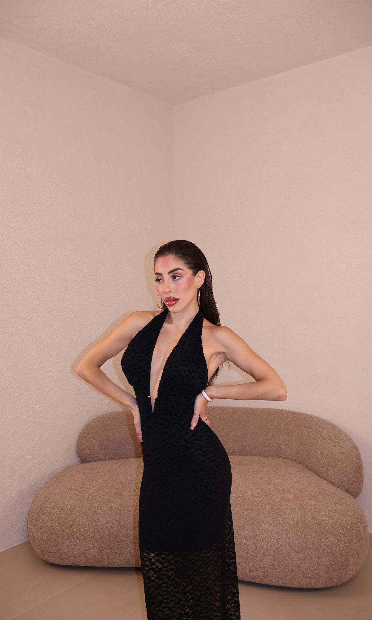 Abito lungo con scollo a V e coppe imbottite. Taglia unica.
