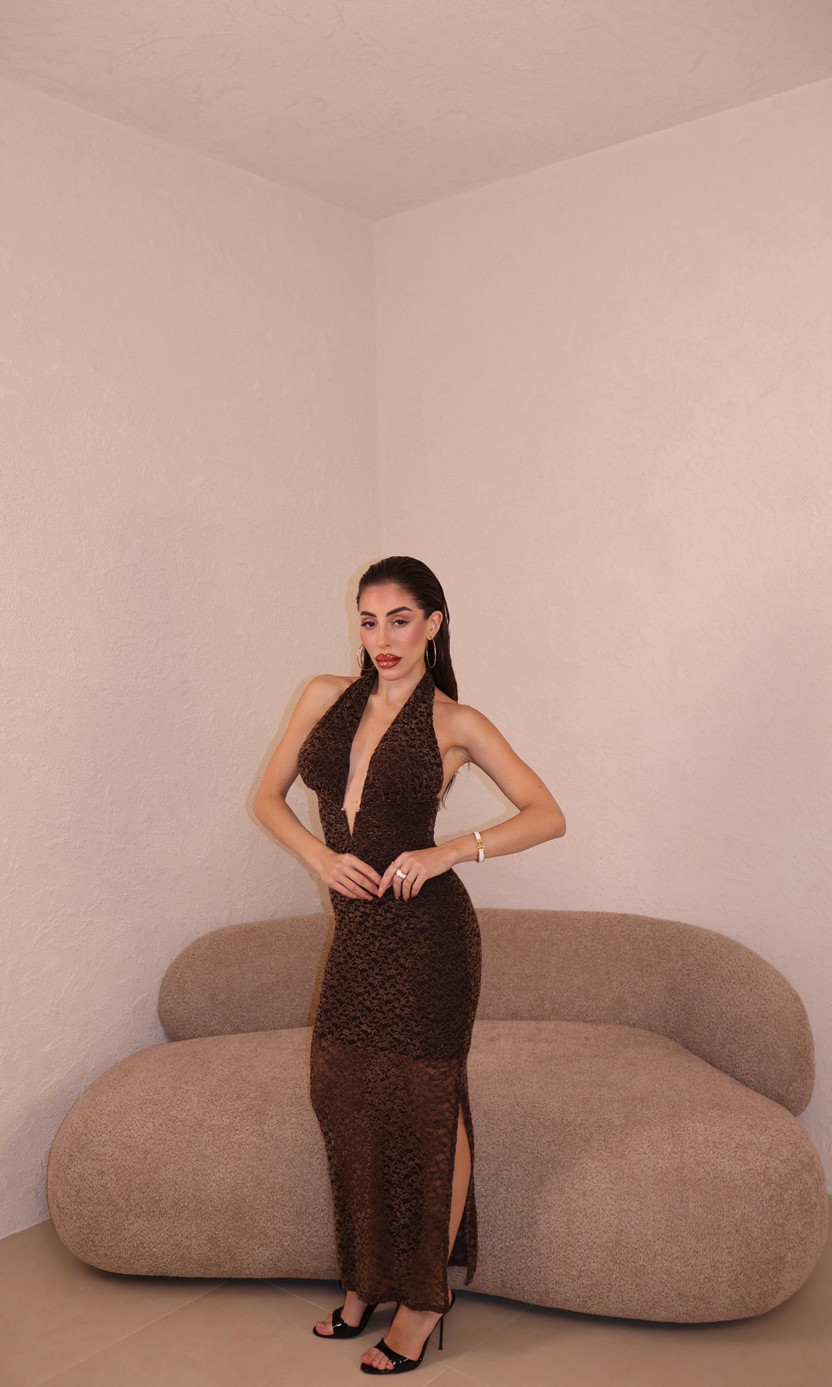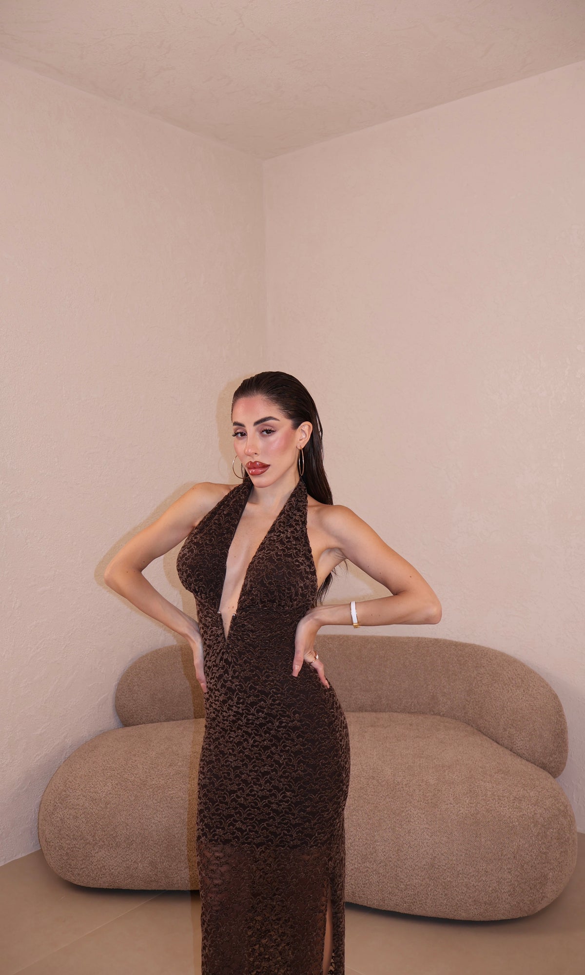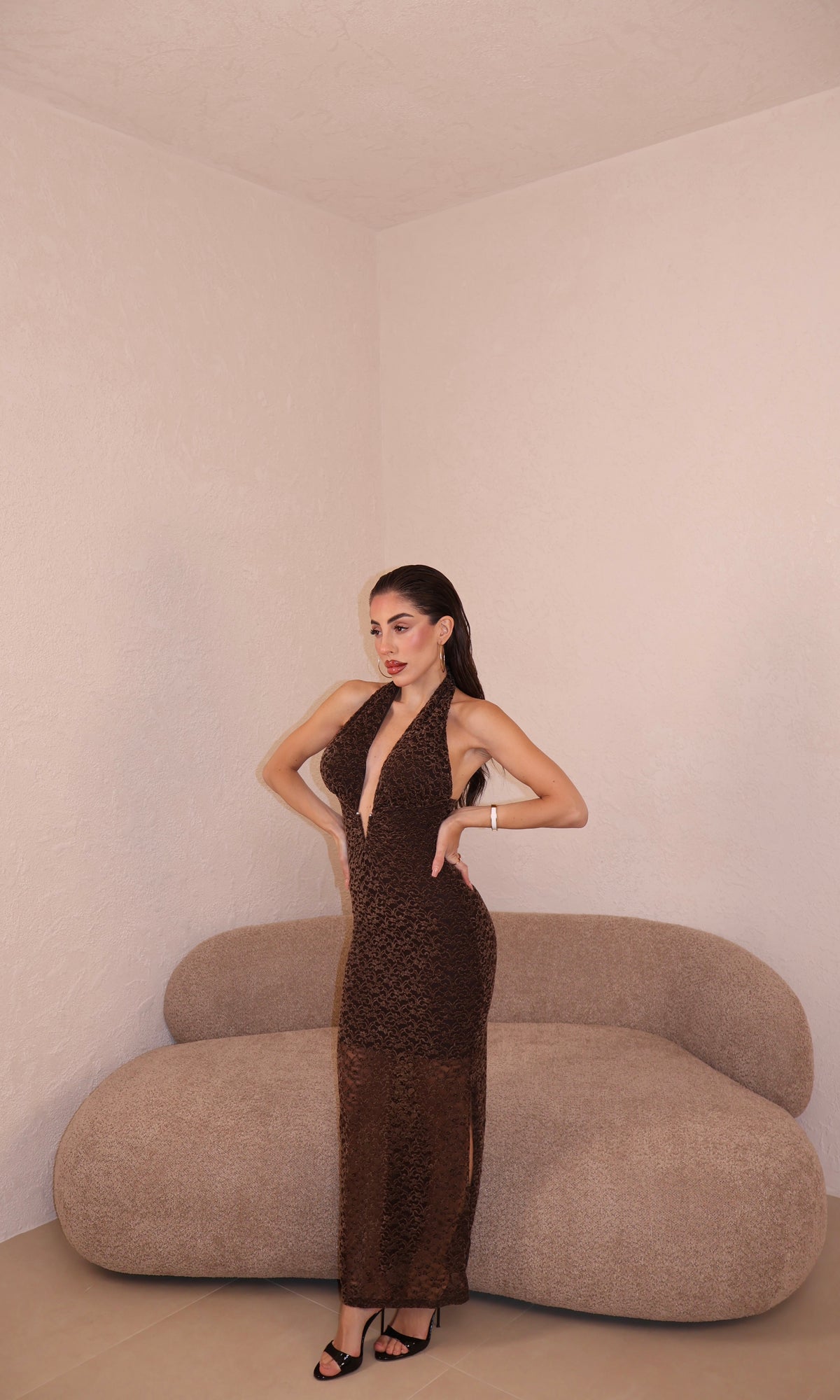 Abito lungo con scollo a V e coppe imbottite. Taglia unica.