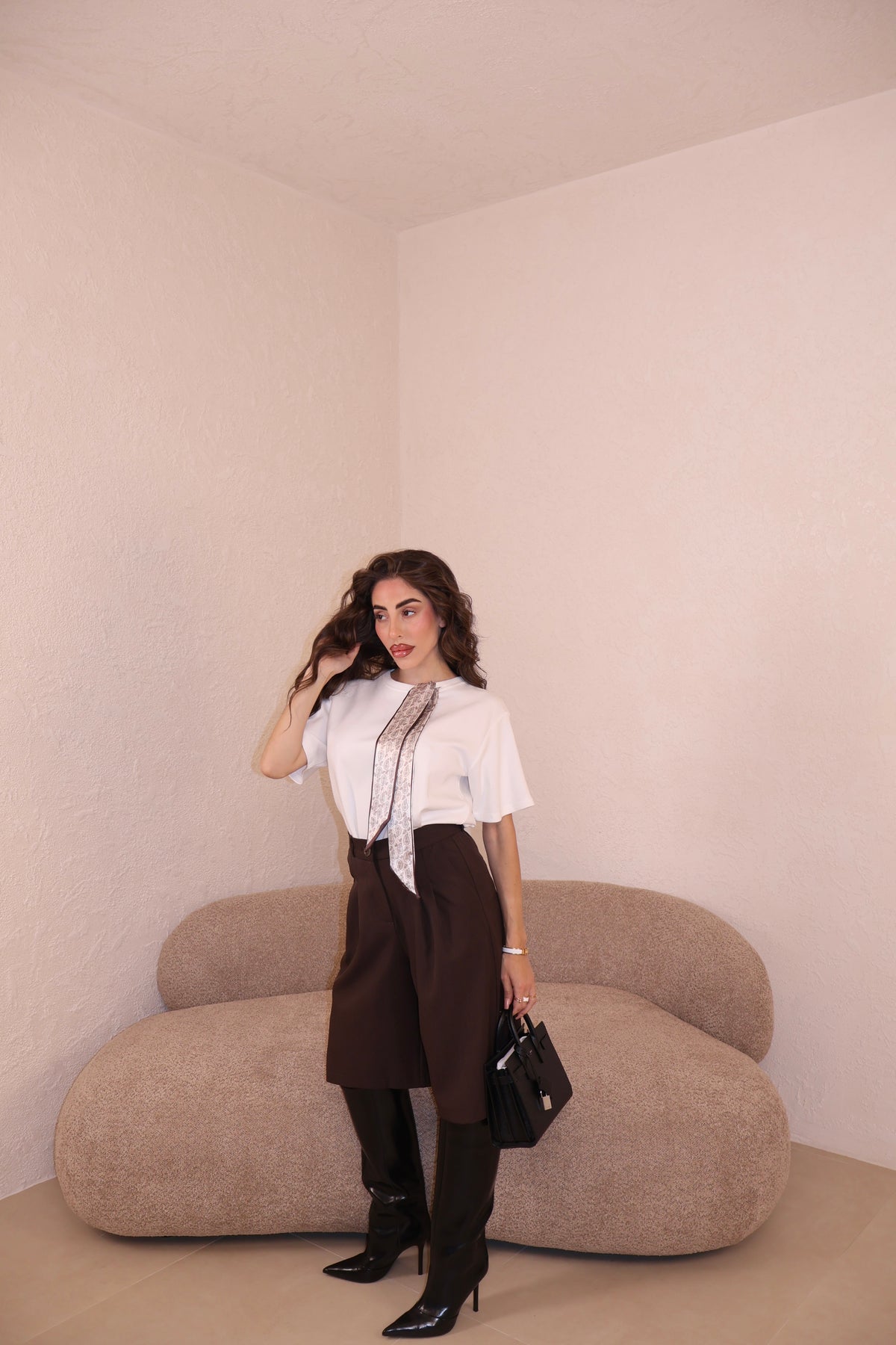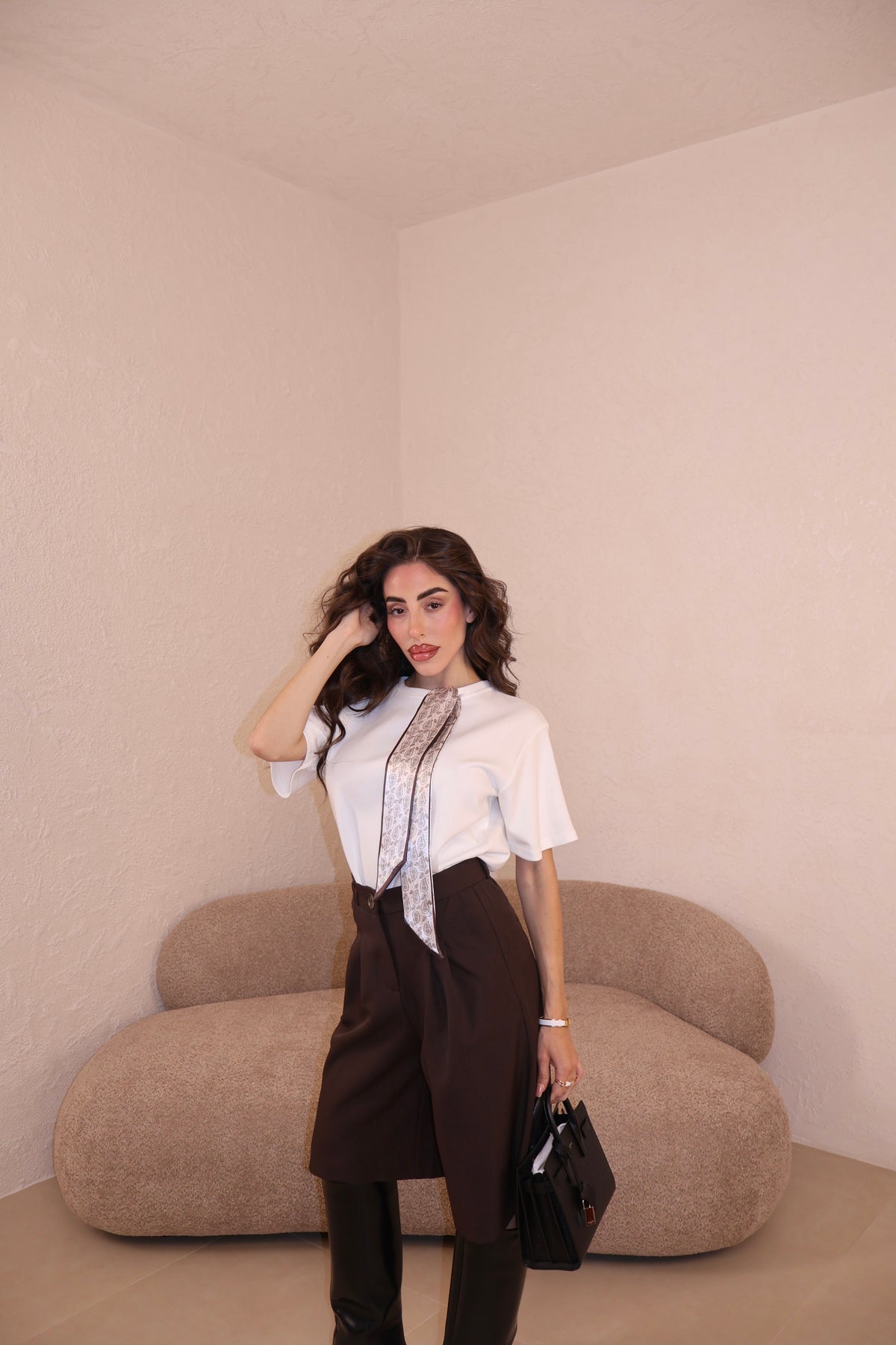 Prezzo unitario / perBermuda vita alta con elastico sul retro e bottone frontale. La modella indossa taglia S.