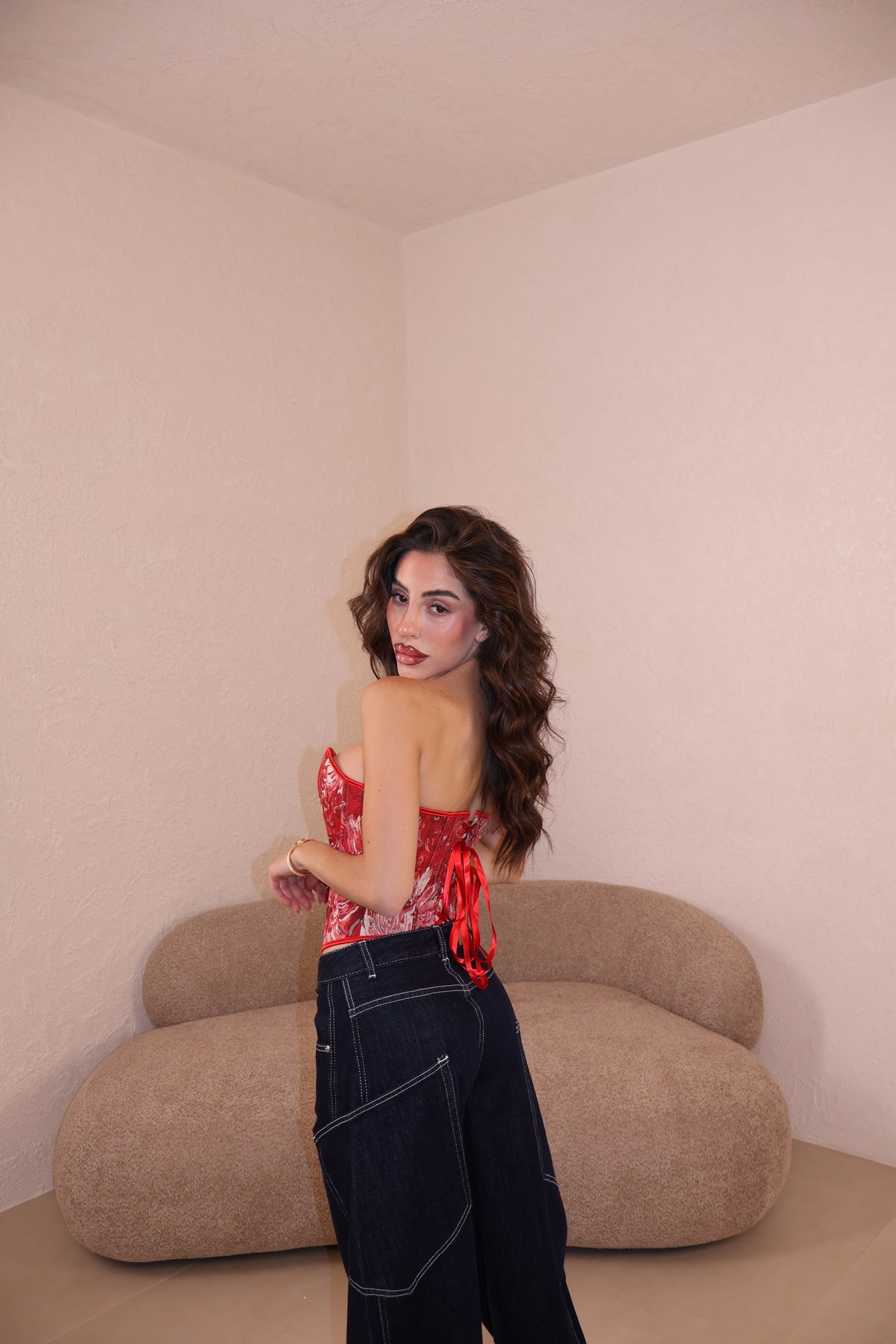 Prezzo unitario / perBustino a fiori con gancetti frontali e laccetti regolabili sul retro. La modella indossa taglia S.