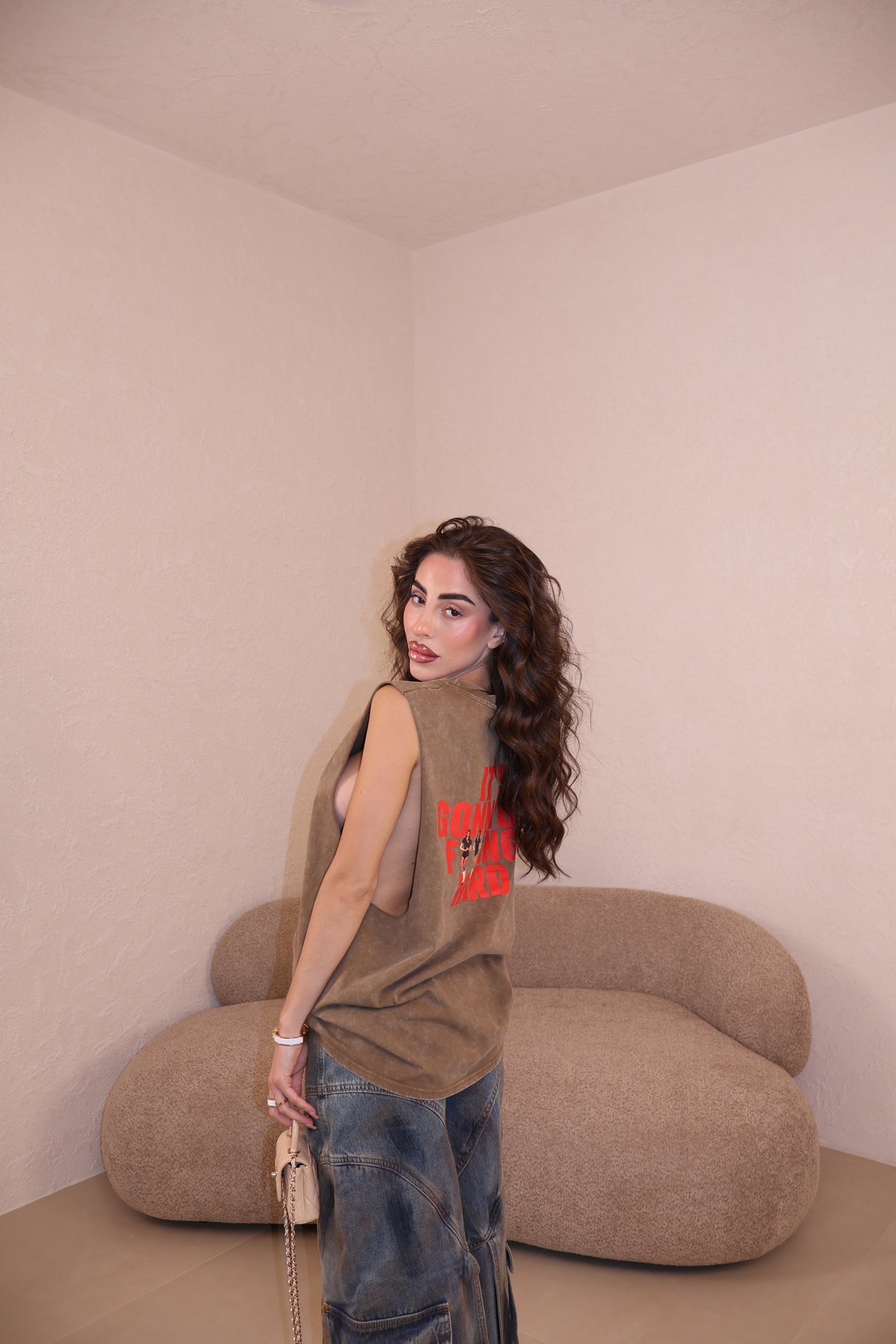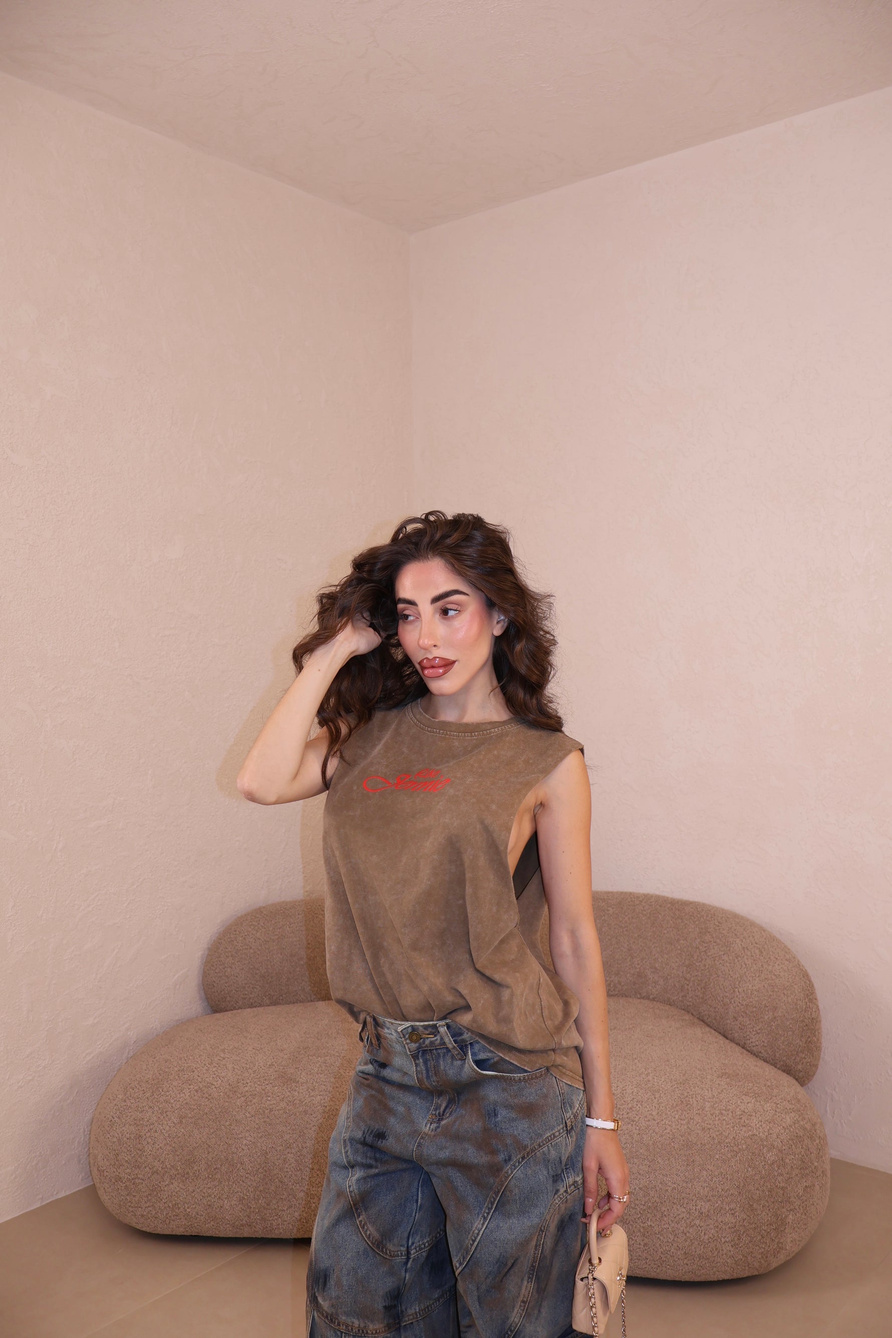 Canotta con giromanica ampio e dettagli scritte sul retro. Taglia unica.
