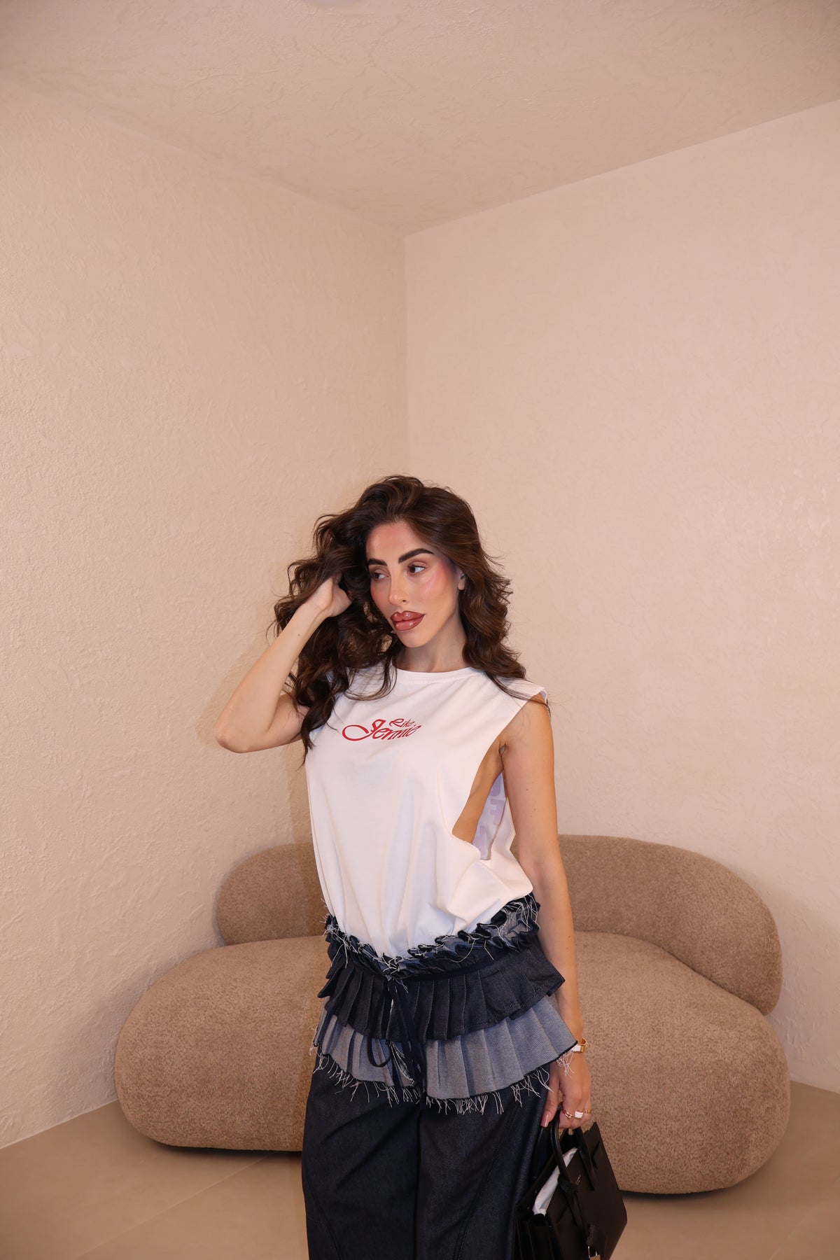 Canotta con giromanica ampio e dettagli scritte sul retro. Taglia unica.