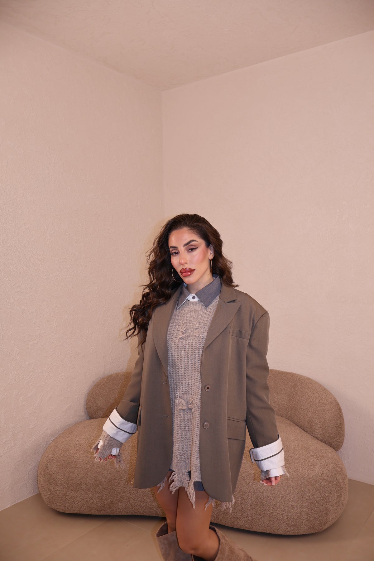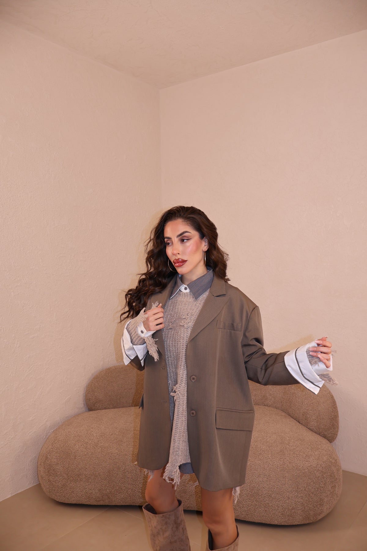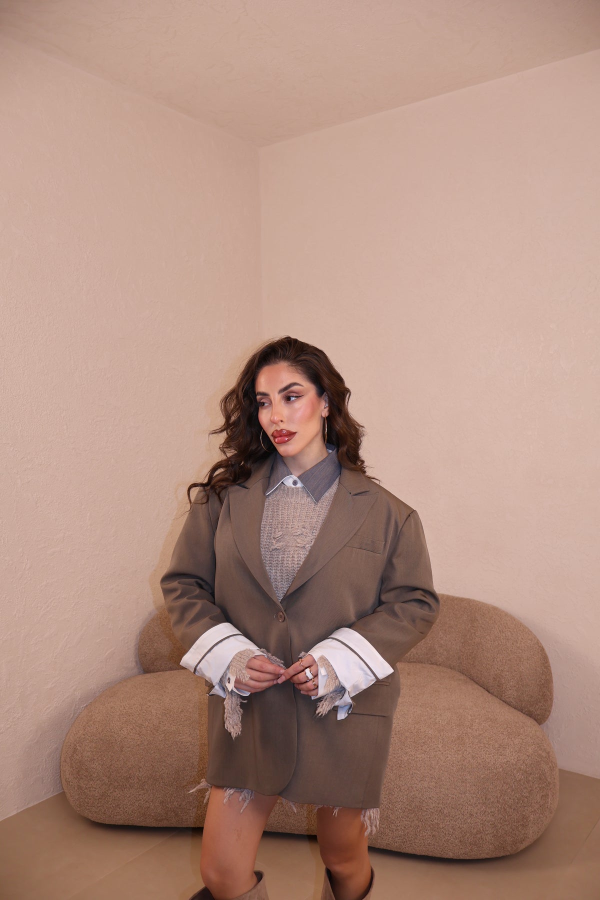 Giacca modello over con dettagli risvolti alle maniche. Taglia unica.