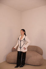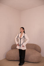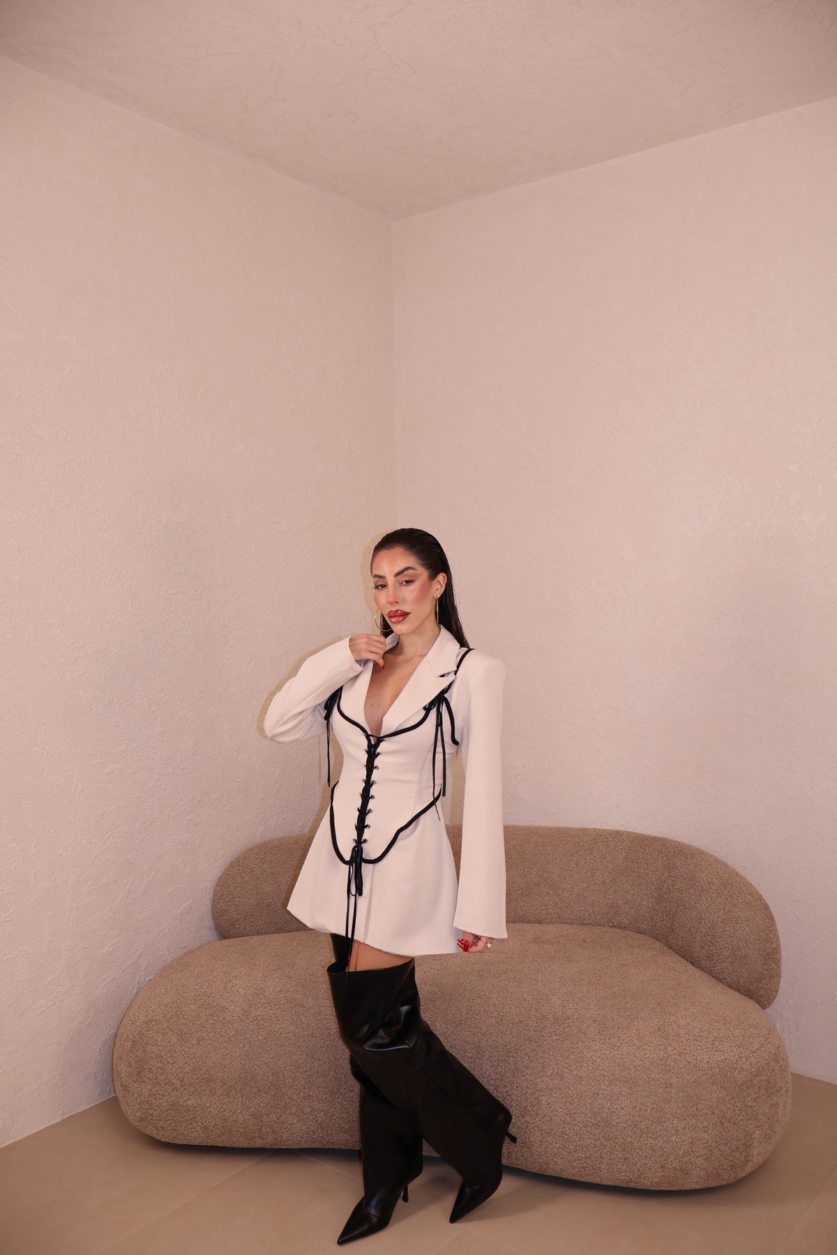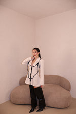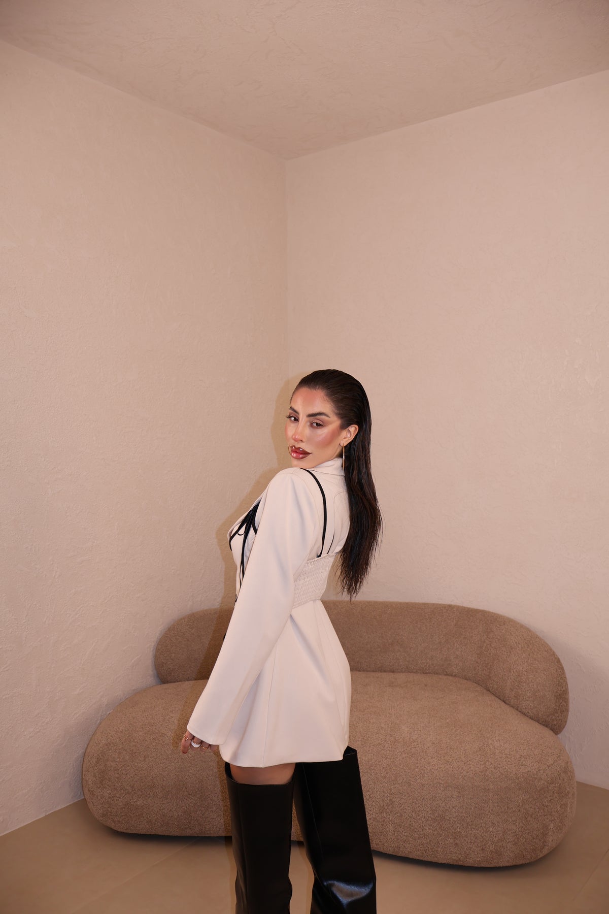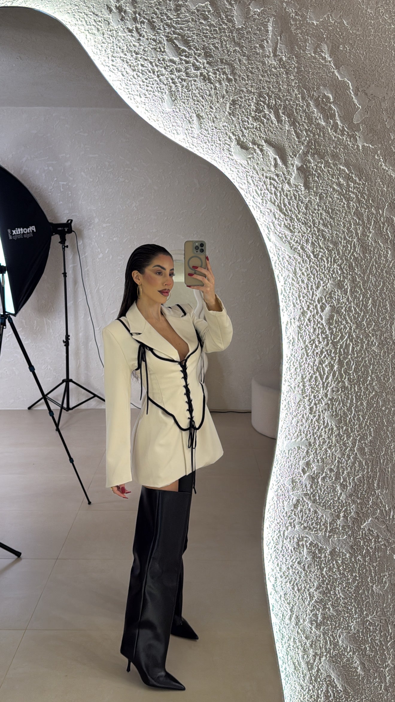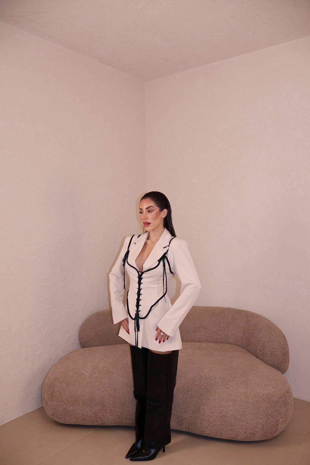Blazer corto con spalline imbottite e corsetto incluso con elastico sul retro e laccetti regolabili. Tagli unica.