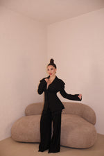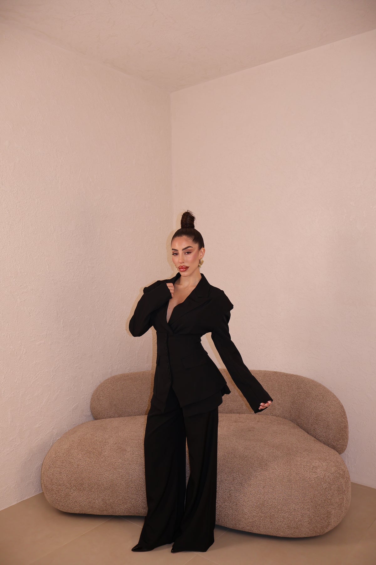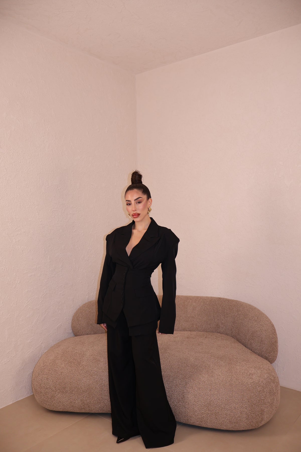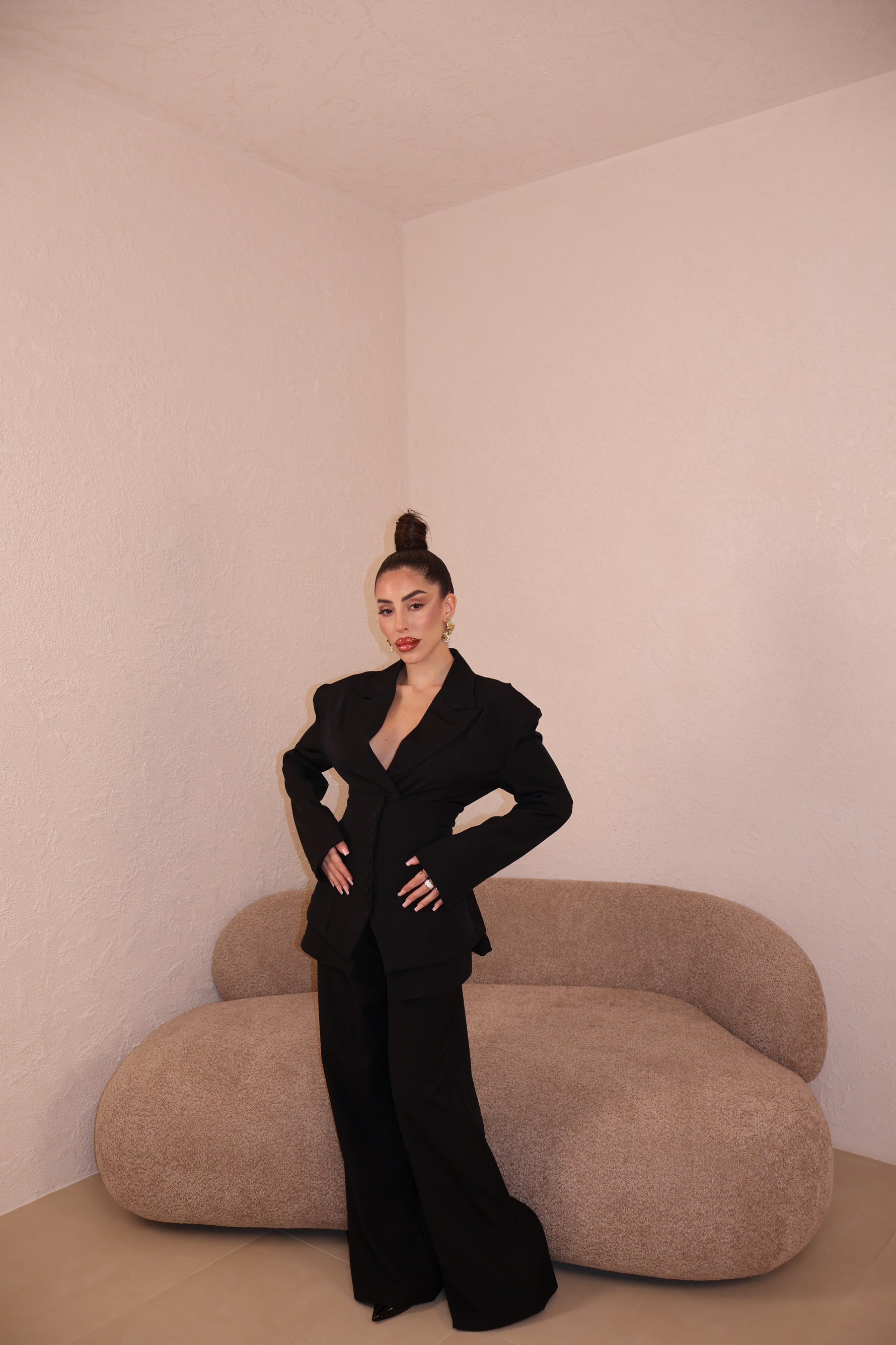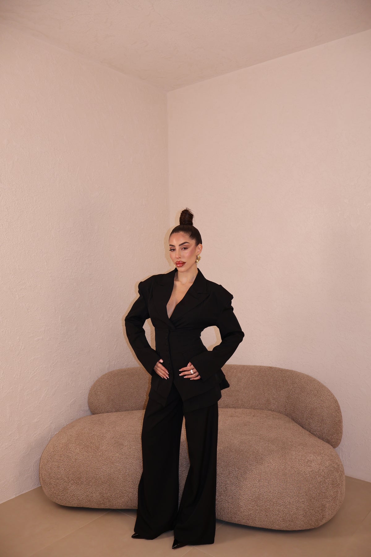 Il pantalone a palazzo ha passanti, l’elastico e piccoli spacchi lateralmente. Veste morbido/ leggermente largo. Con i tacchi è pazzesco. Grazie di tutto.❤️