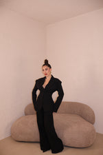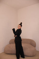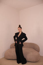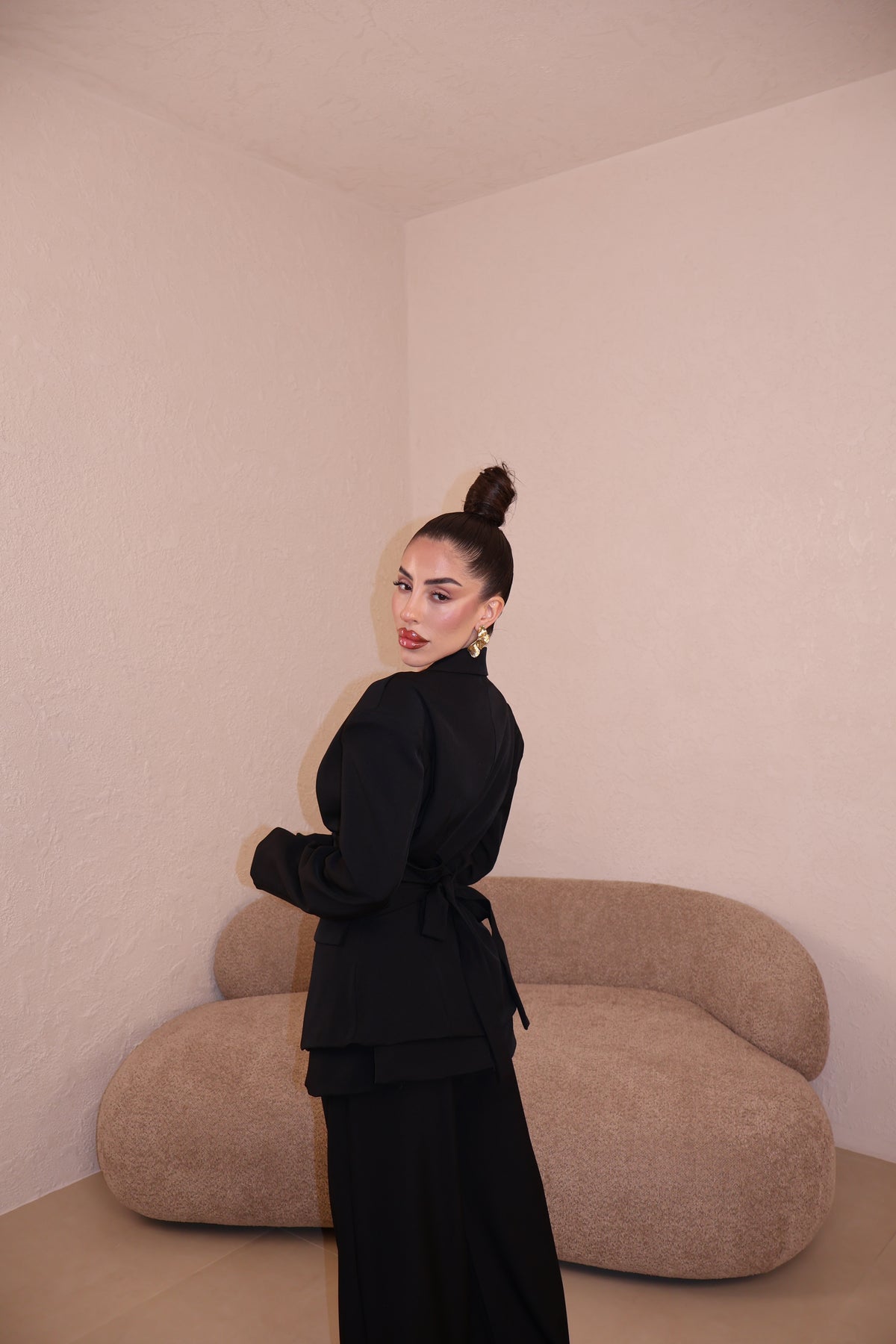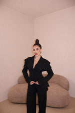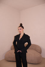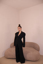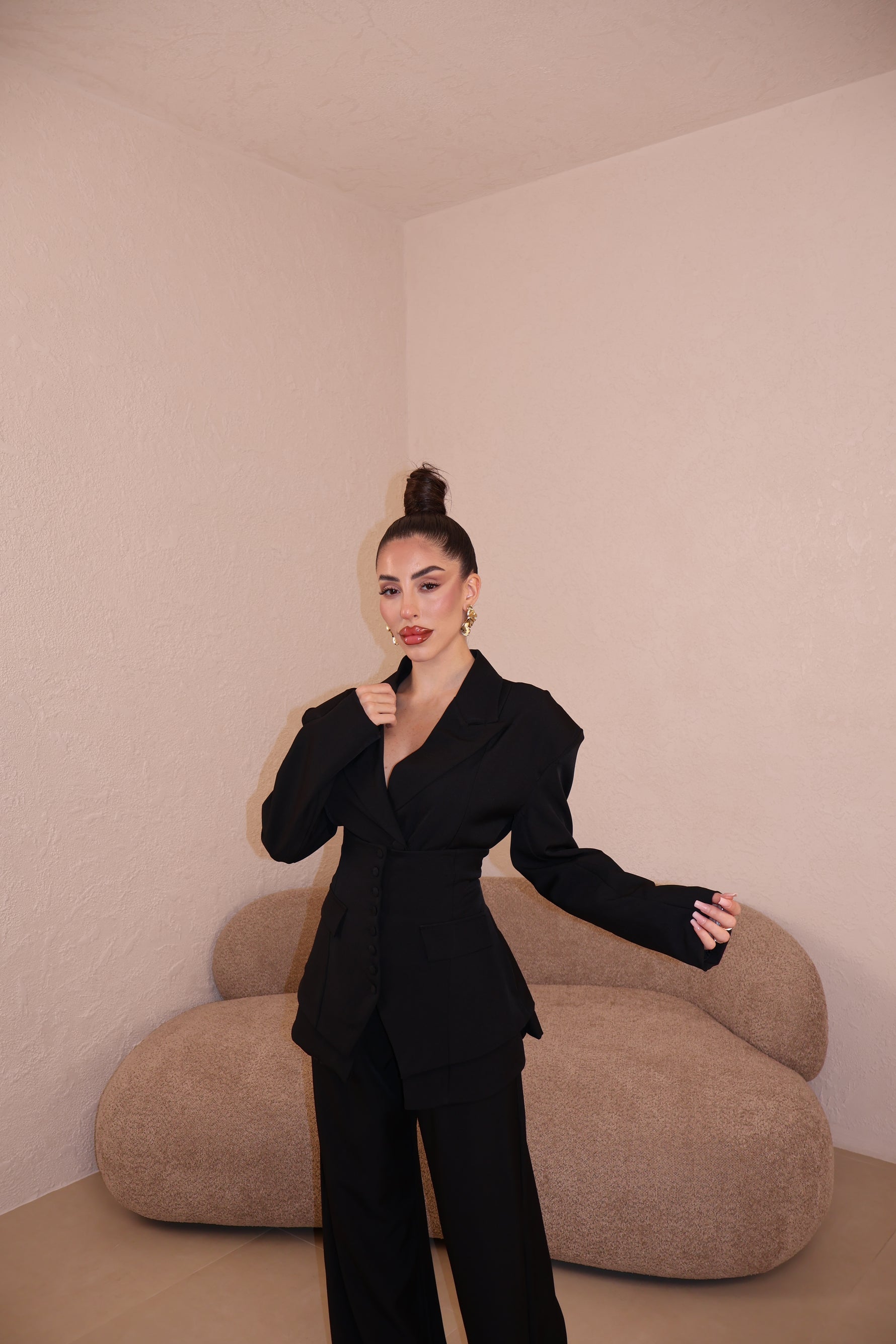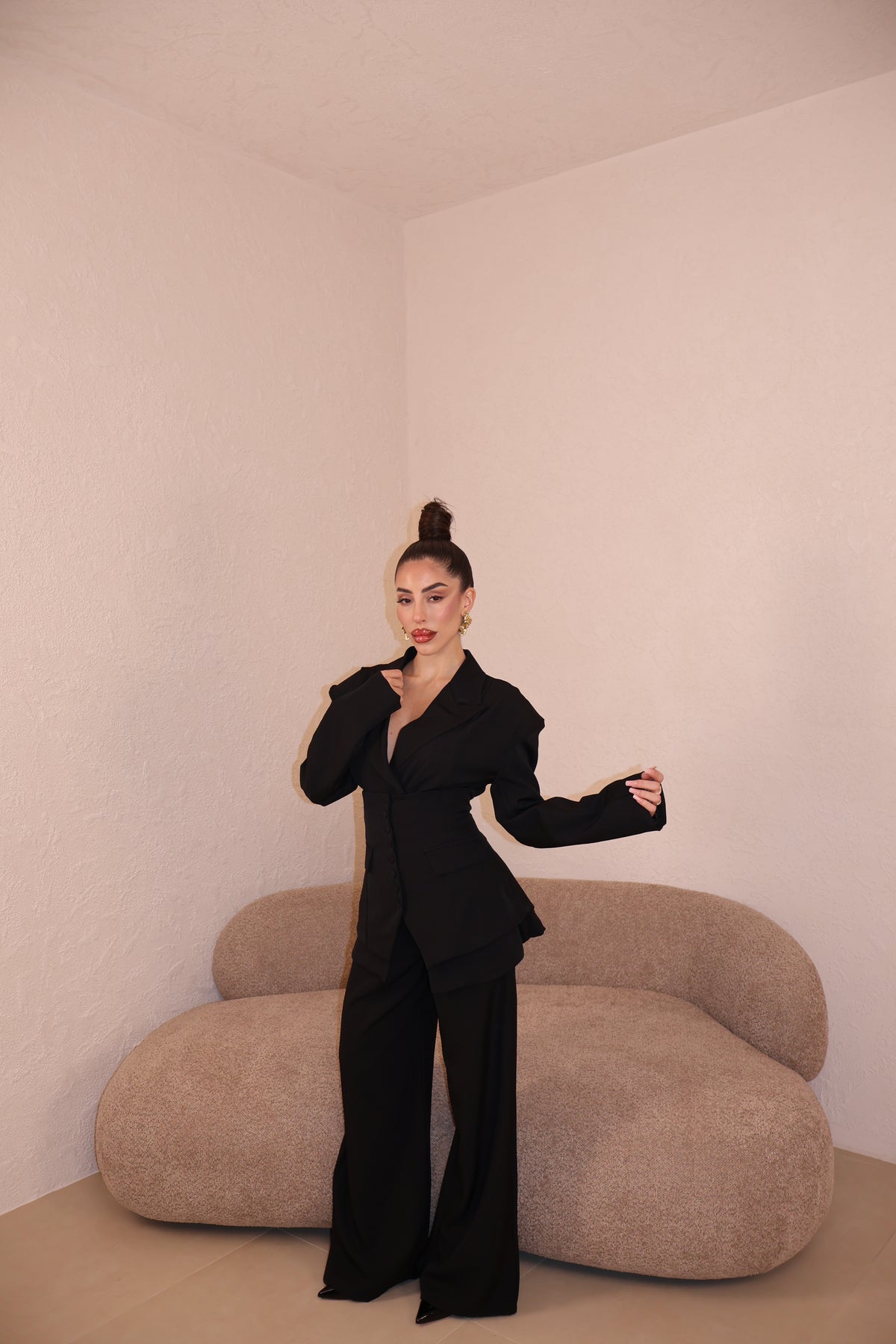 Prezzo unitario / perTailleur composto da pantaloni con elastico sul retro e giacca con bustino in vita regolabile sul retro. Taglia unica.