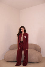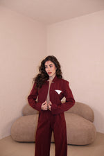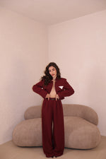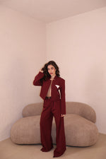 Prezzo unitario / perTailleur composto da pantalone con cintura inclusa ed elastico sul retro, giacca crop con taschino. Taglia unica.