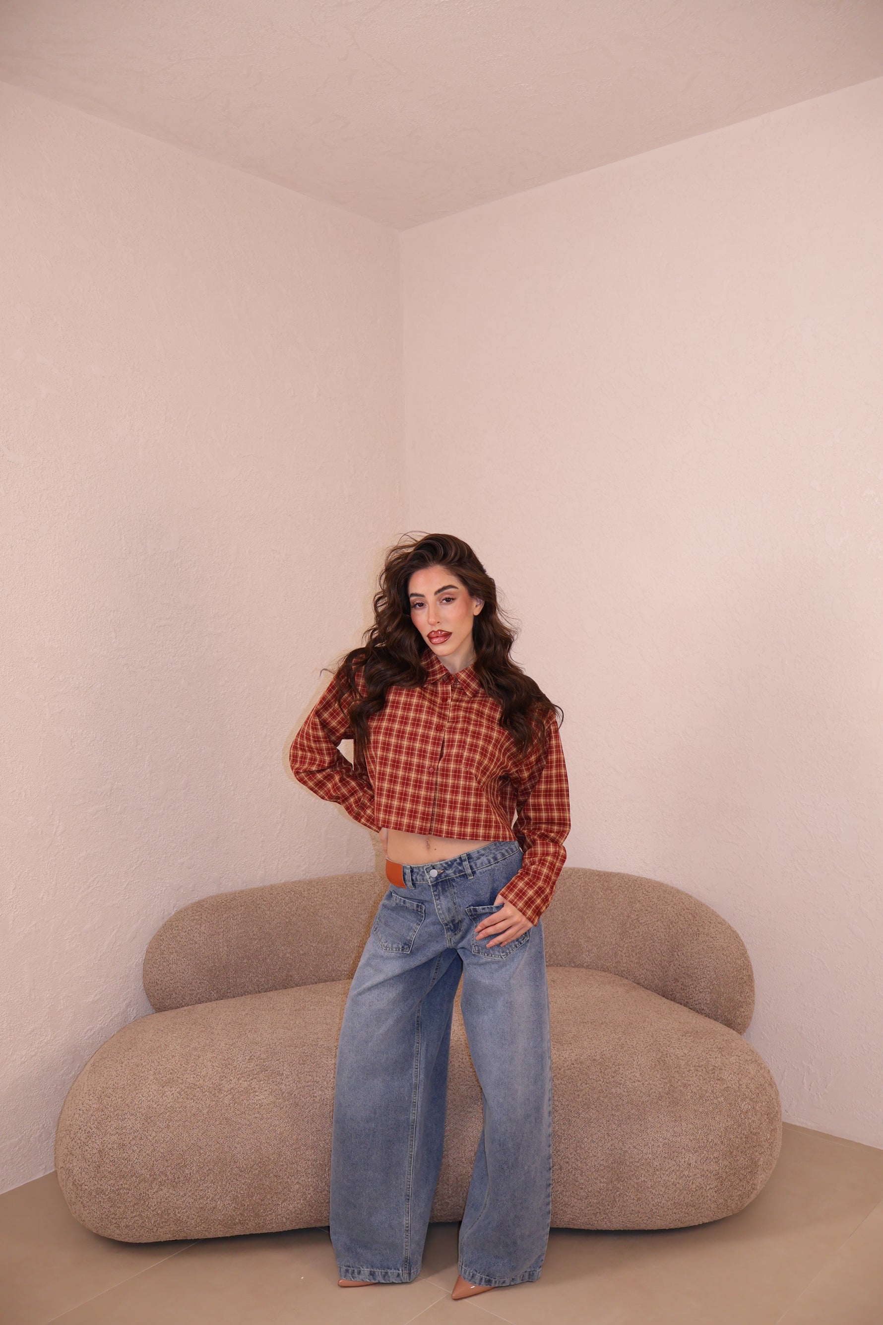 Camicia corta in fantasia con spalline imbottite. Taglia unica.