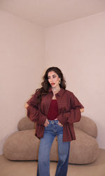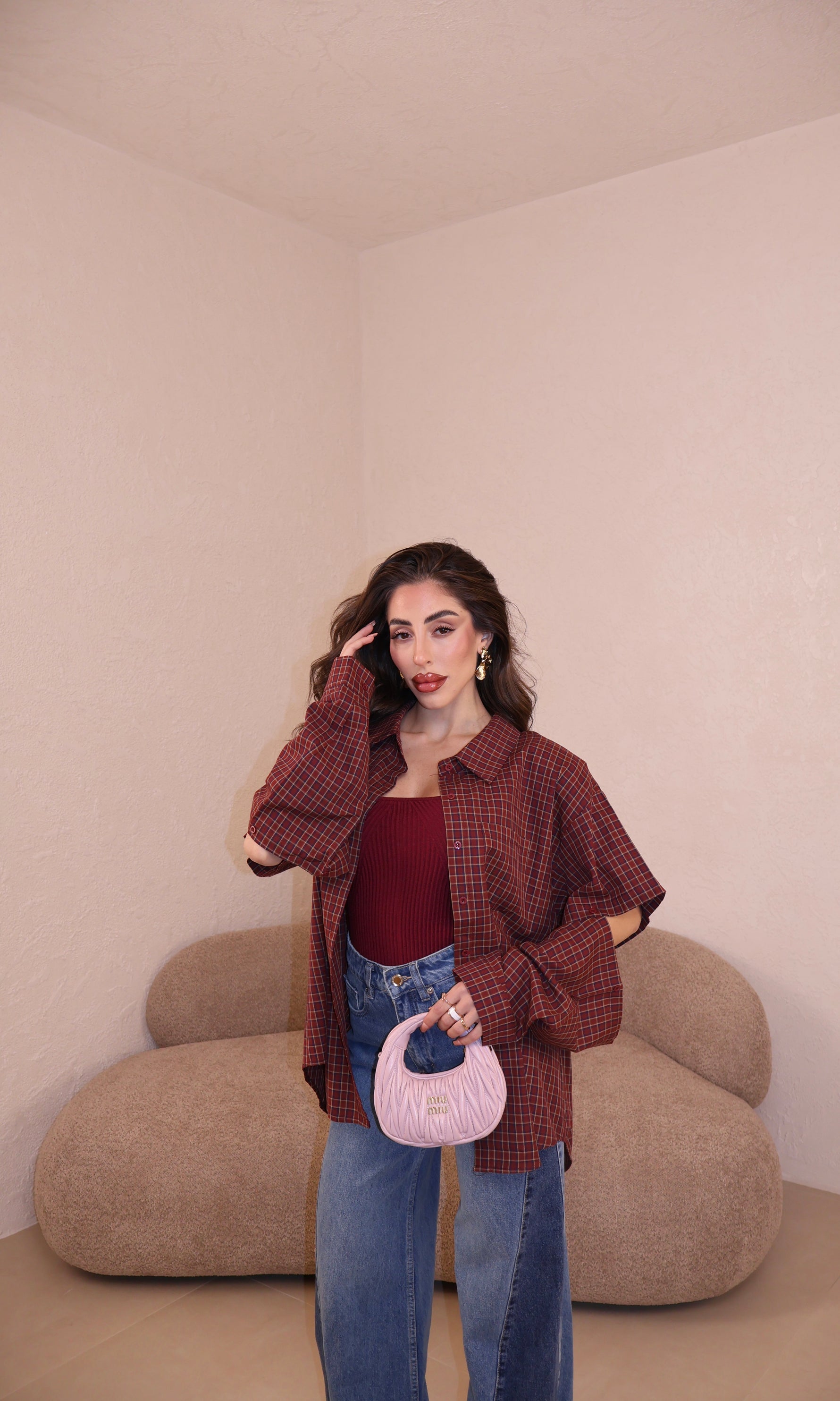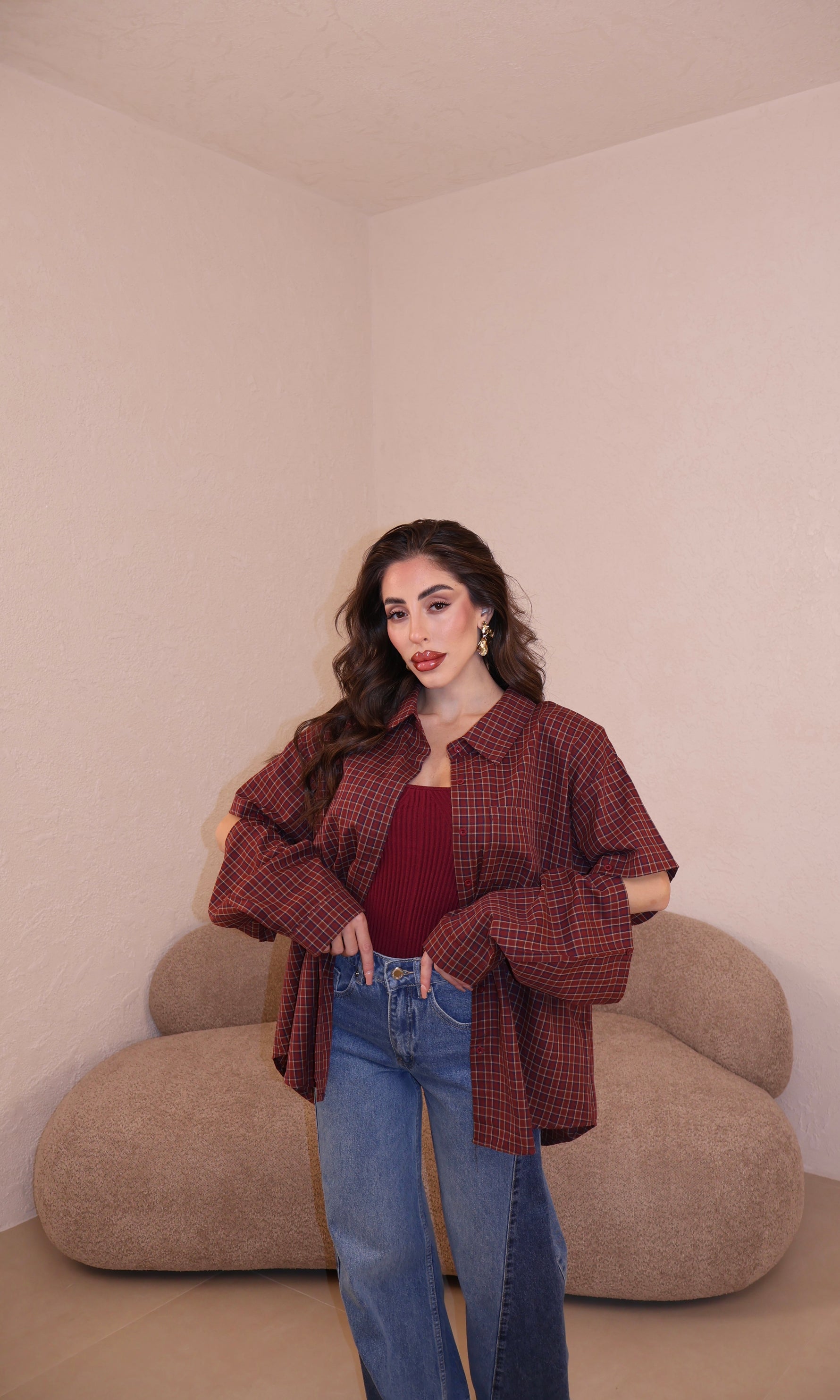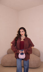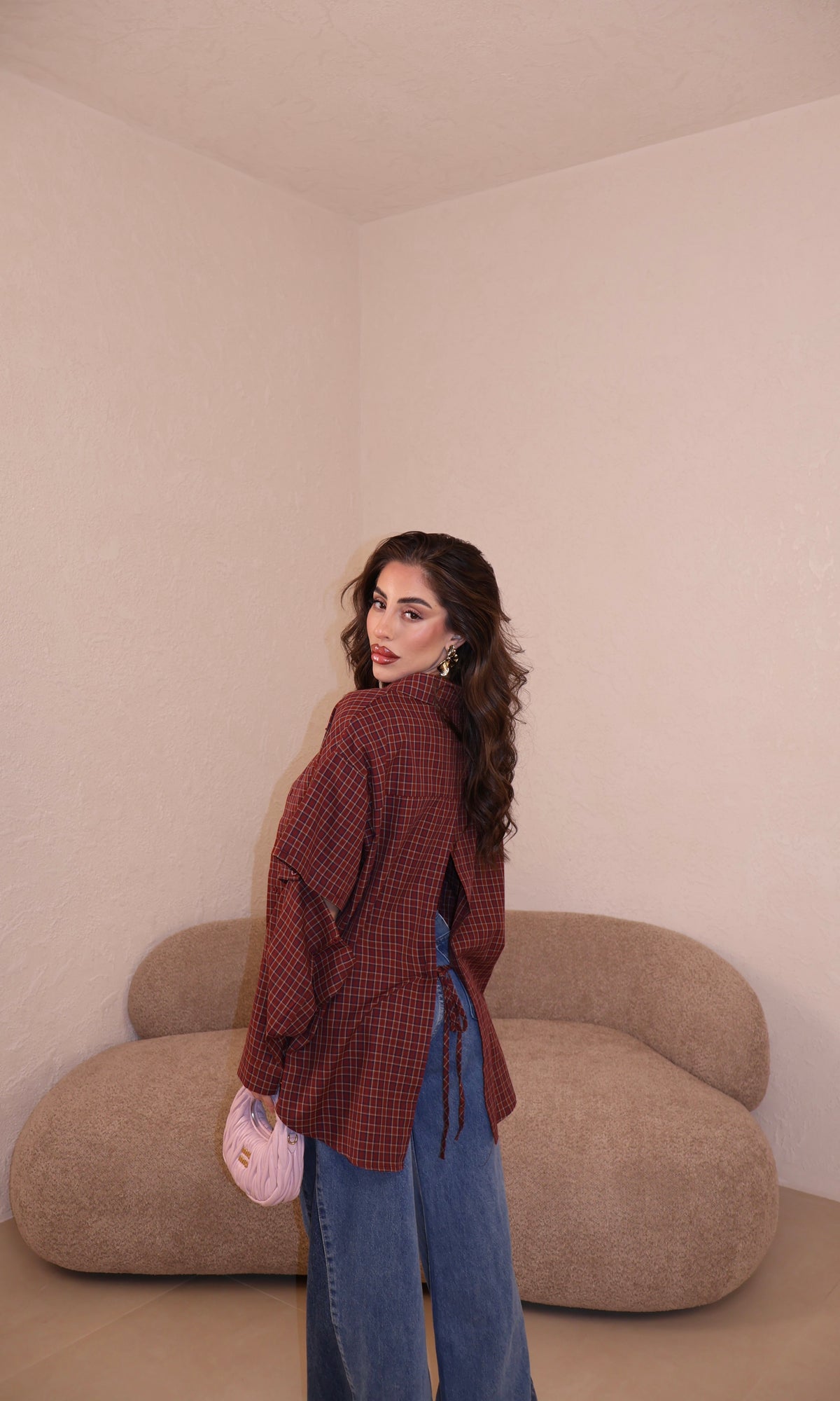 Camicia nella fantasia a quadretti con maniche removibili e laccetti sul retro. Taglia unica.