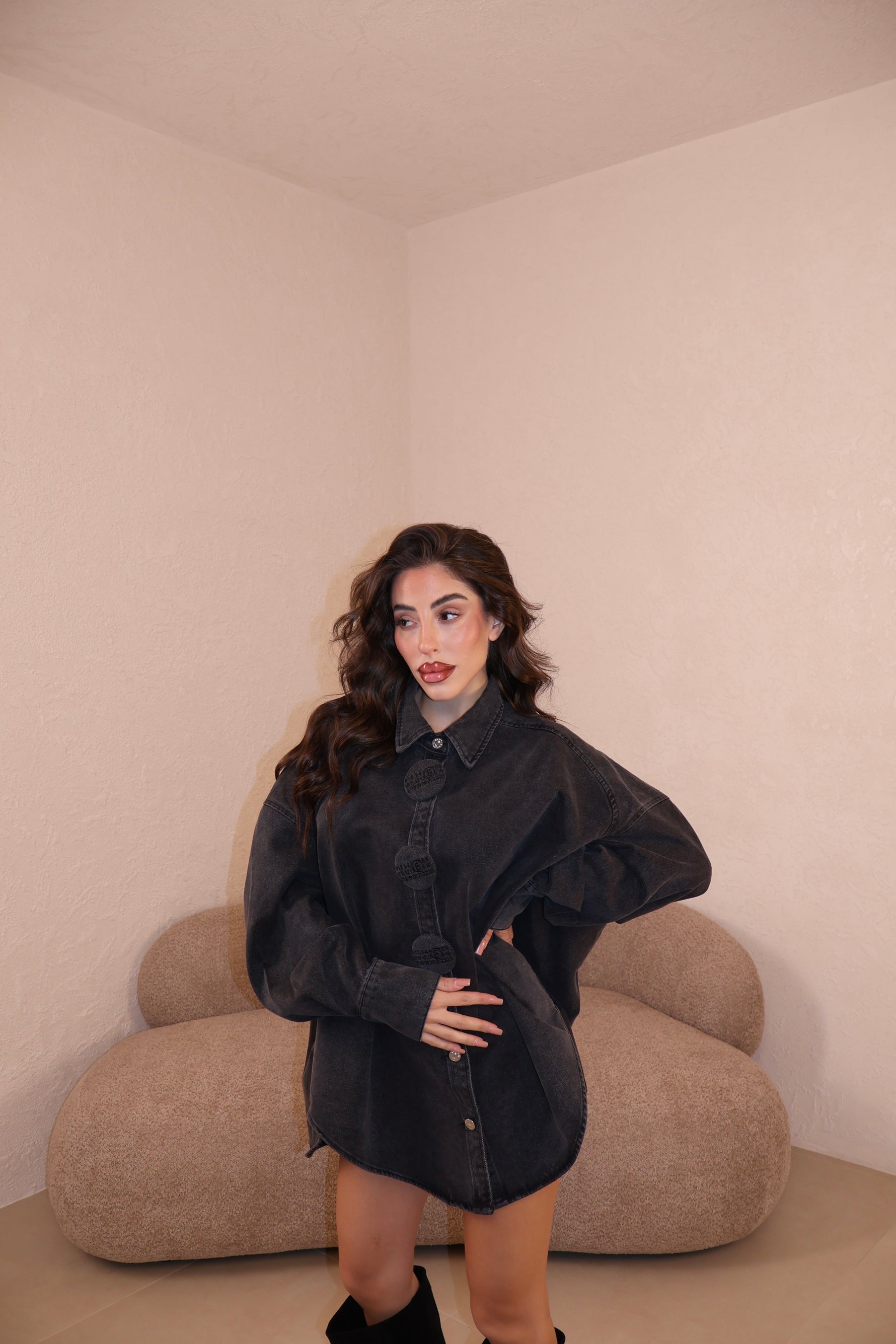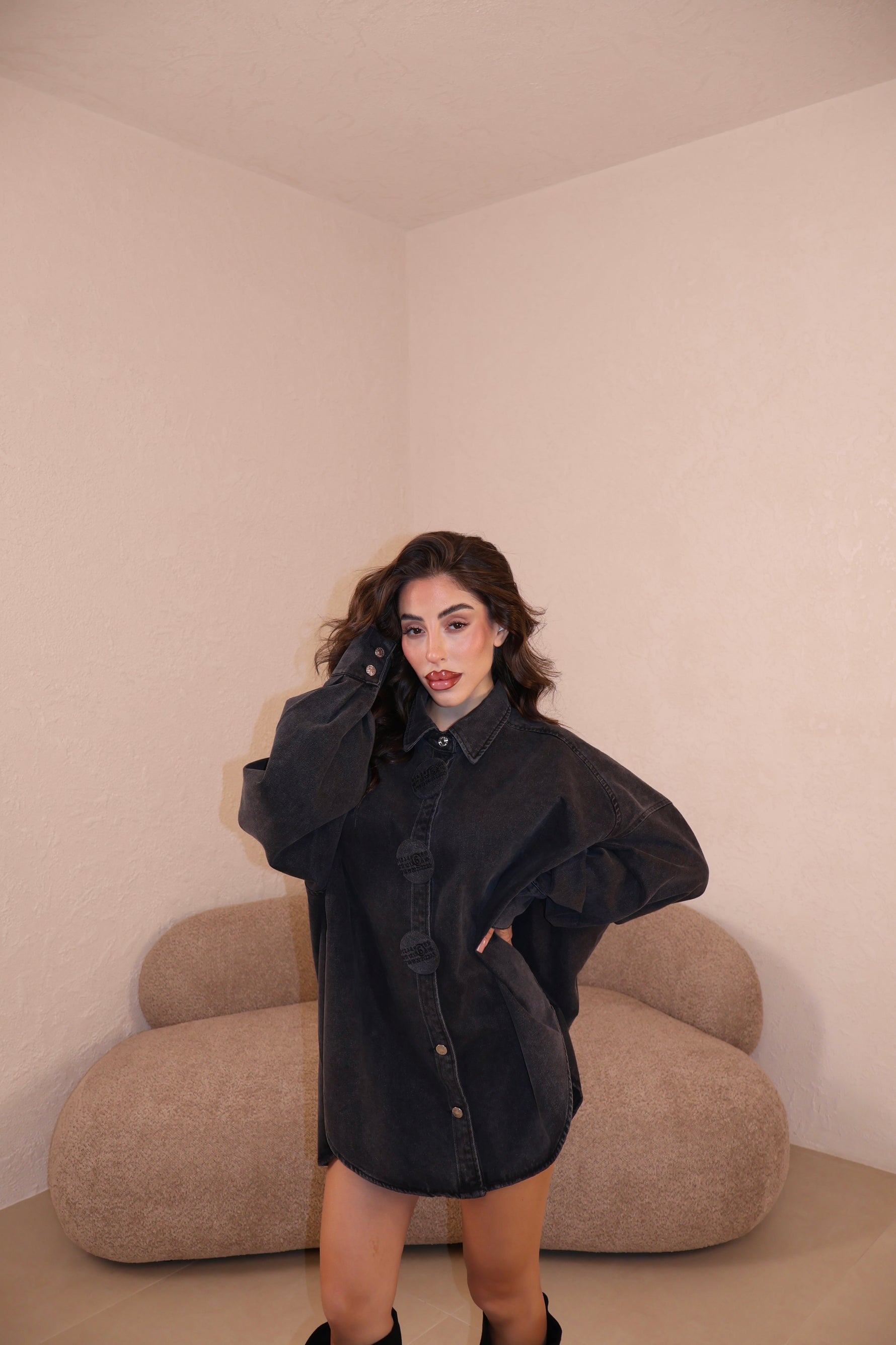 Camicia modello over con dettaglio bottoni grandi. Taglia unica.