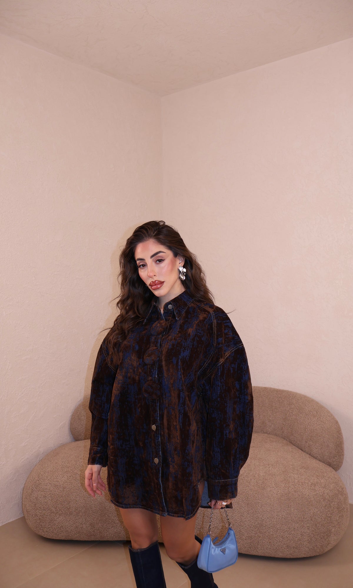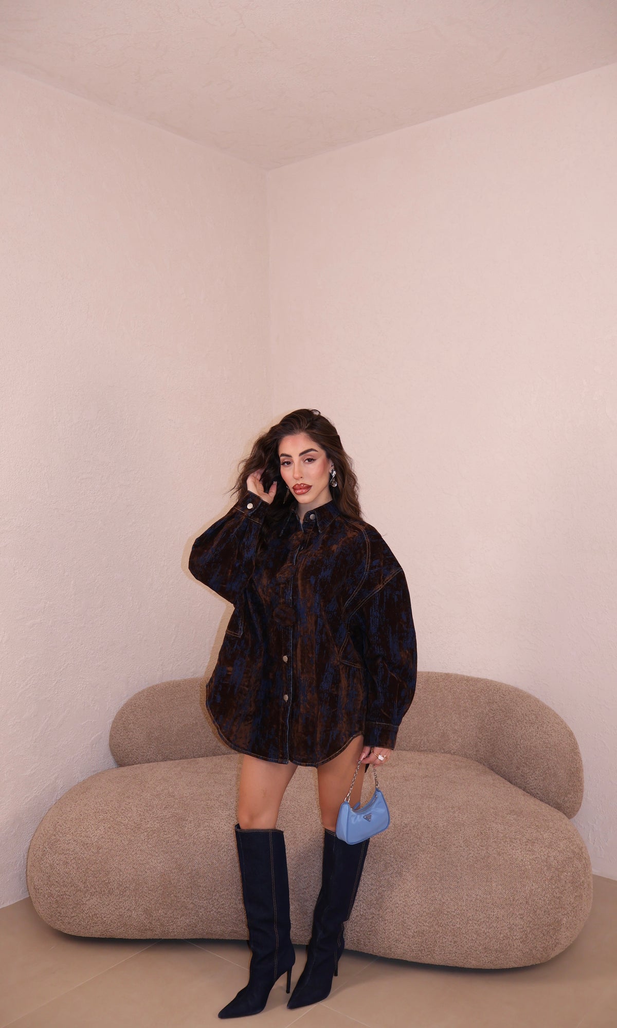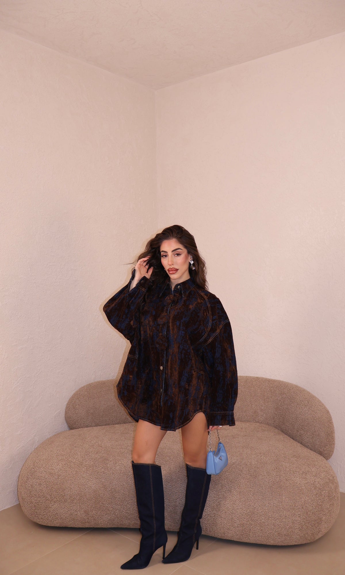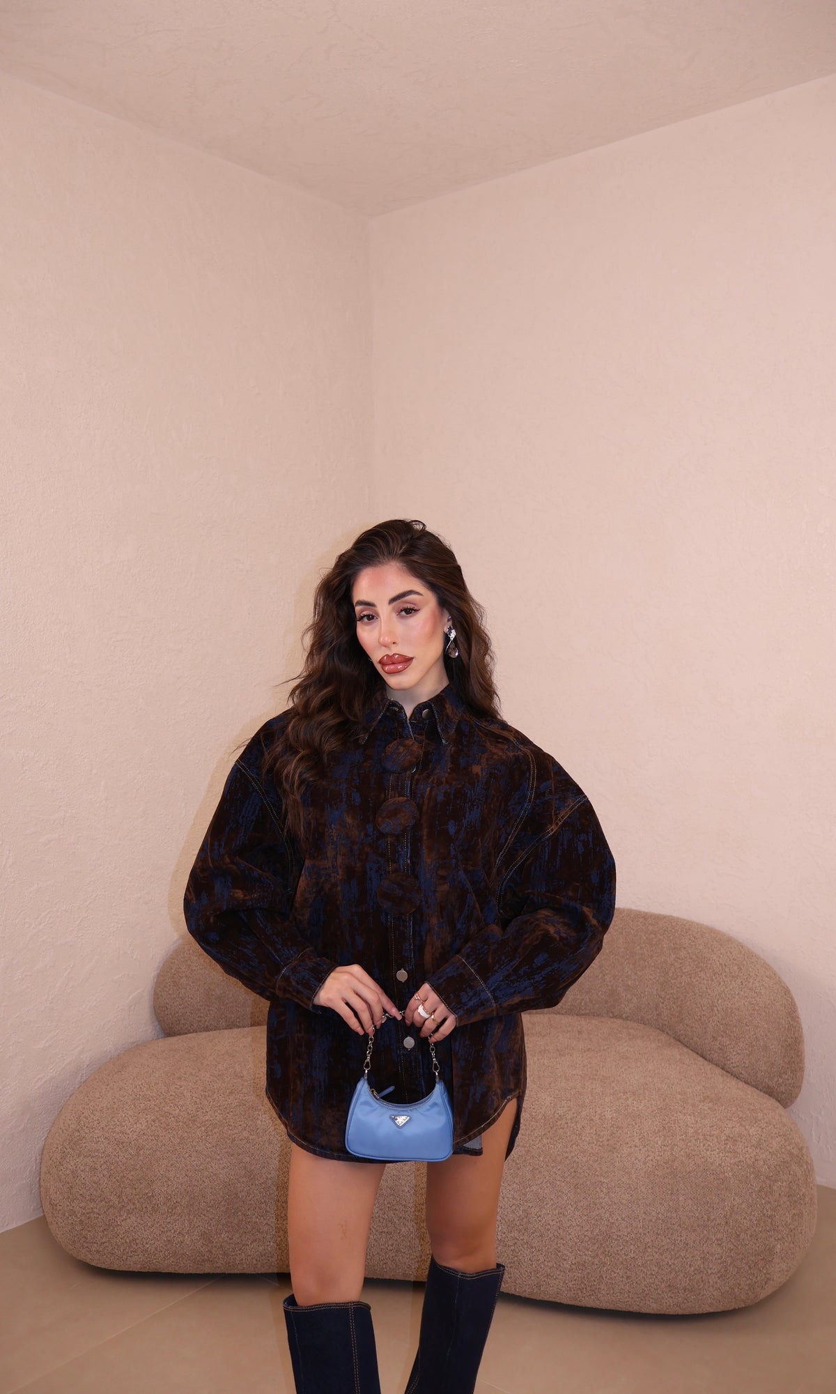 Camicia over in denim con sfumature in ciniglia a contrasto. Taglia unica.