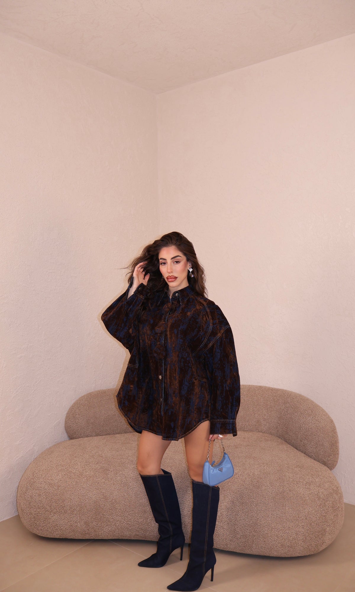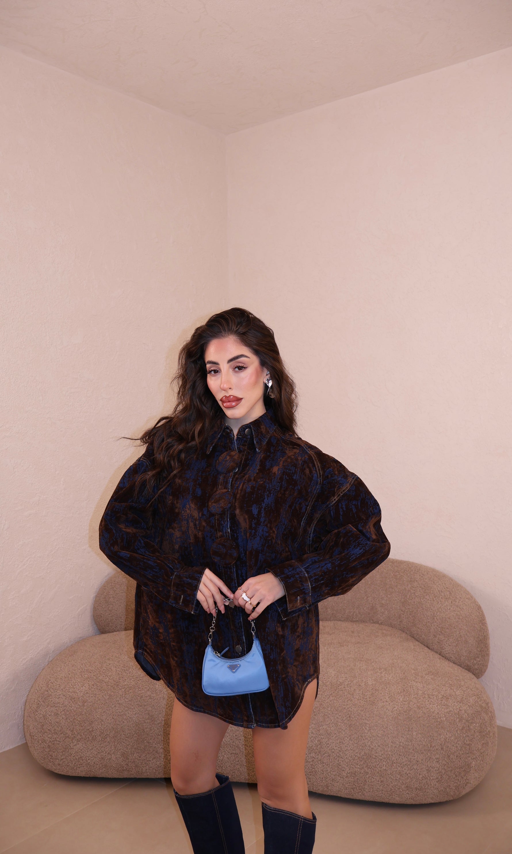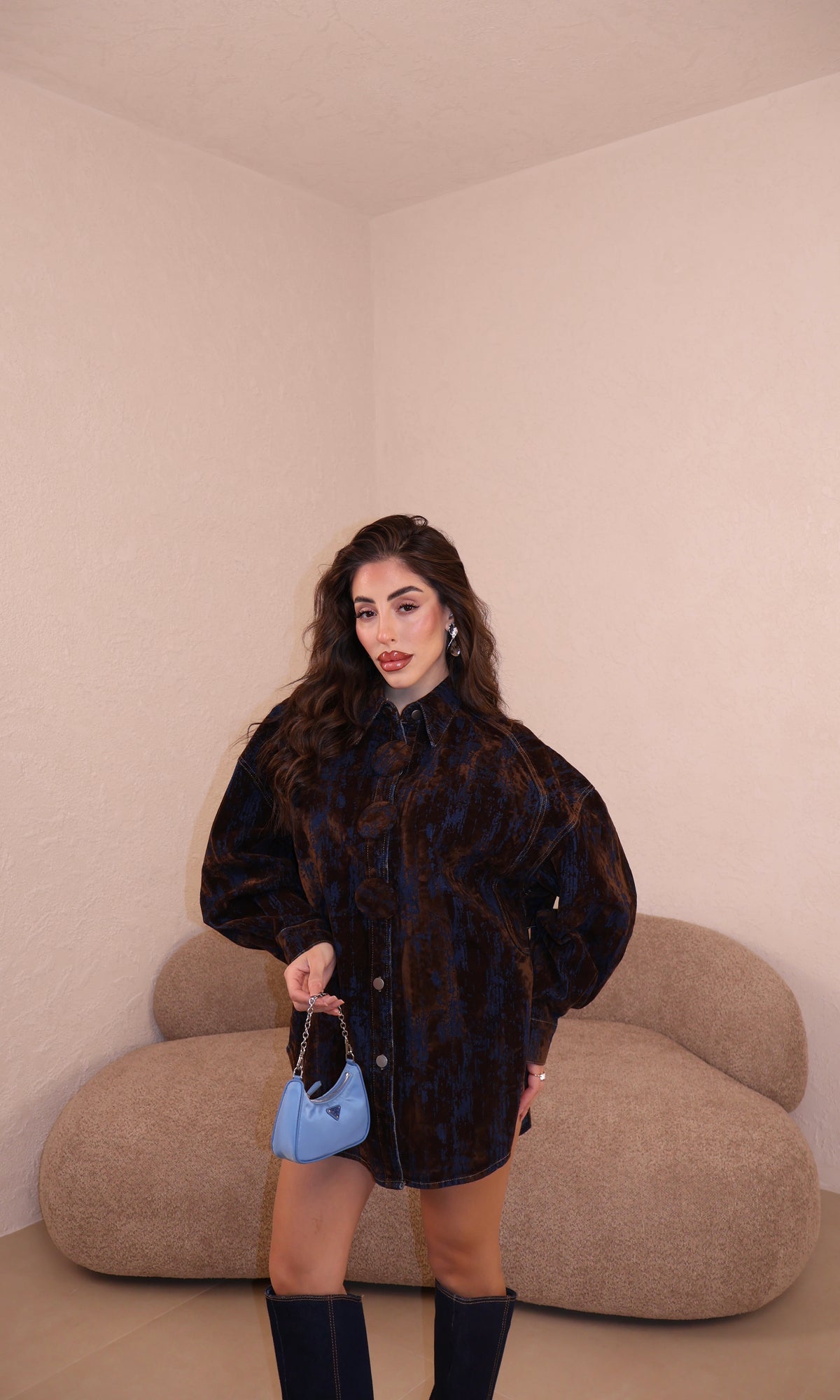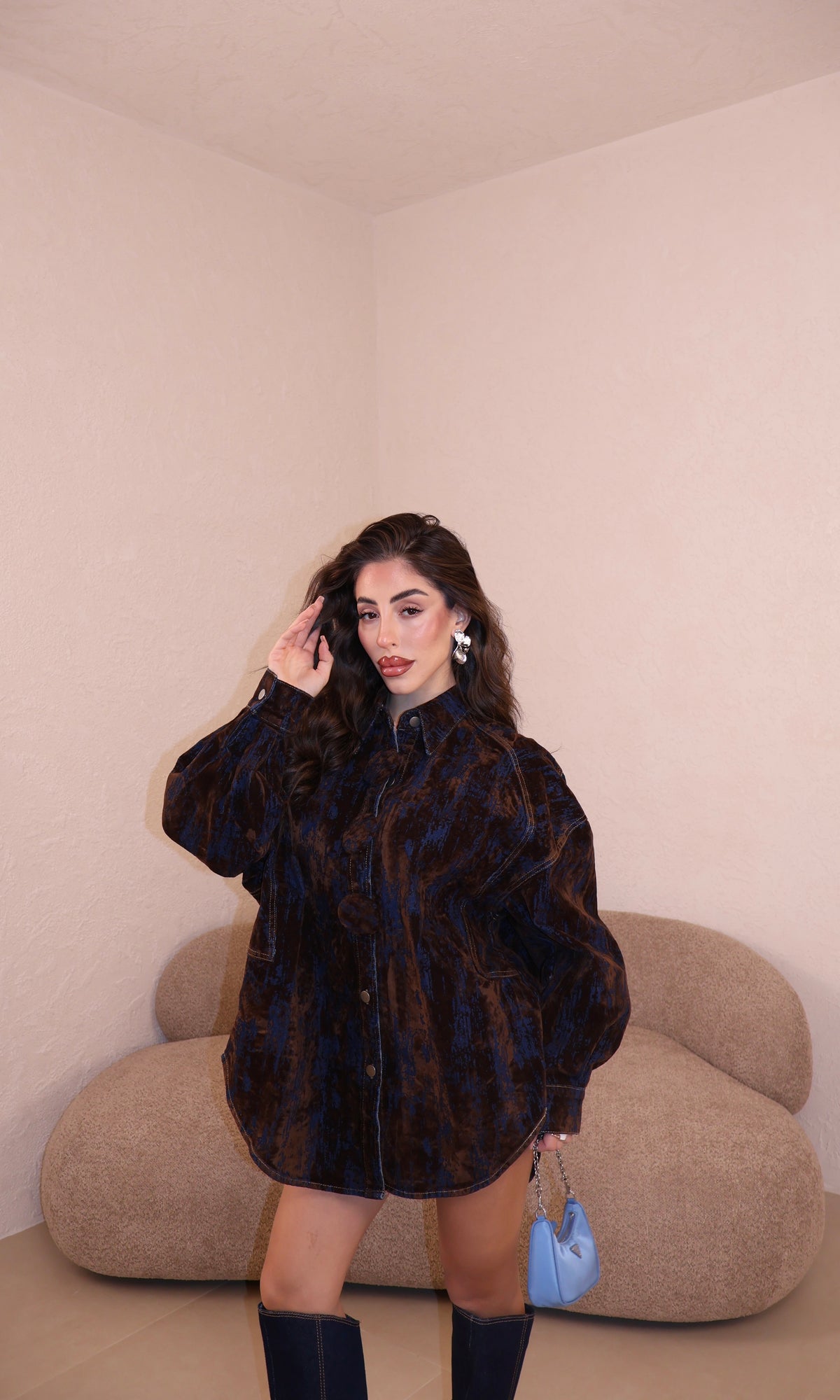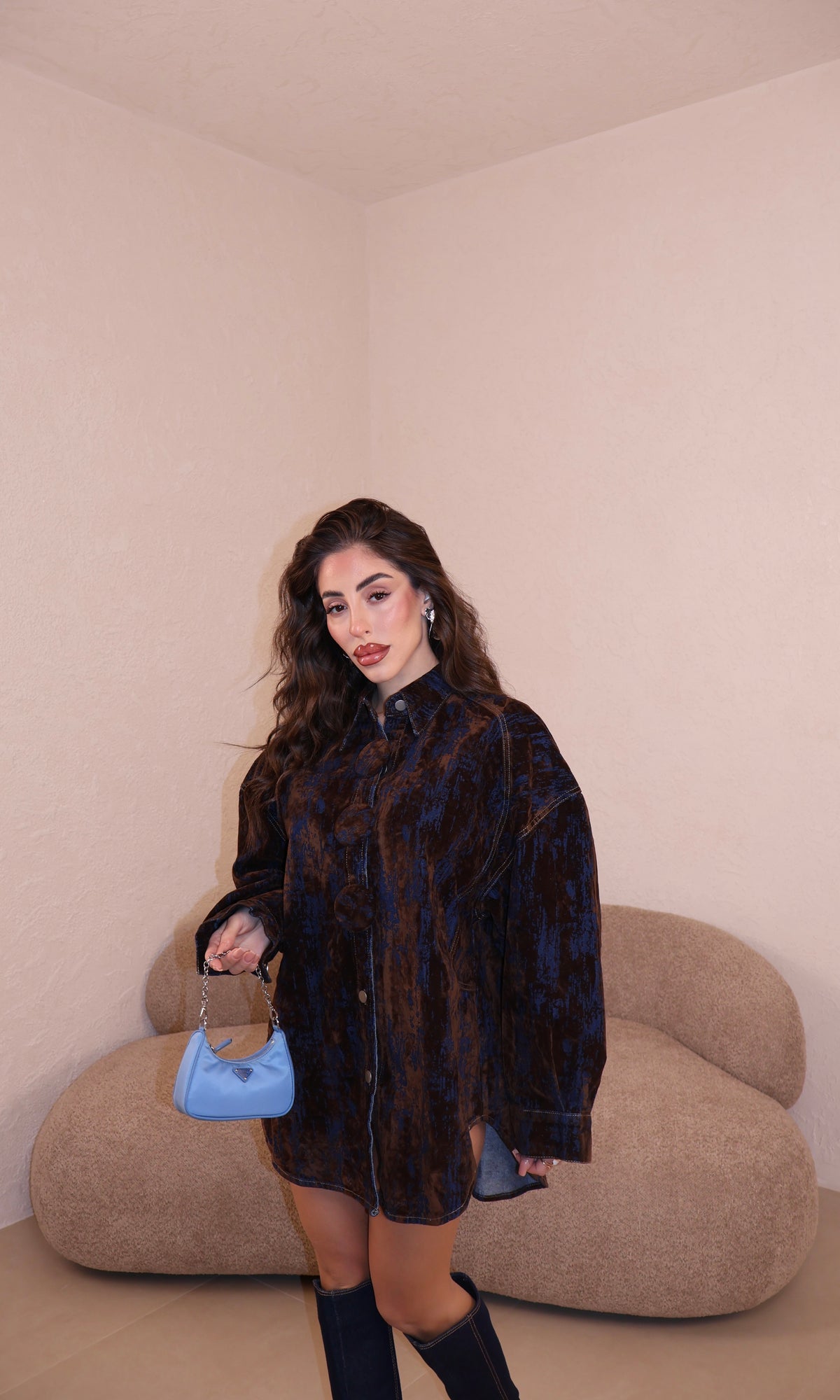 Camicia over in denim con sfumature in ciniglia a contrasto. Taglia unica.