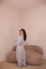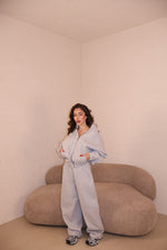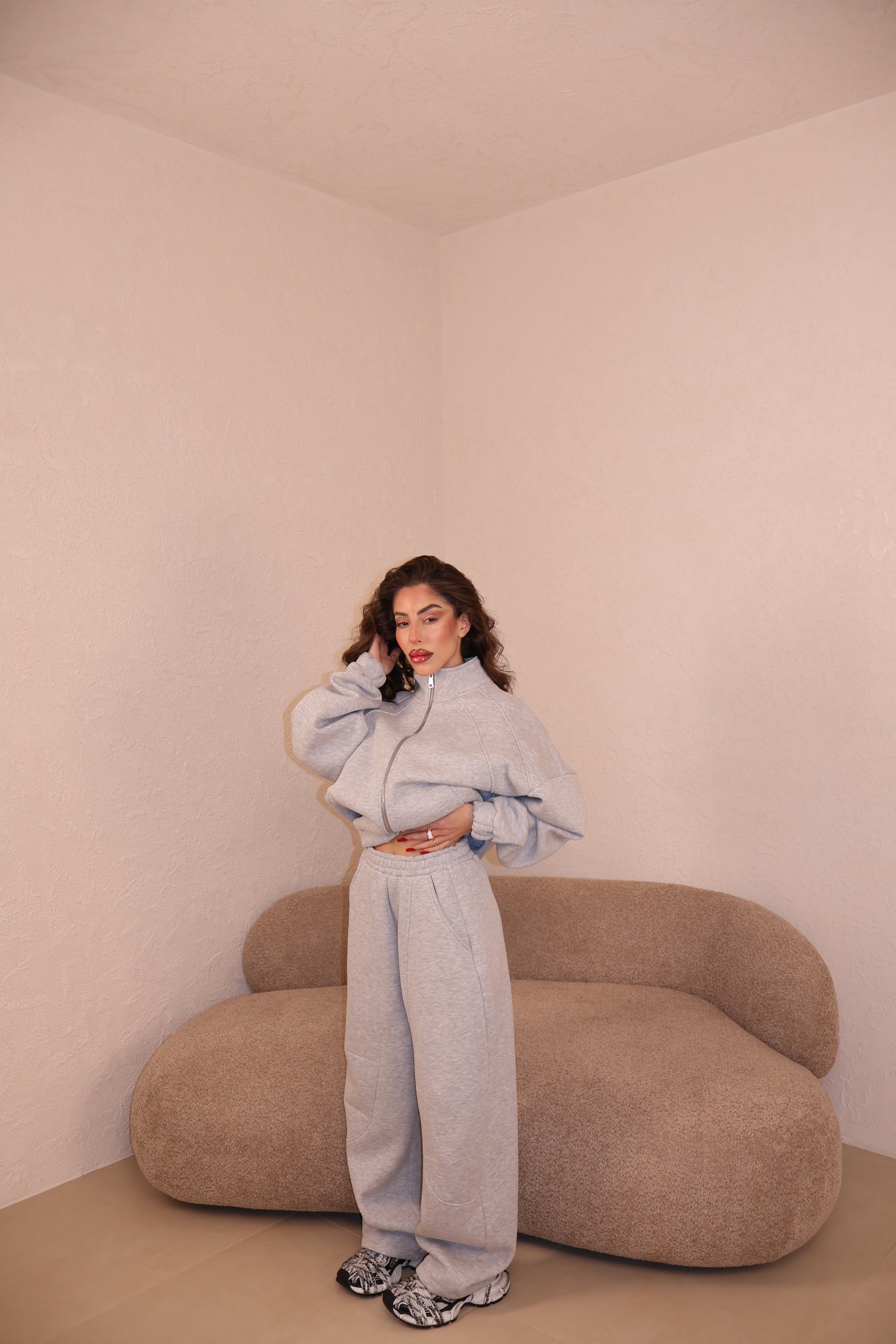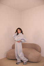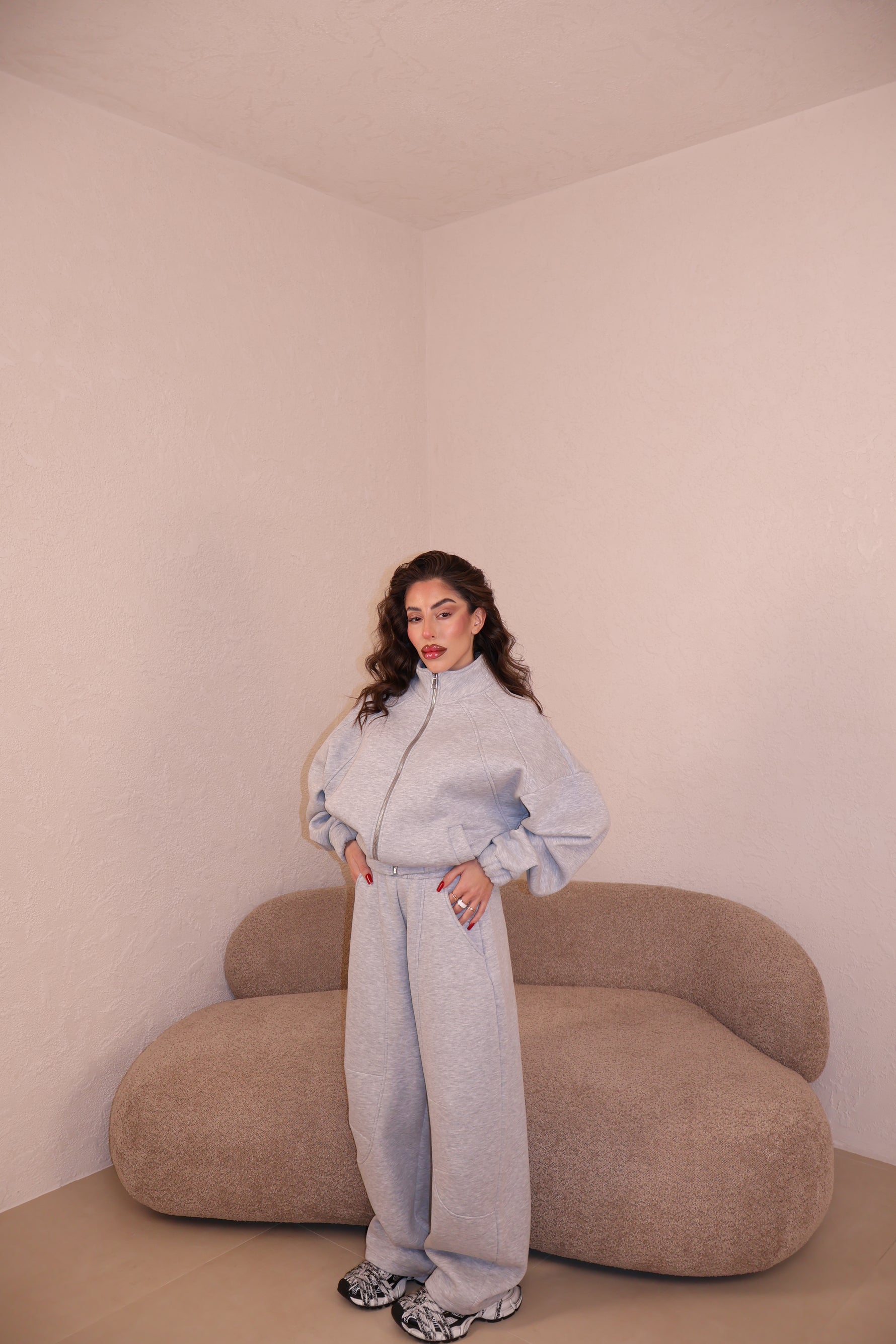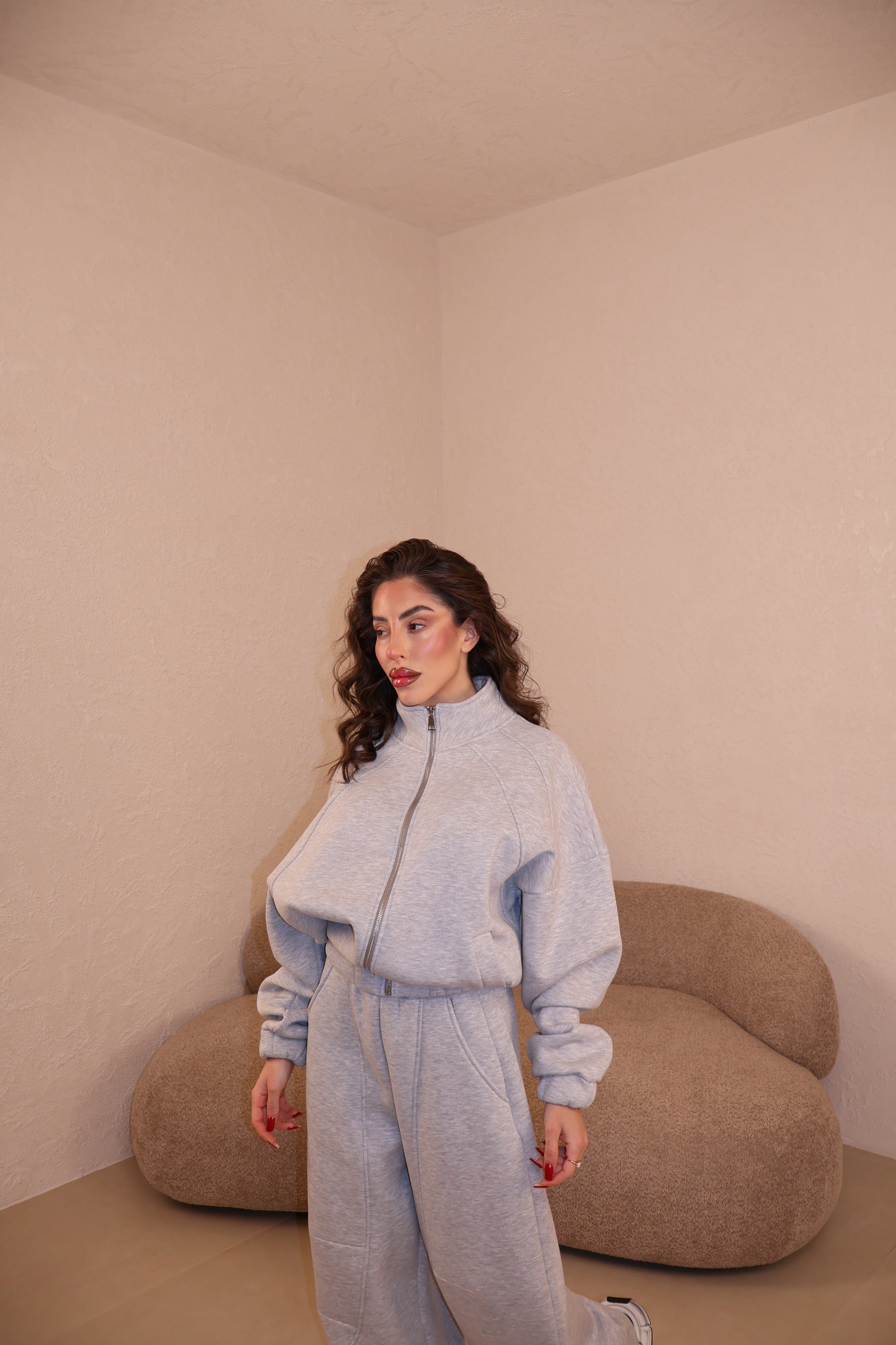 Coordinato di tuta felpato composto da pantaloni modello balloon con elastico in vita e felpa con cerniera. Taglia unica.