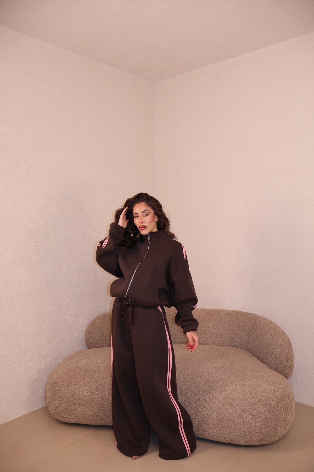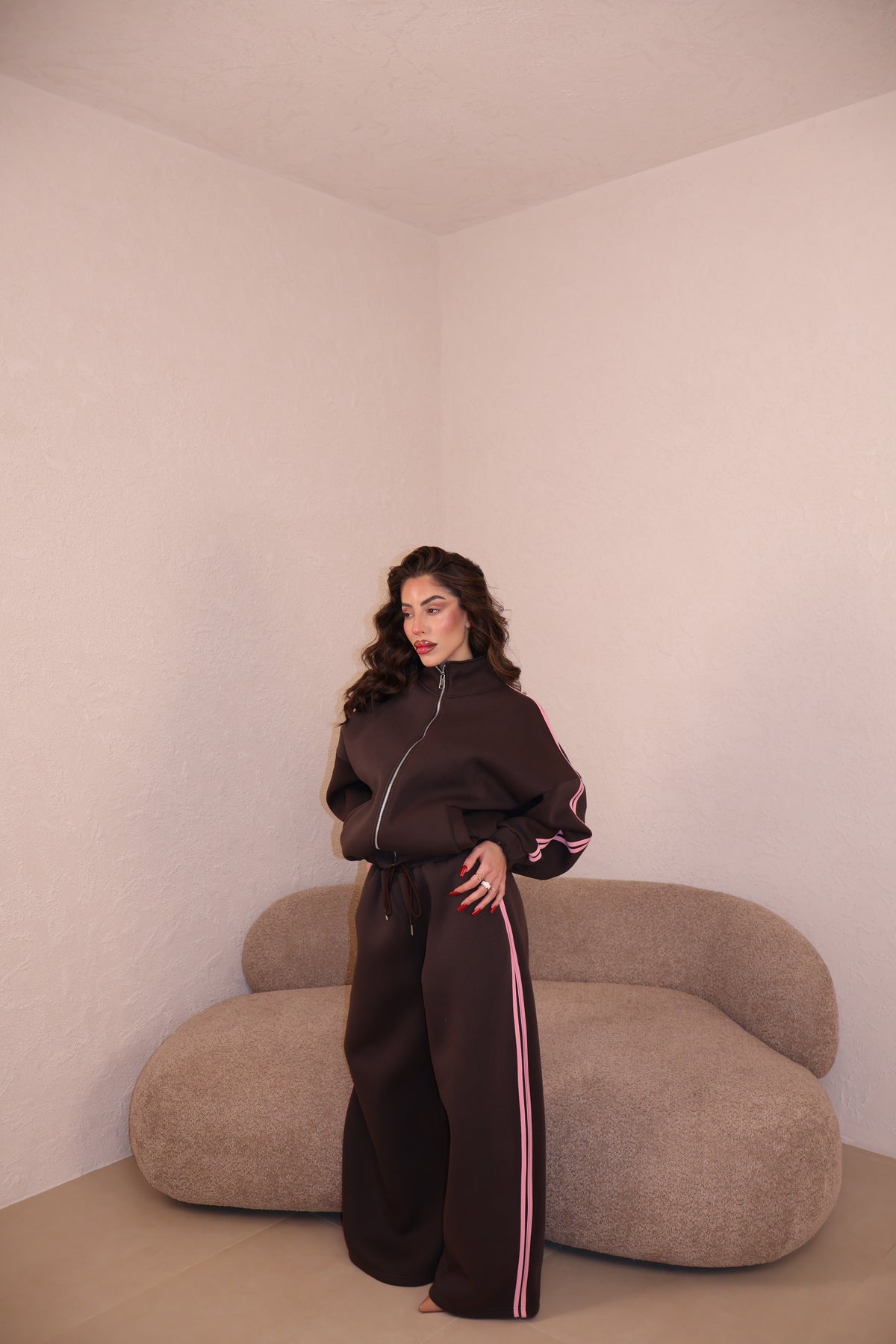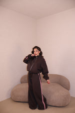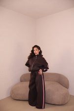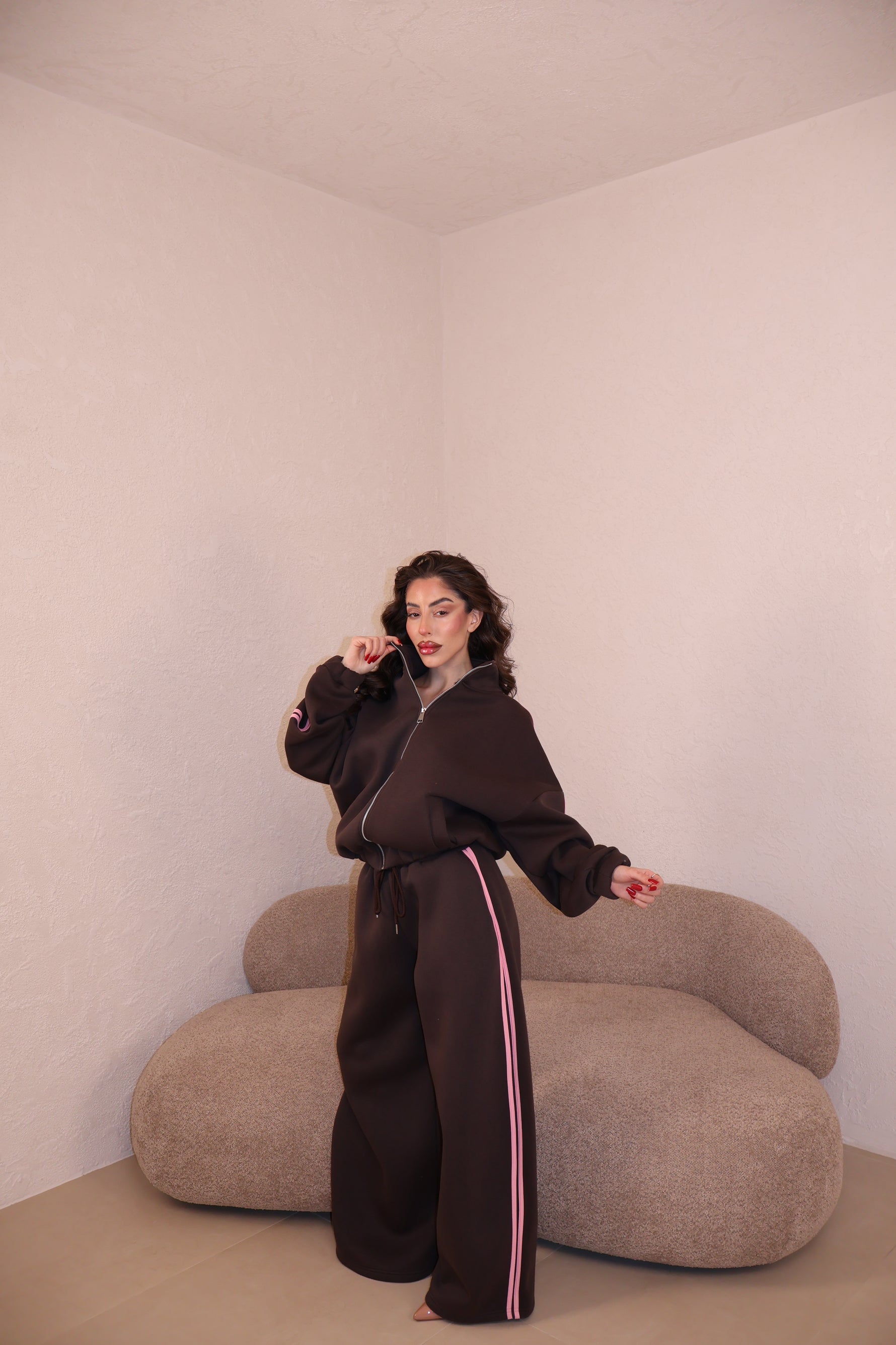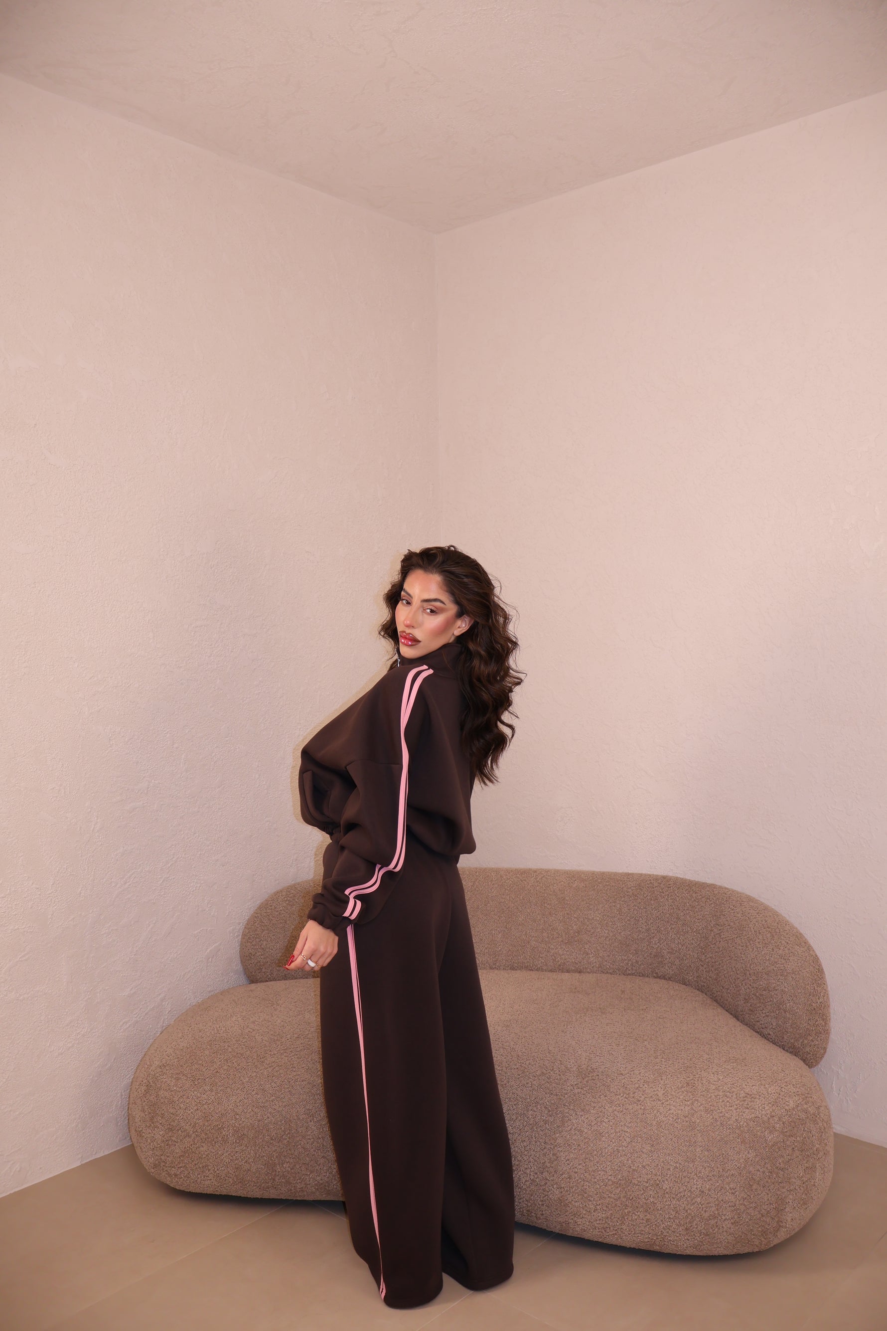 Coordinato di tuta felpato composto da pantaloni dritti e felpa con bande laterali a contrasto. Taglia unica.