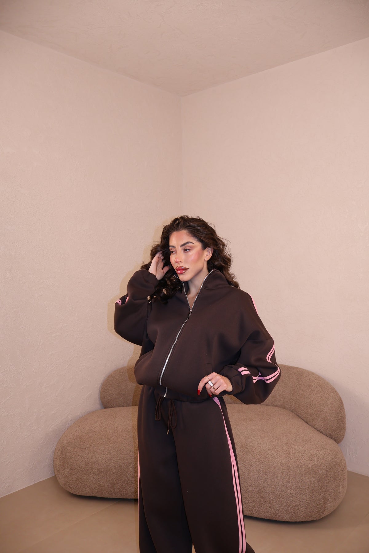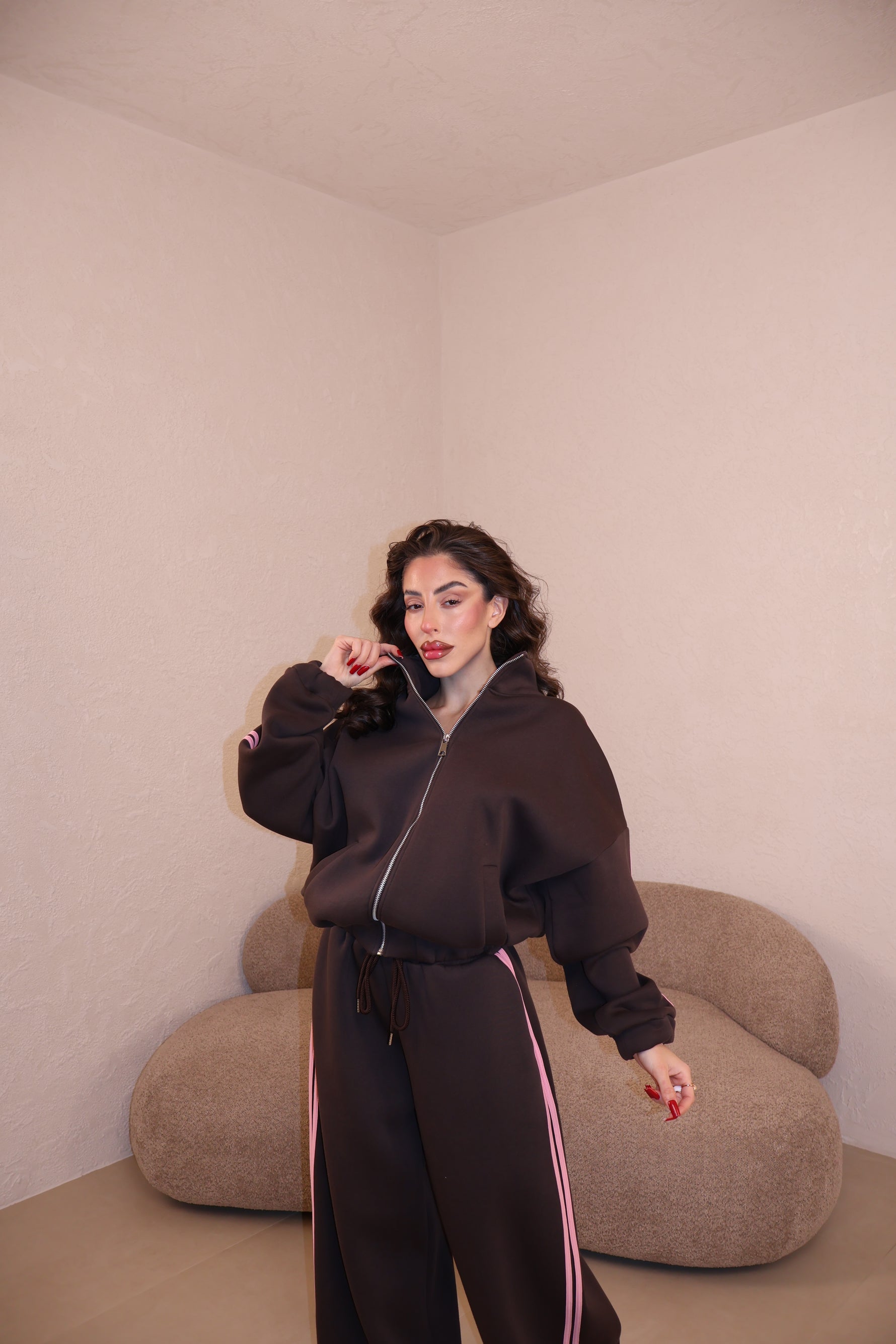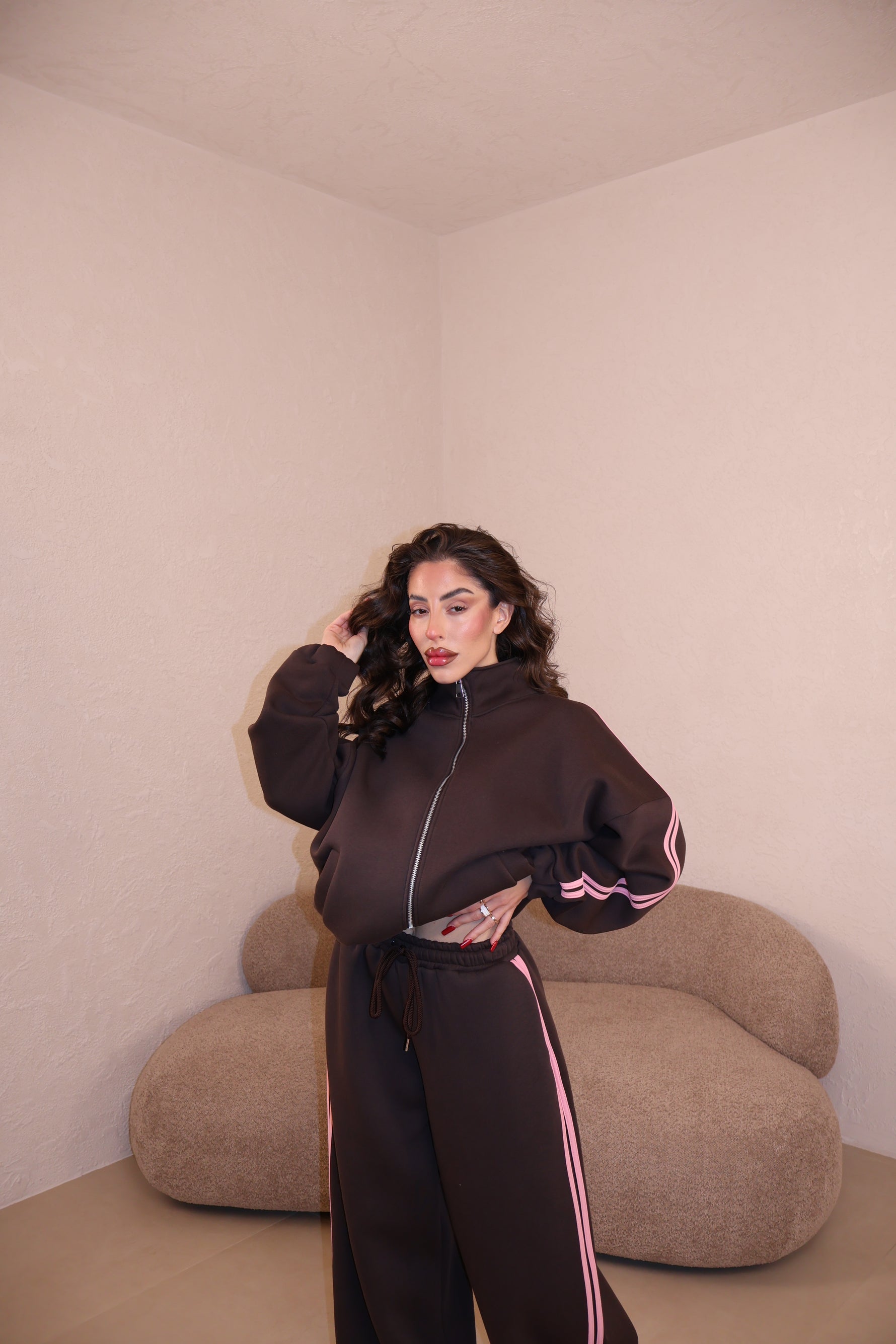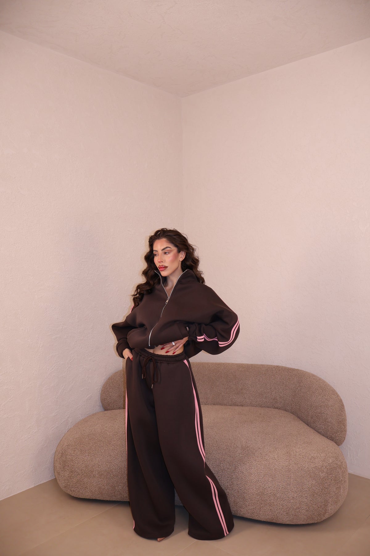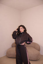 Coordinato di tuta felpato composto da pantaloni dritti e felpa con bande laterali a contrasto. Taglia unica.