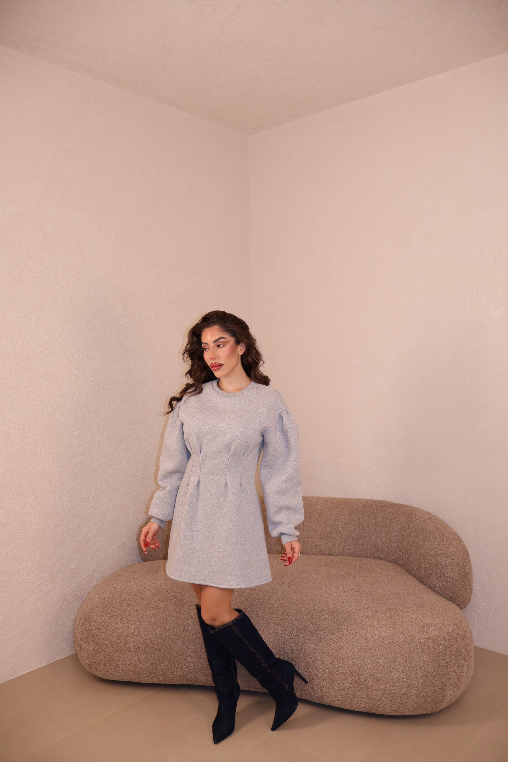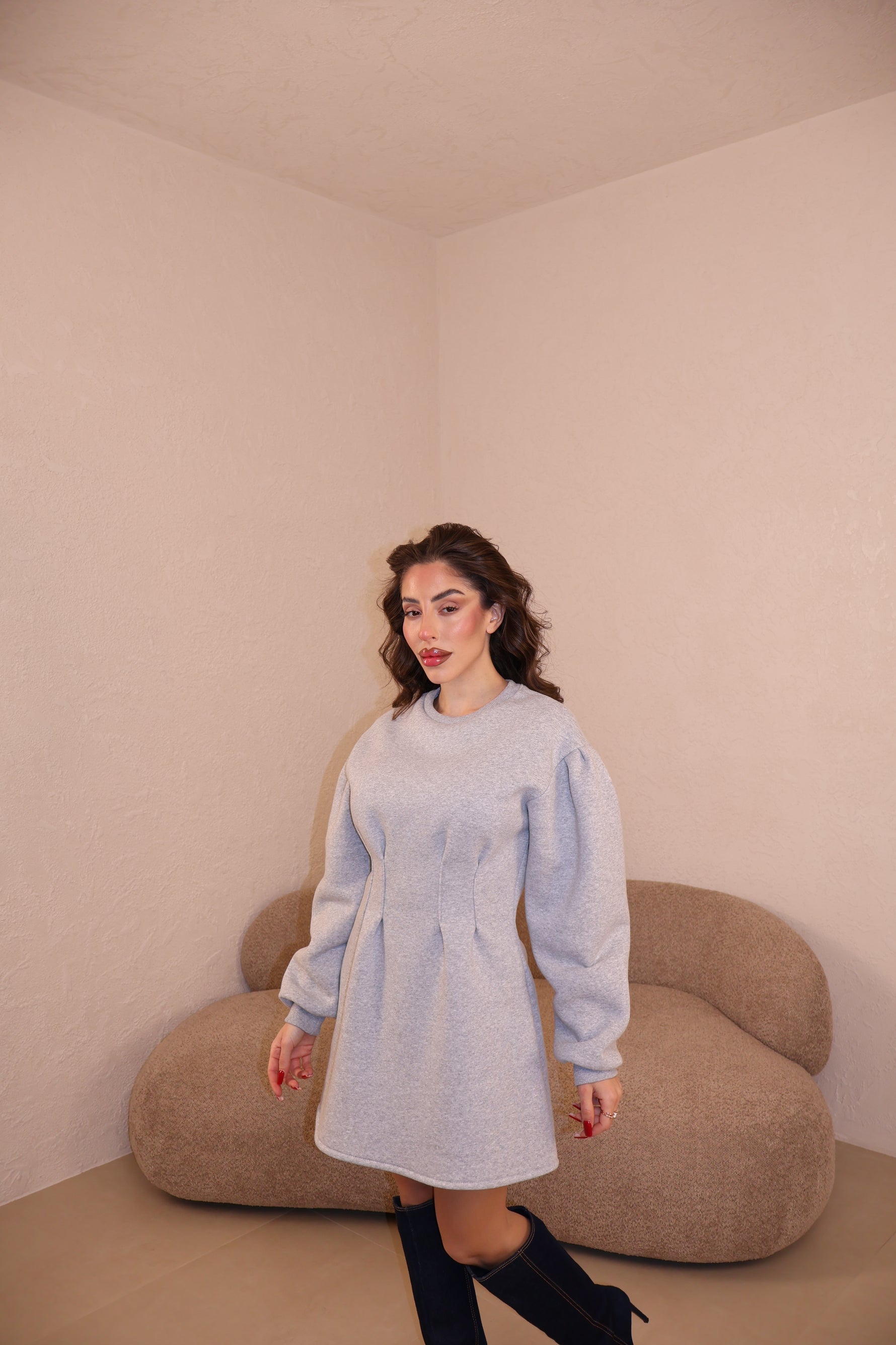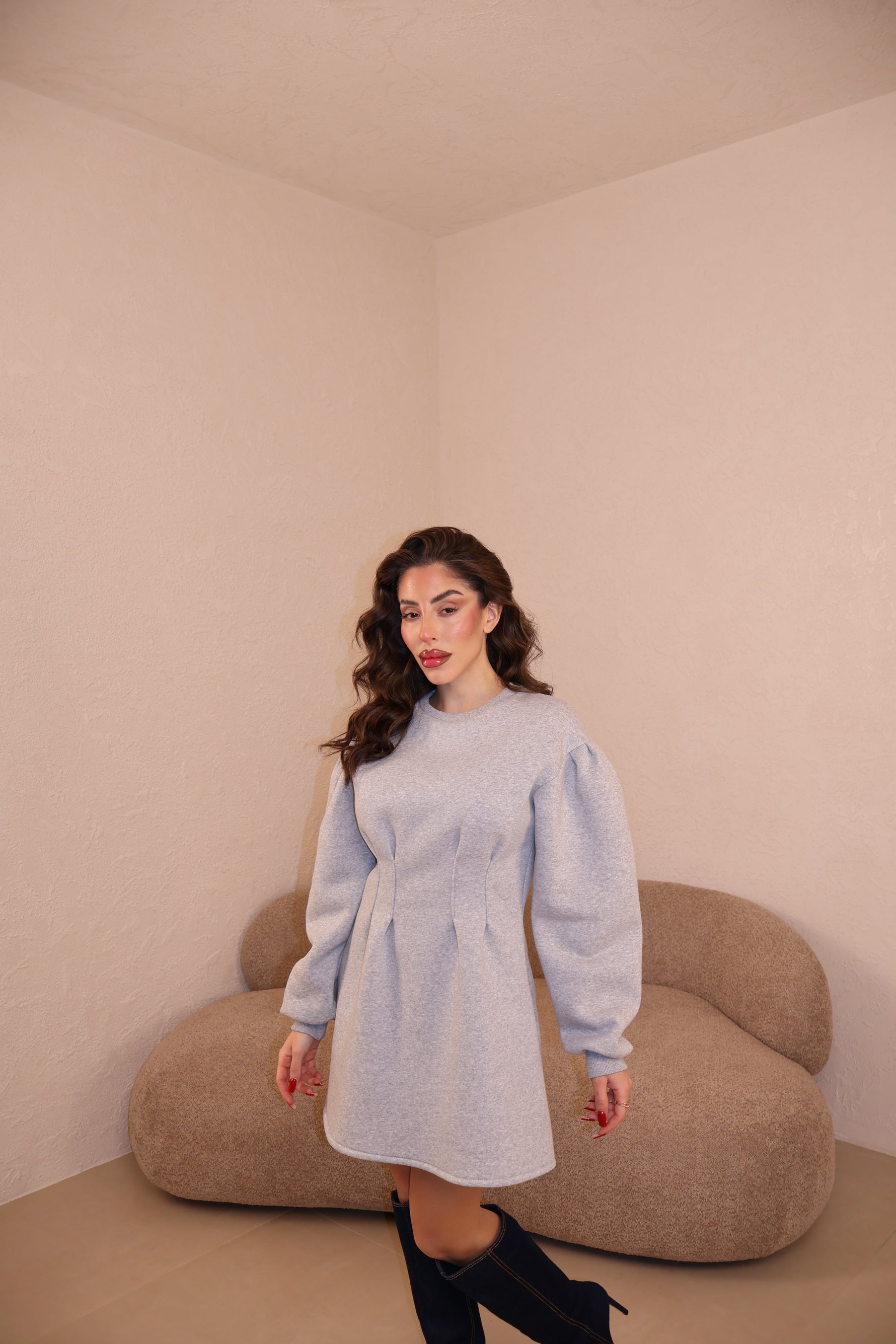 Abito felpato con pince in vita e maniche leggermente a sbuffo. Taglia unica.