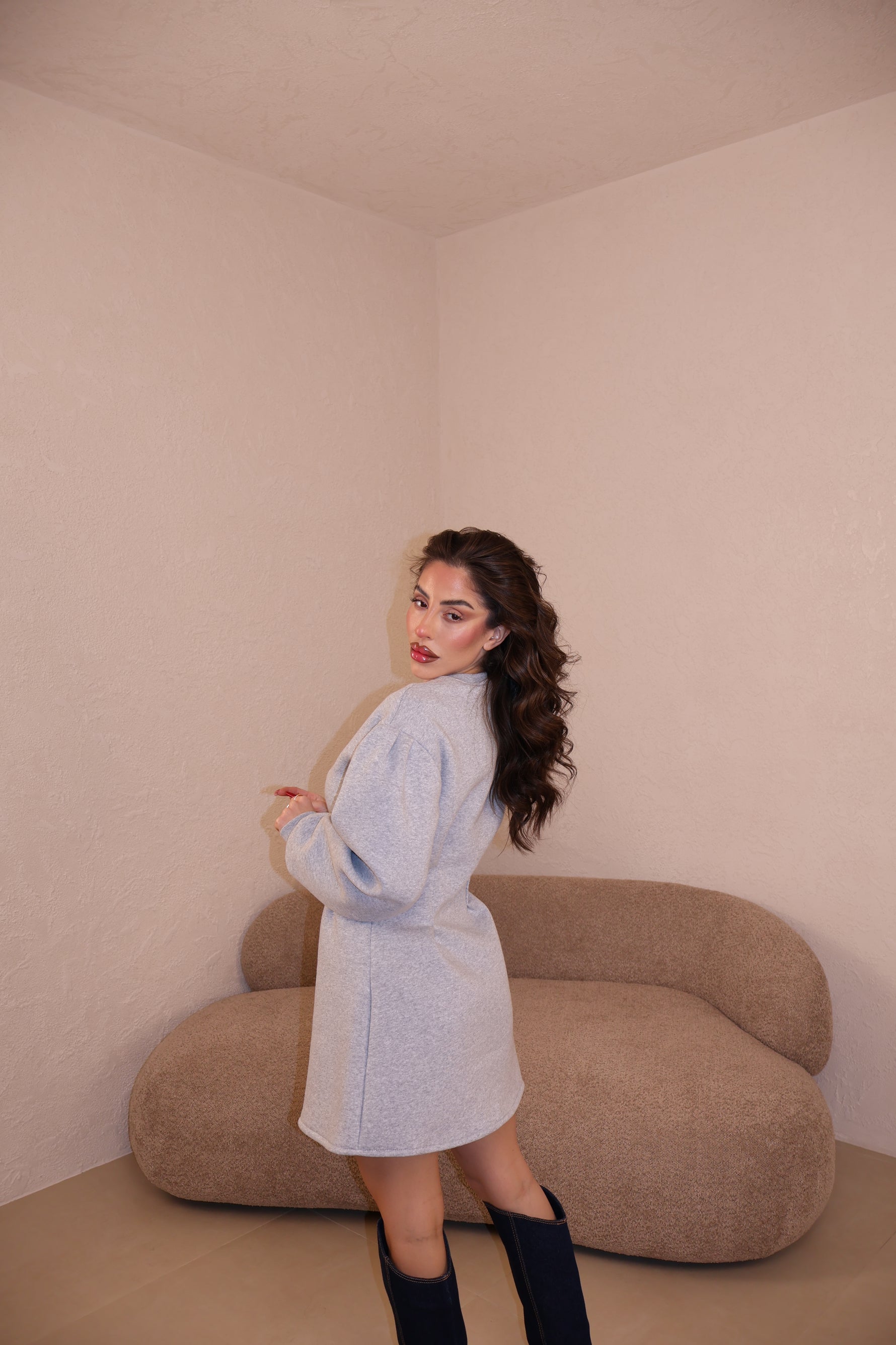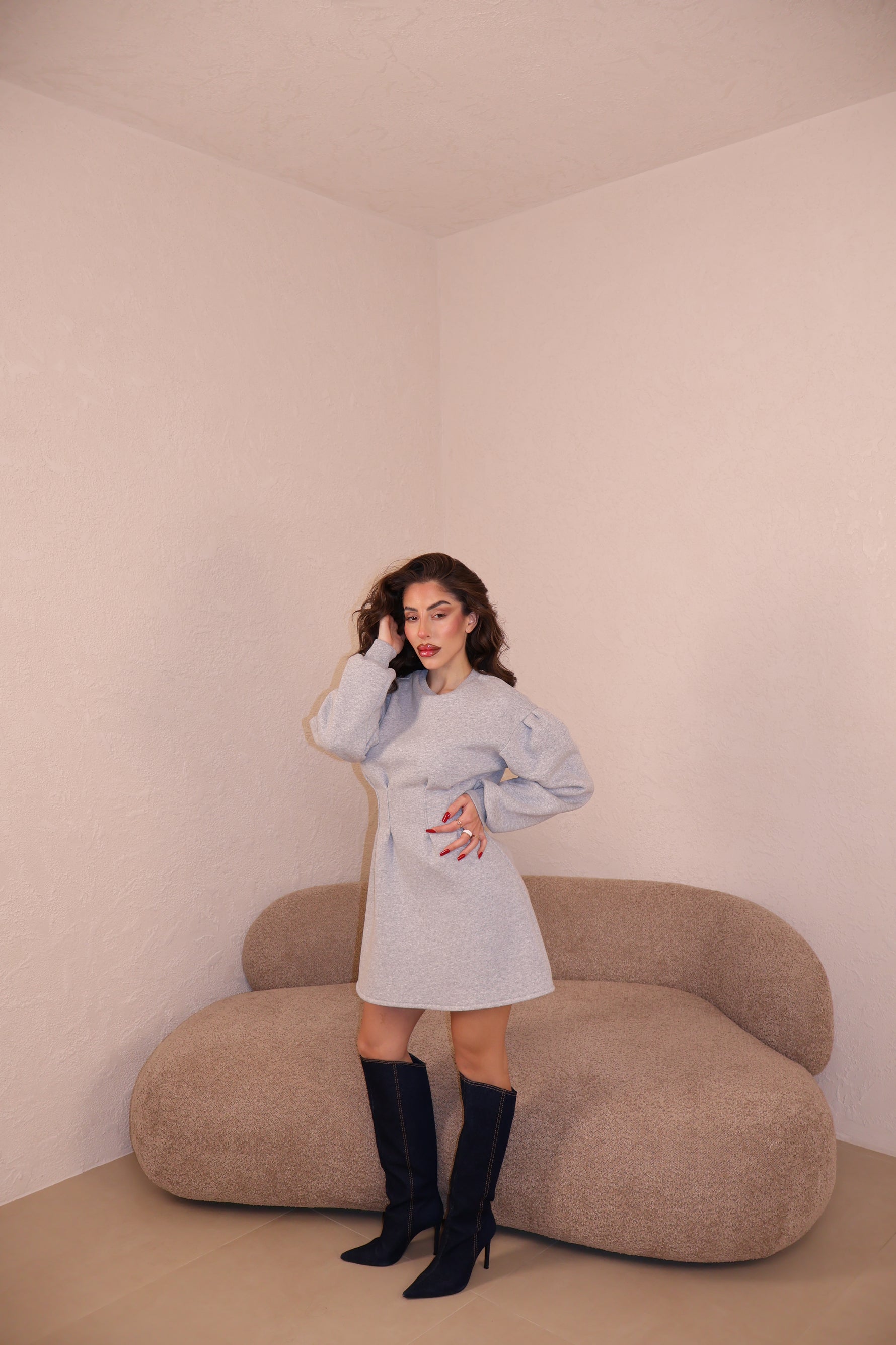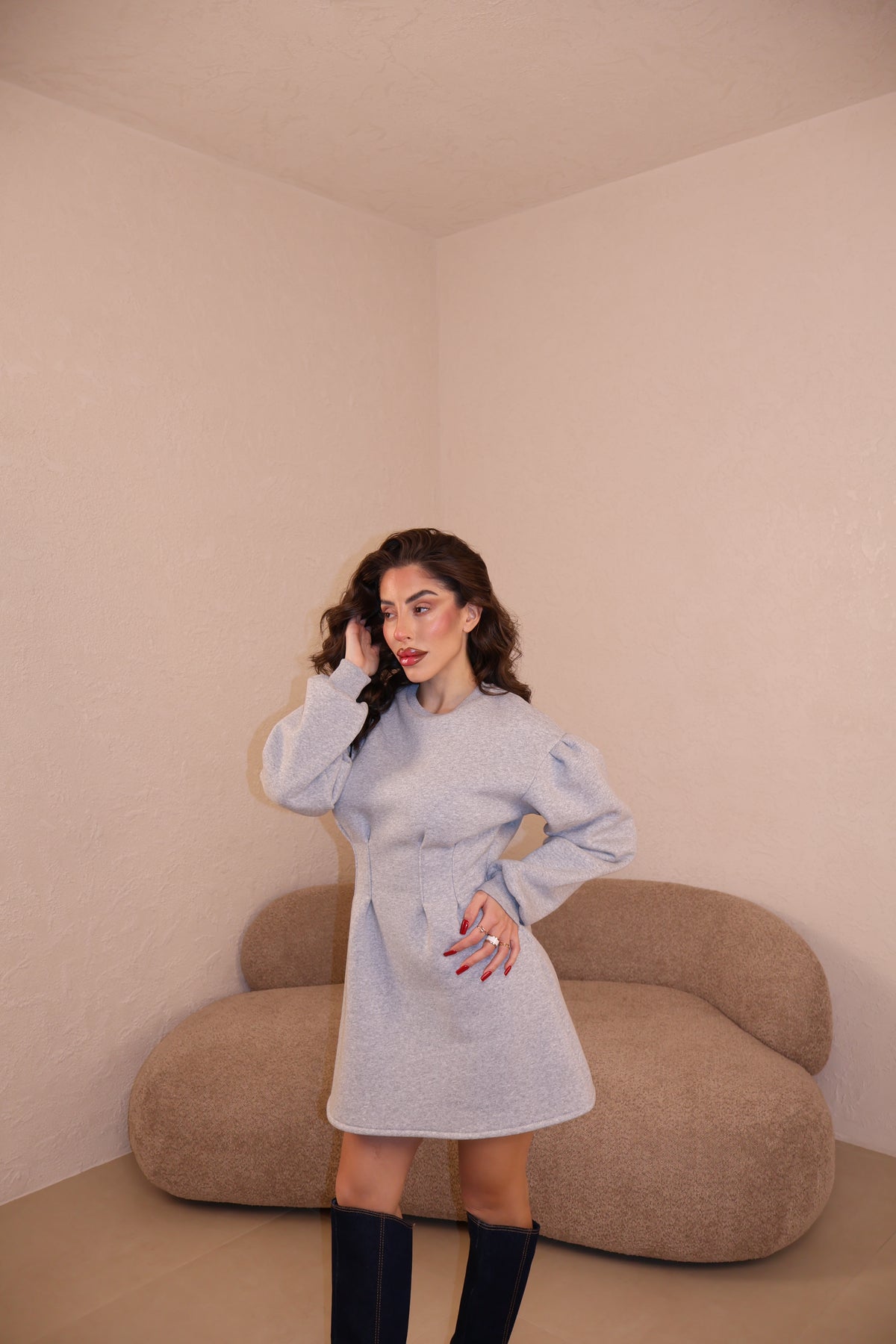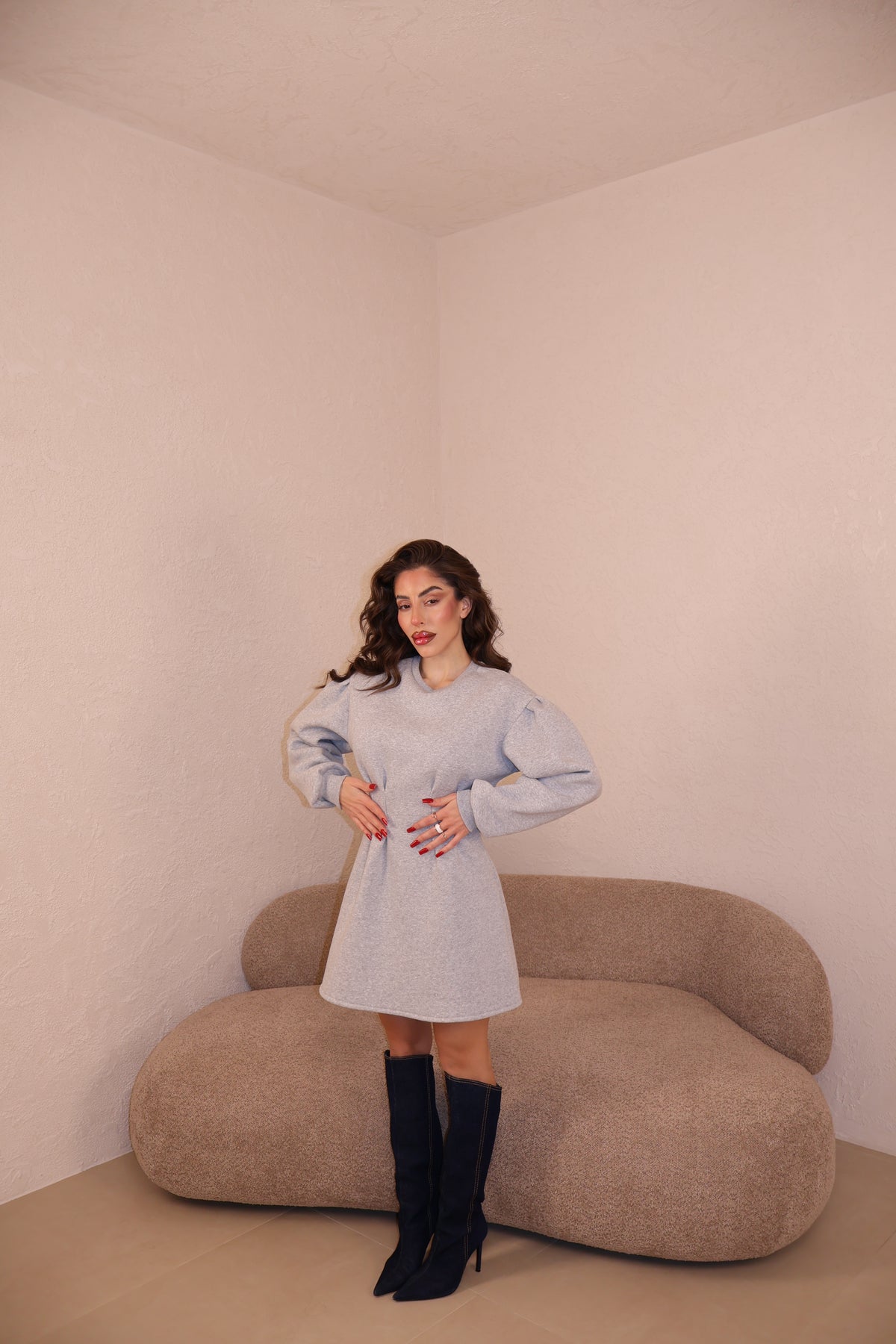 Abito felpato con pince in vita e maniche leggermente a sbuffo. Taglia unica.