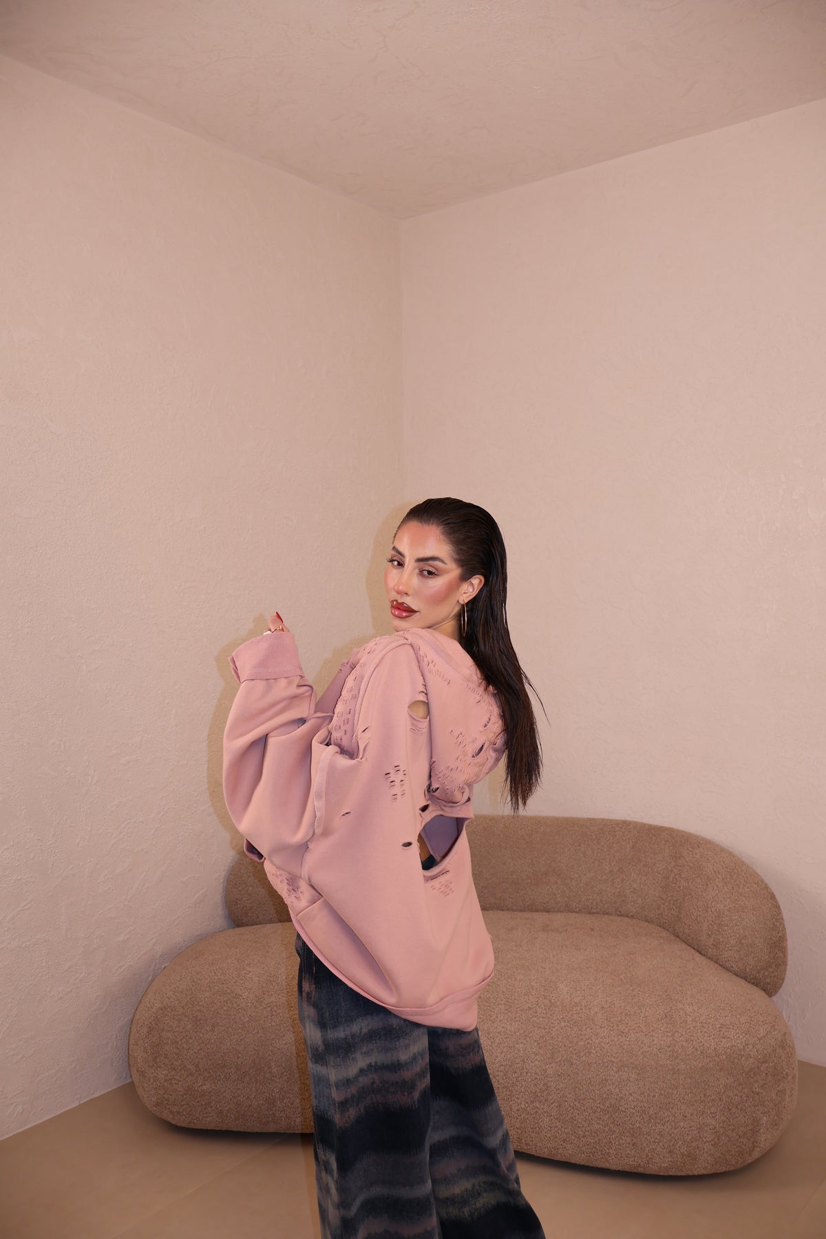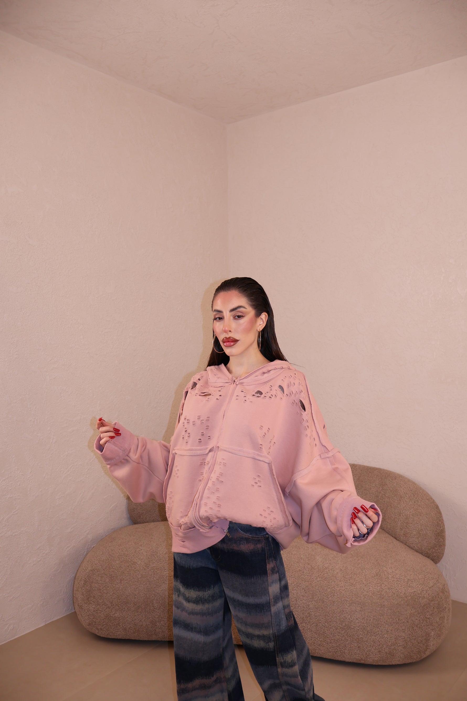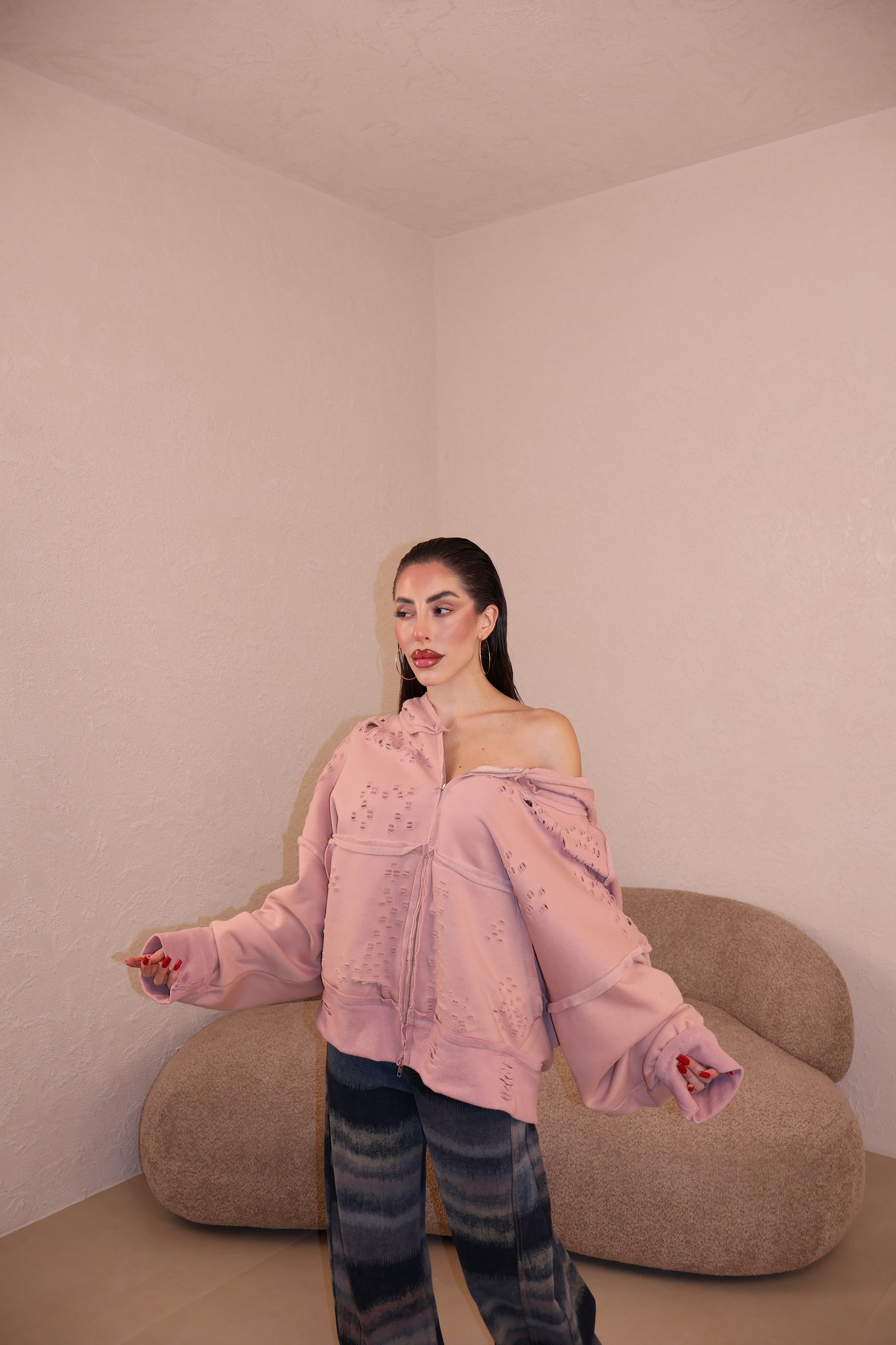 Felpa over con cappuccio e dettagli strappati. Felpata internamente. Taglia unica.
