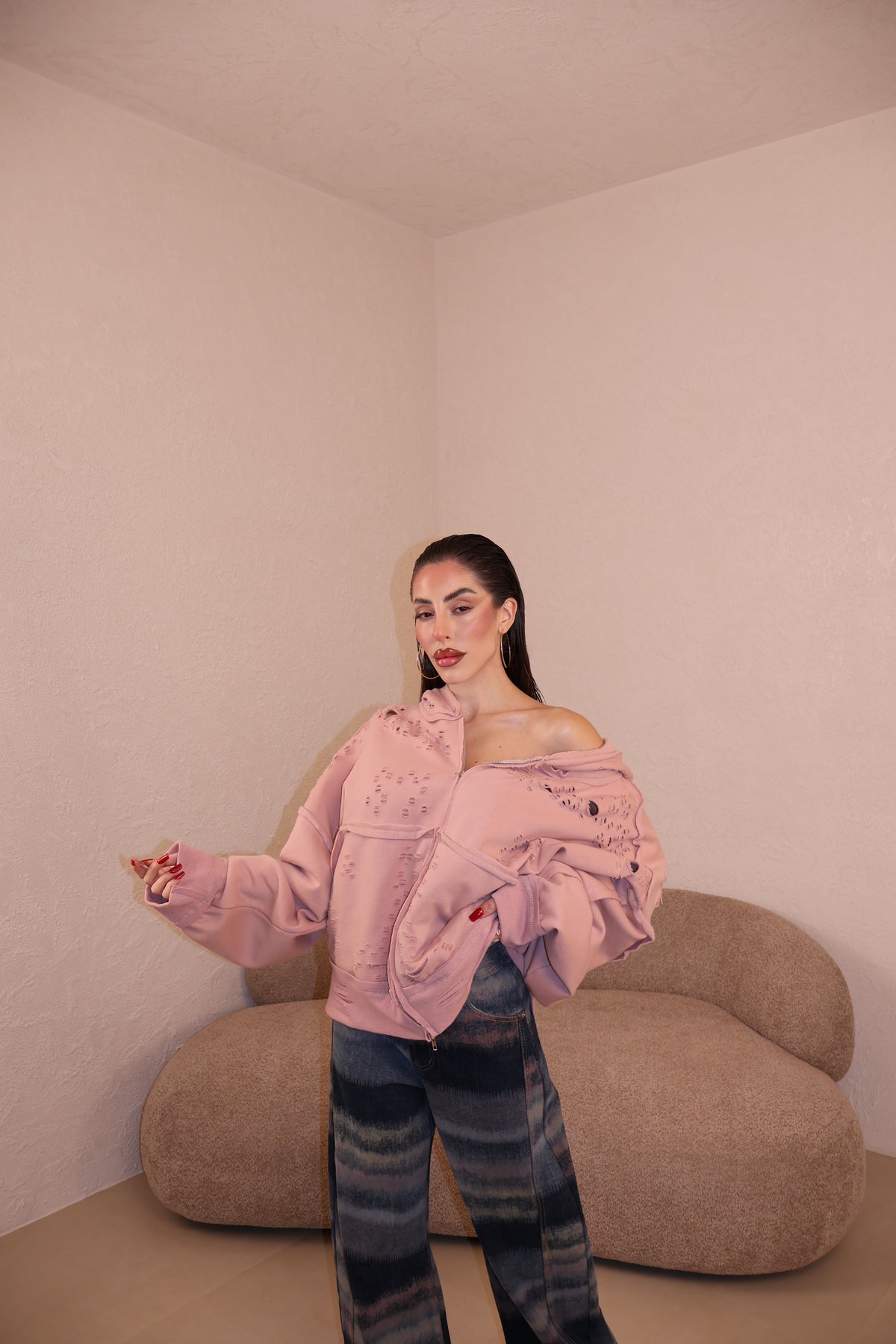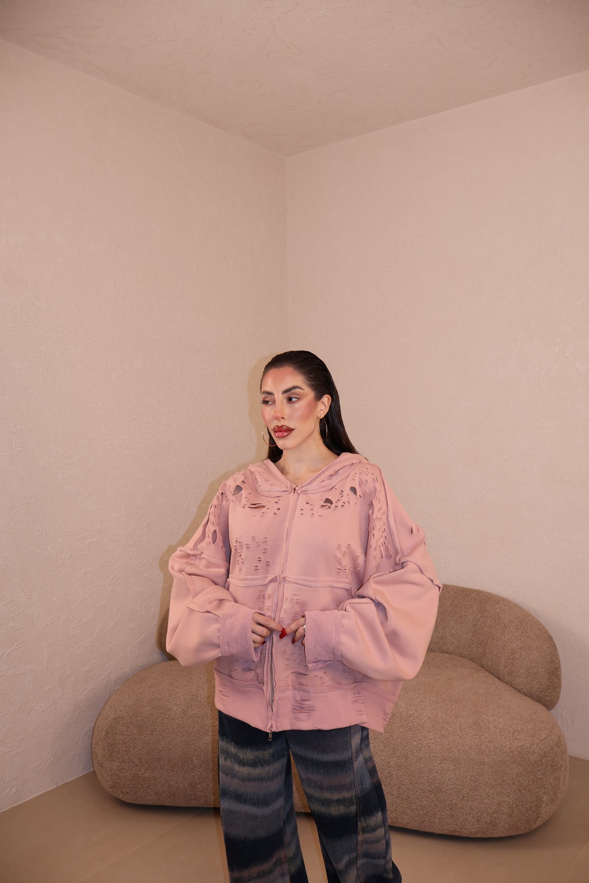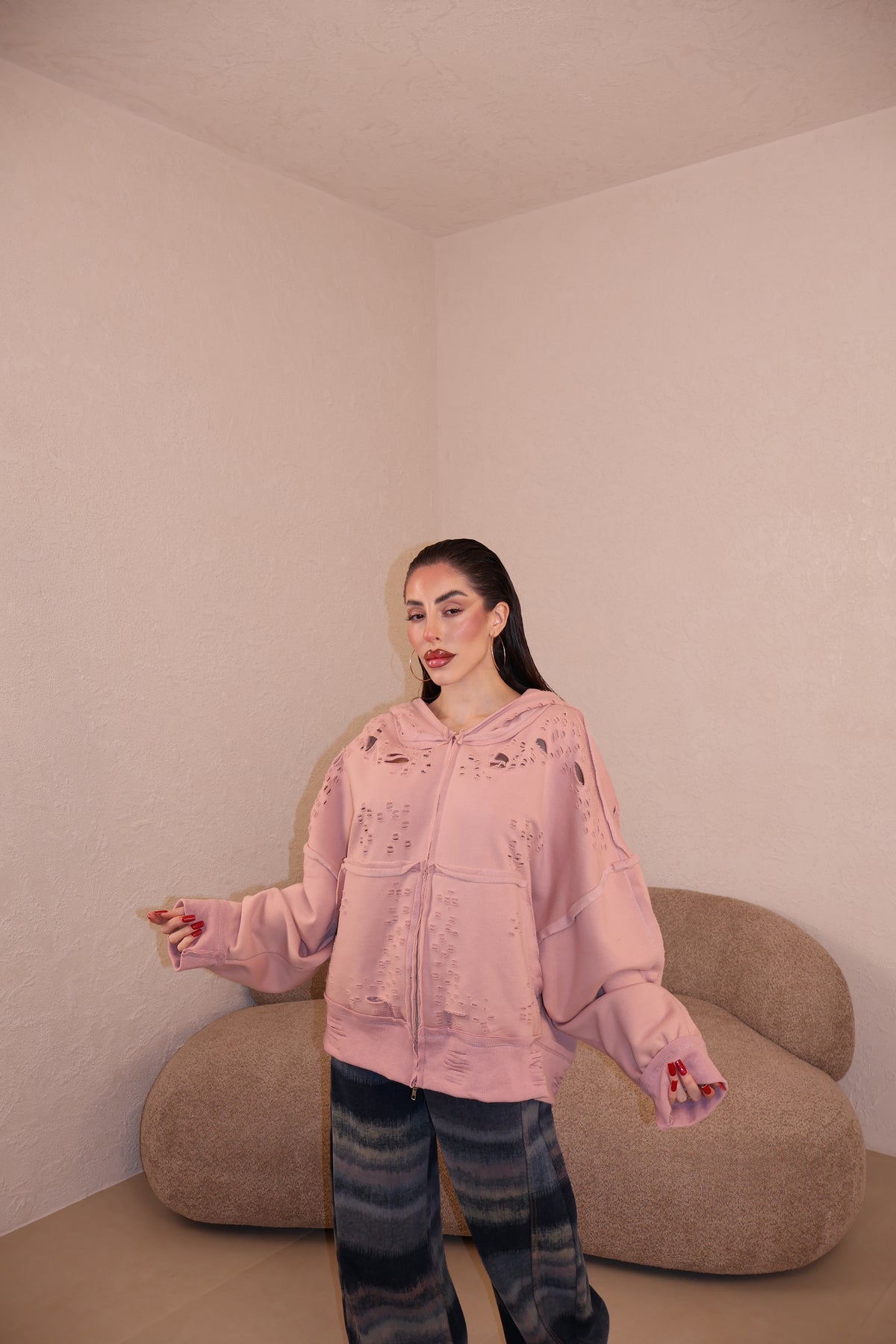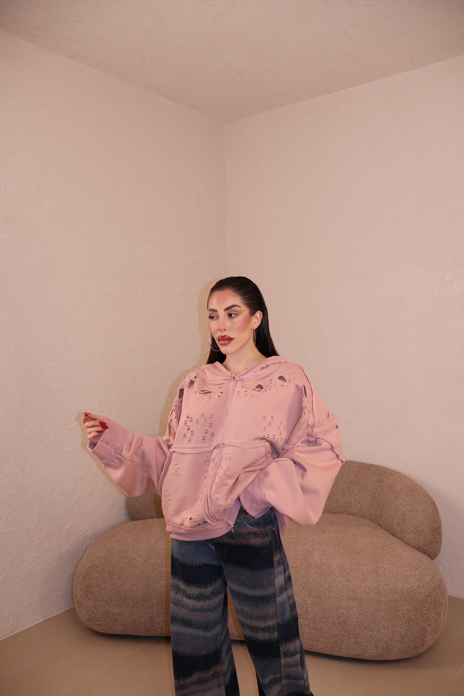 Felpa over con cappuccio e dettagli strappati. Felpata internamente. Taglia unica.
