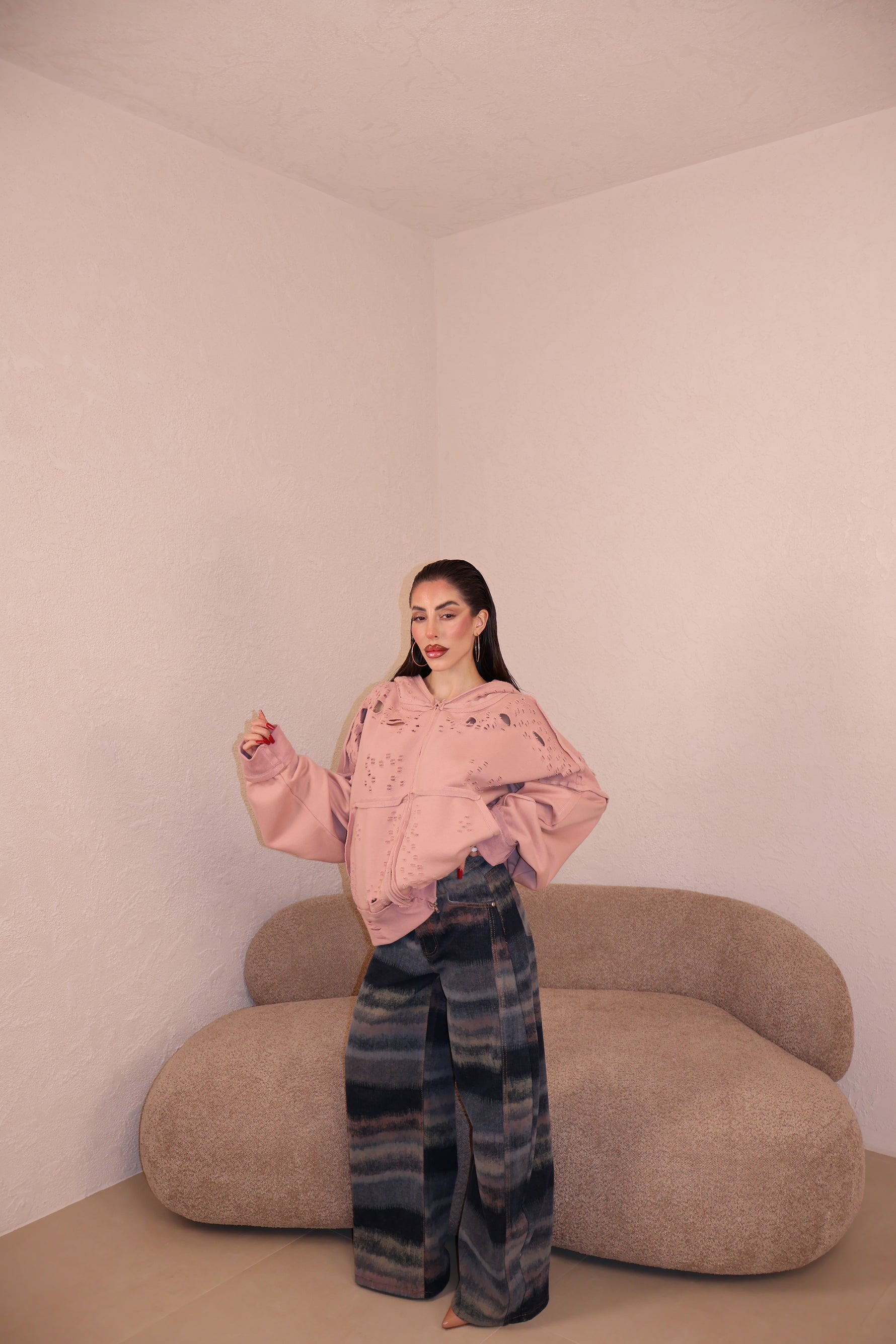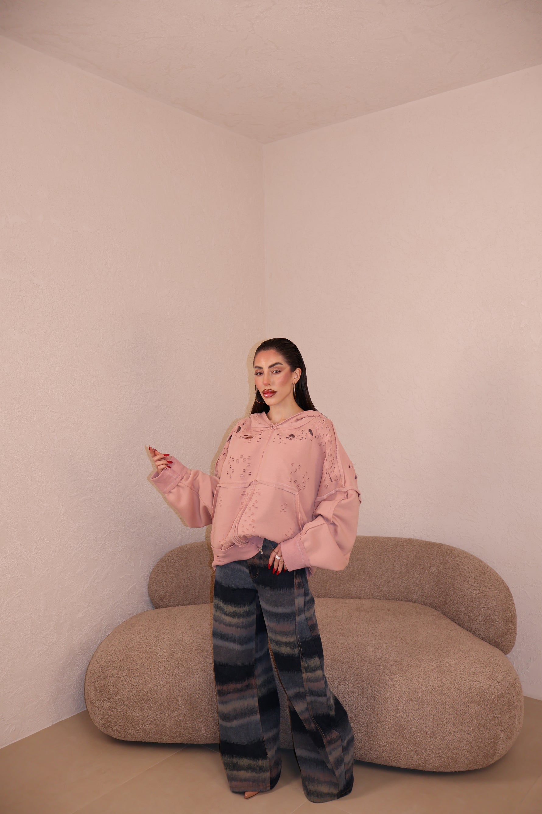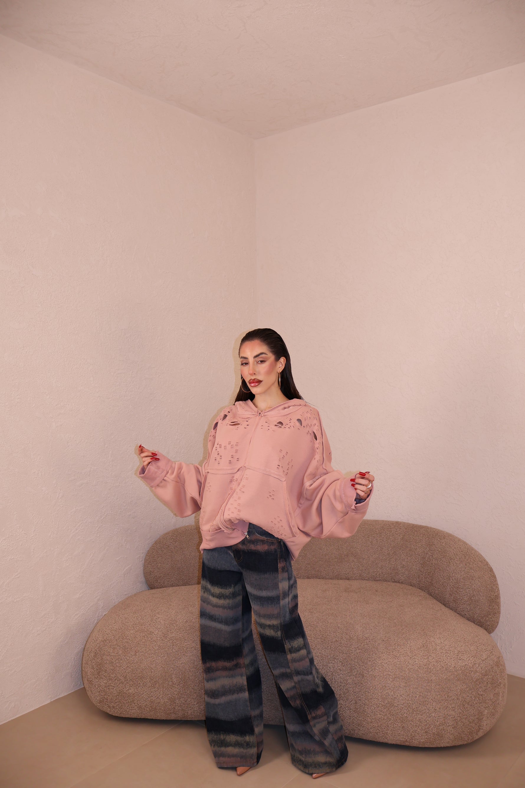 Prezzo unitario / perFelpa over con cappuccio e dettagli strappati. Felpata internamente. Taglia unica.