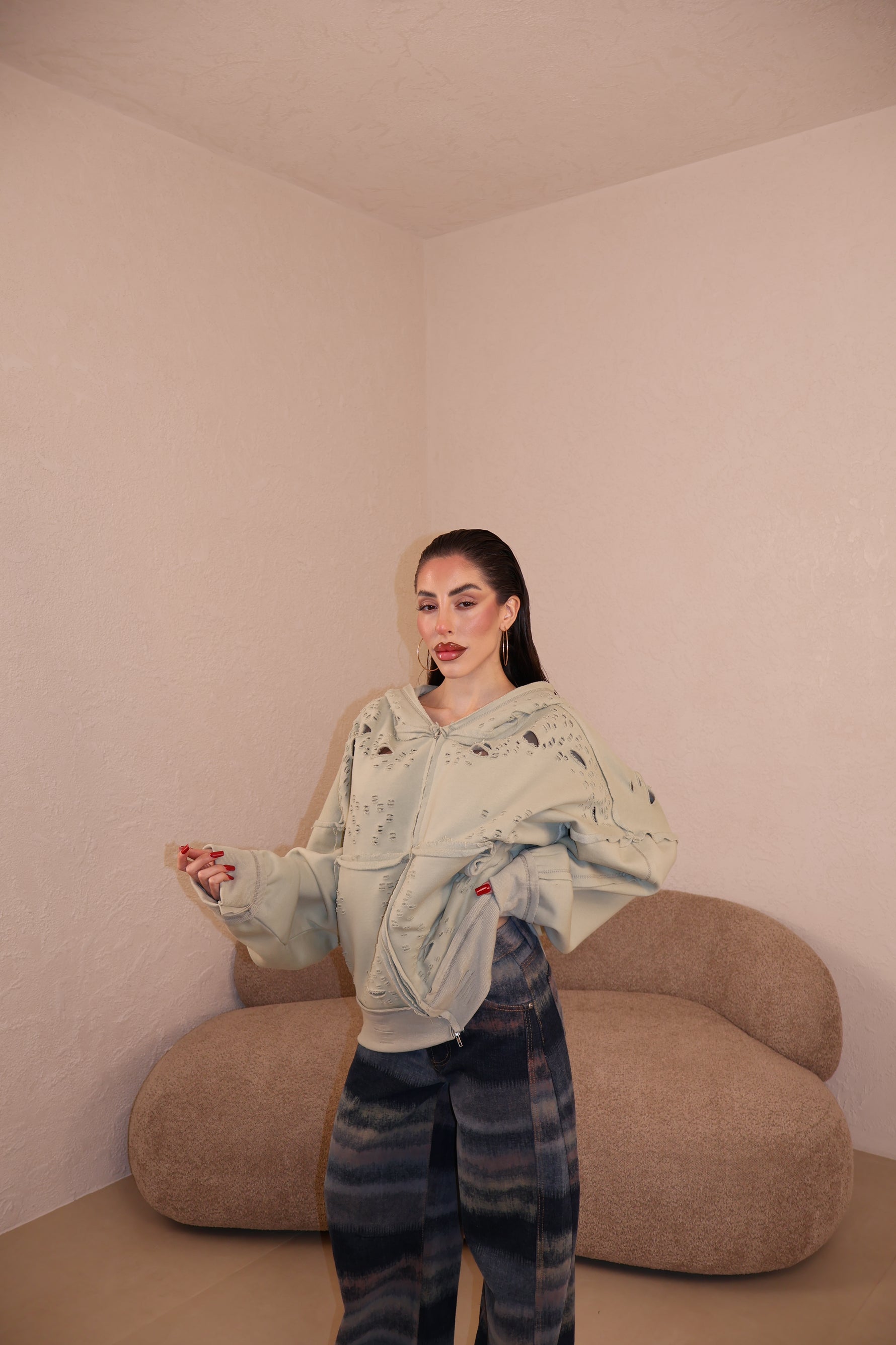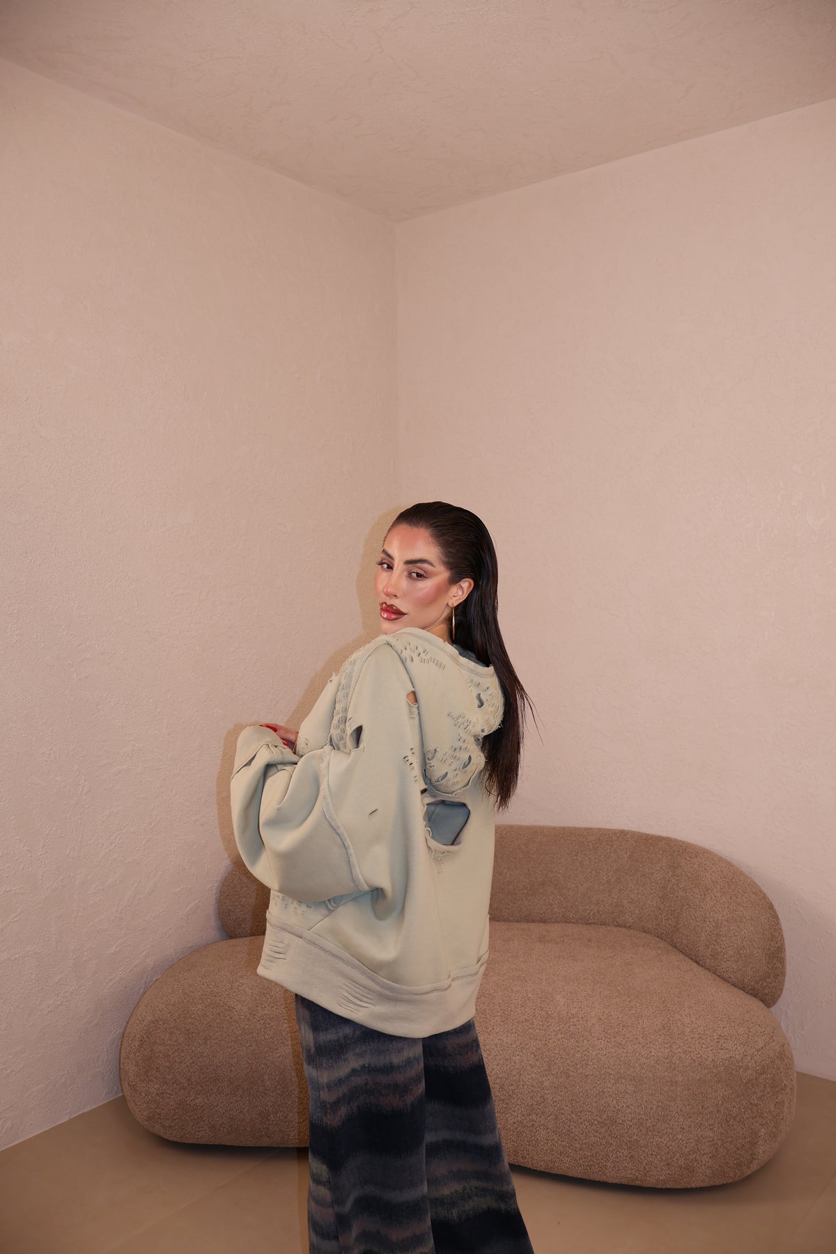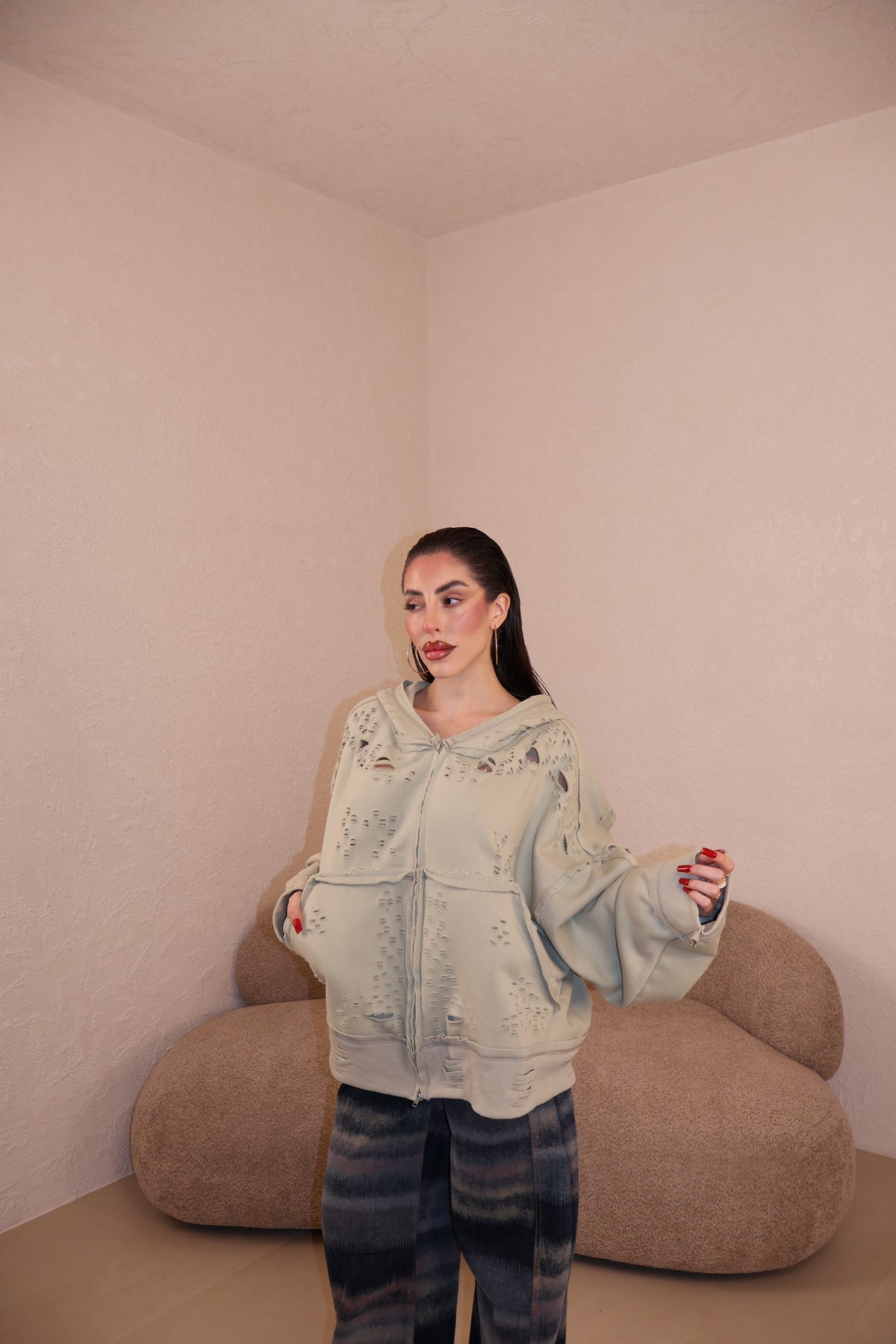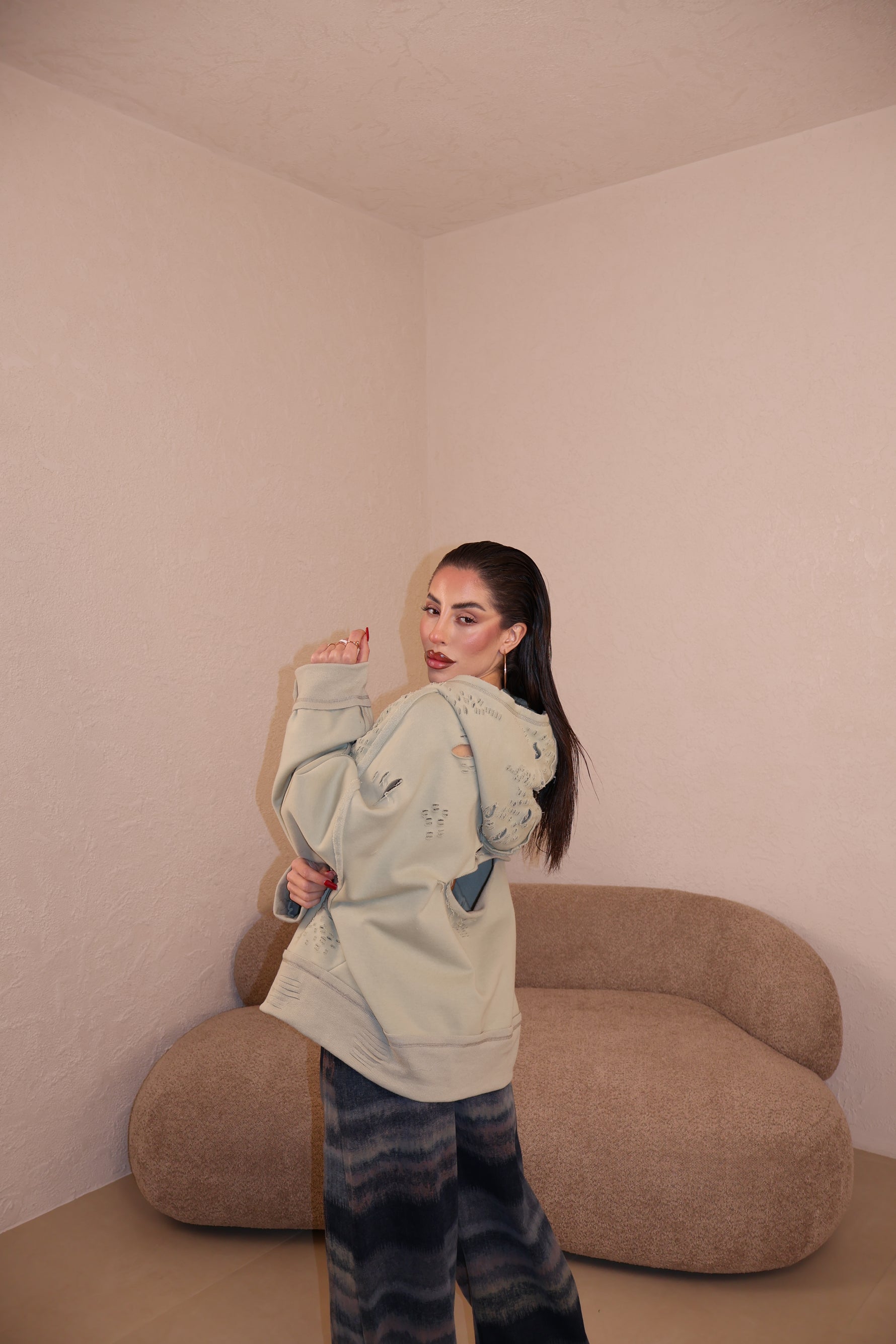 Prezzo unitario / perFelpa over con cappuccio e dettagli strappati. Felpata internamente. Taglia unica.
