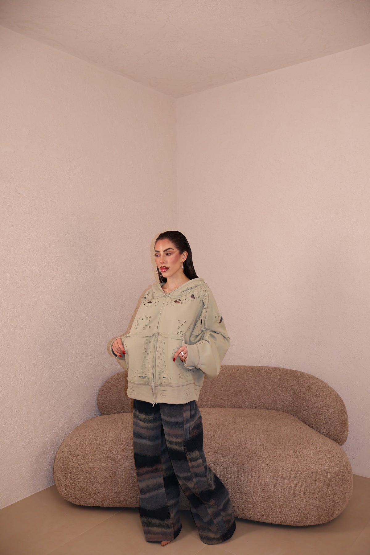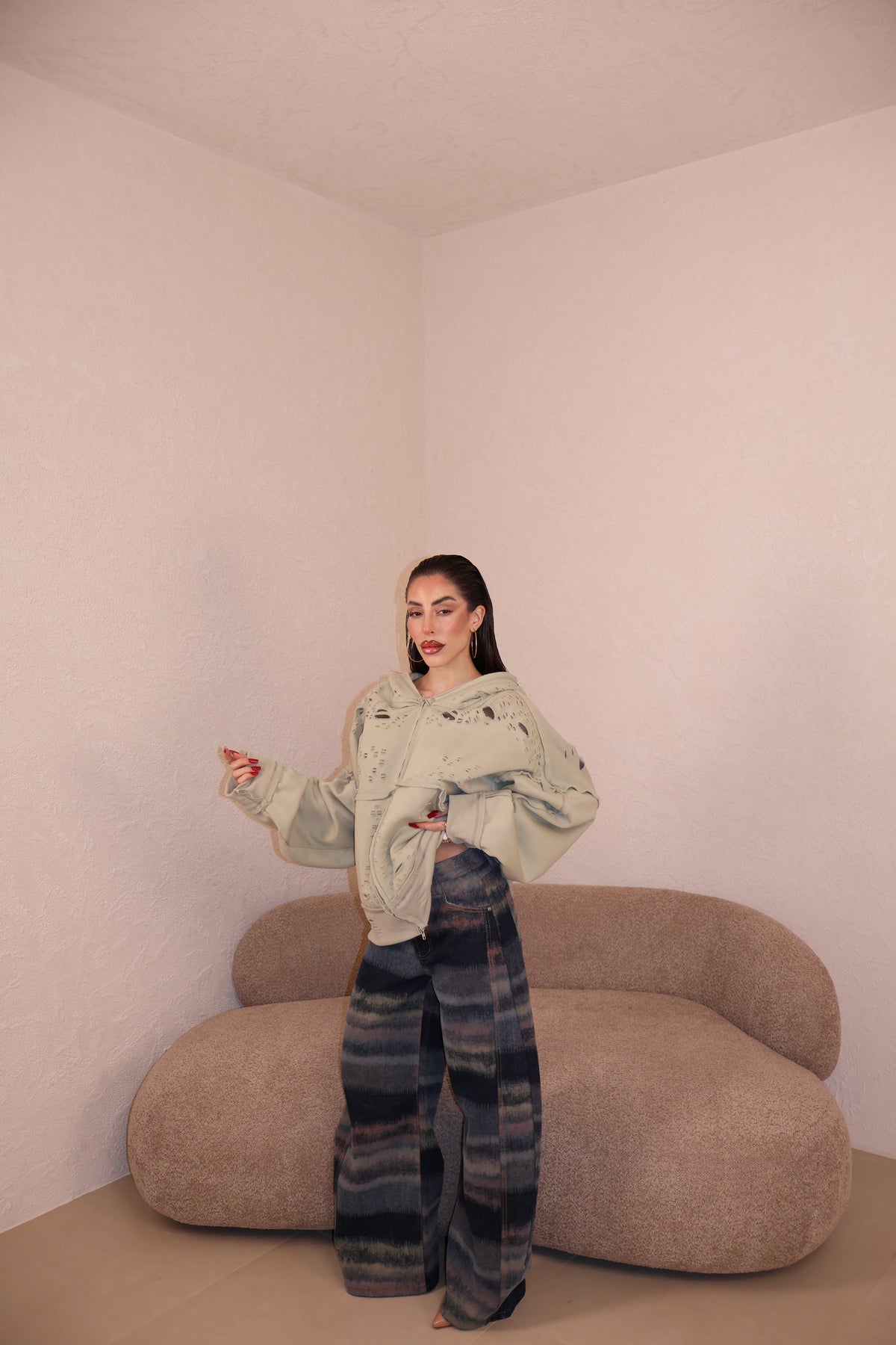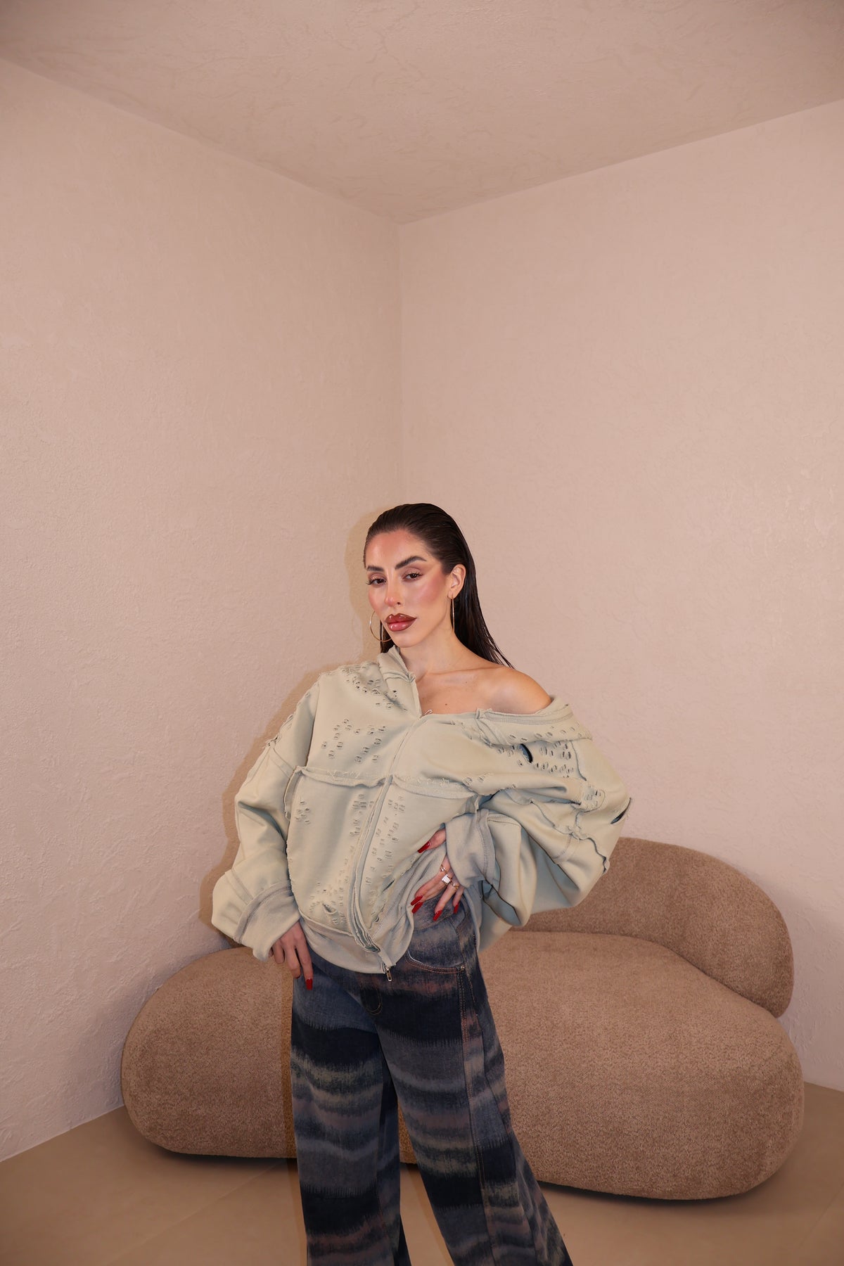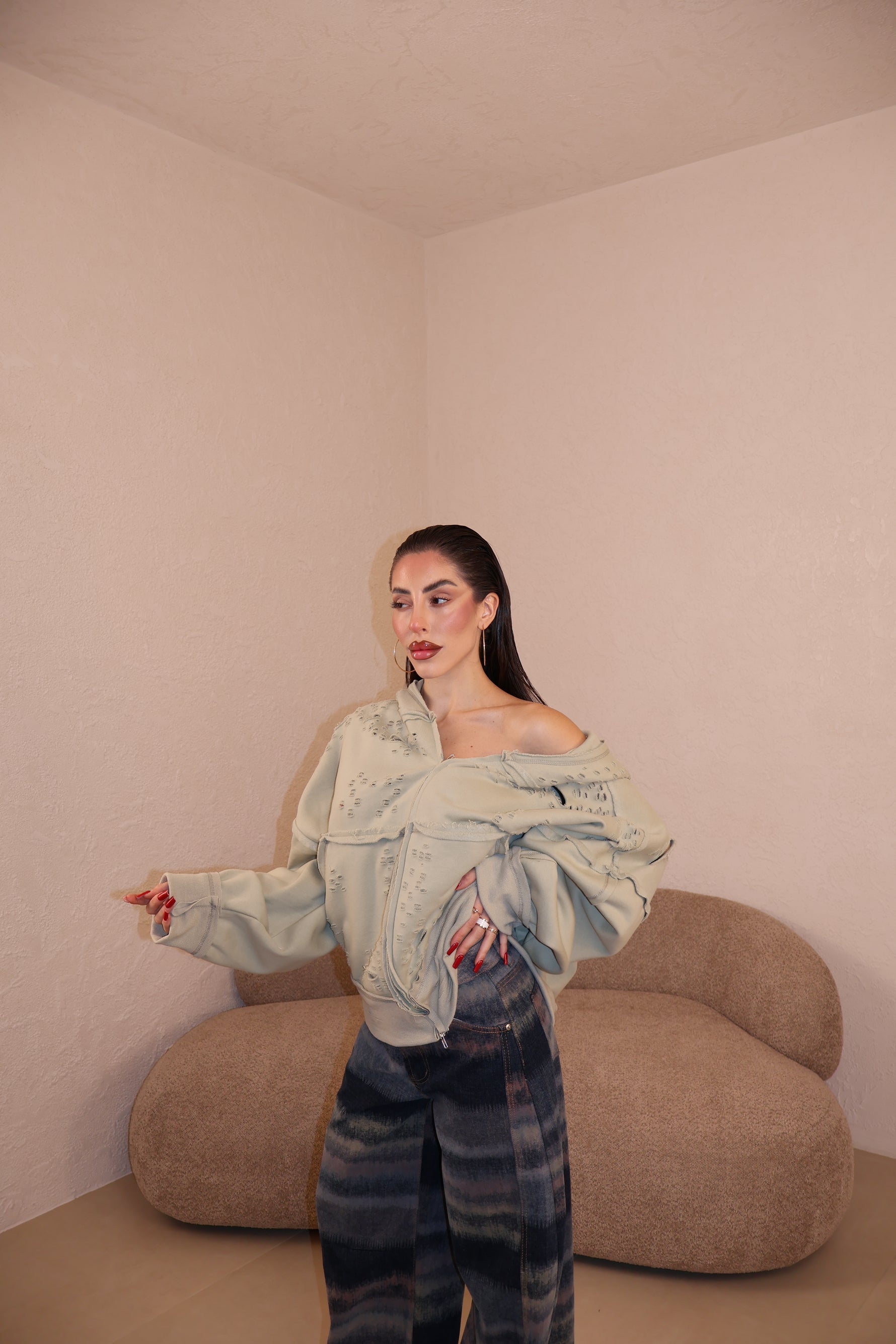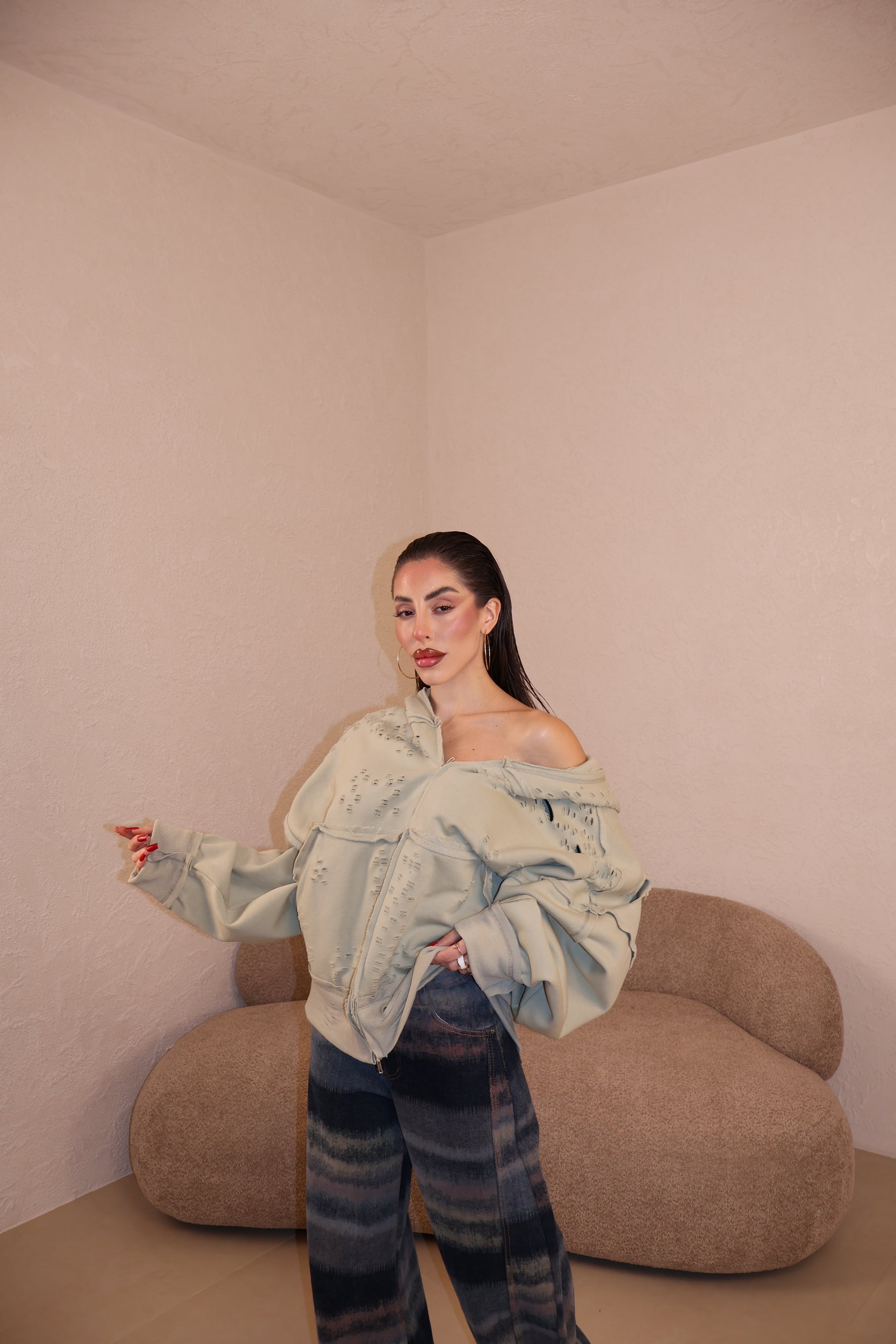 Prezzo unitario / perFelpa over con cappuccio e dettagli strappati. Felpata internamente. Taglia unica.