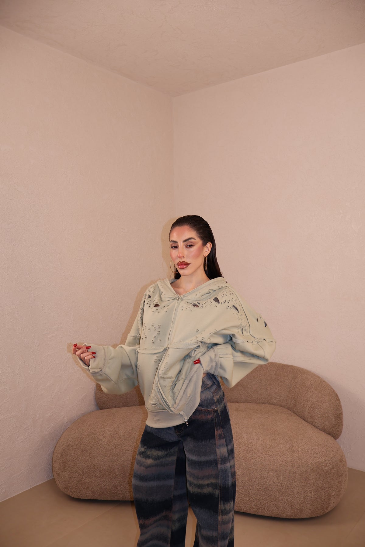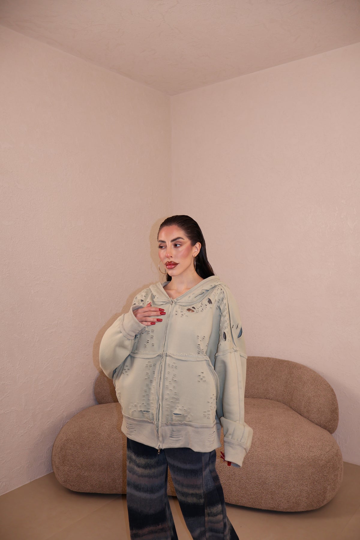 Felpa over con cappuccio e dettagli strappati. Felpata internamente. Taglia unica.