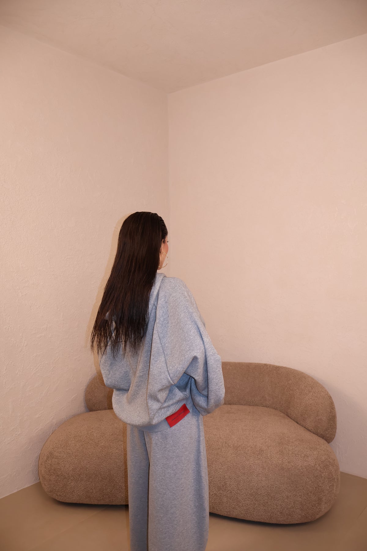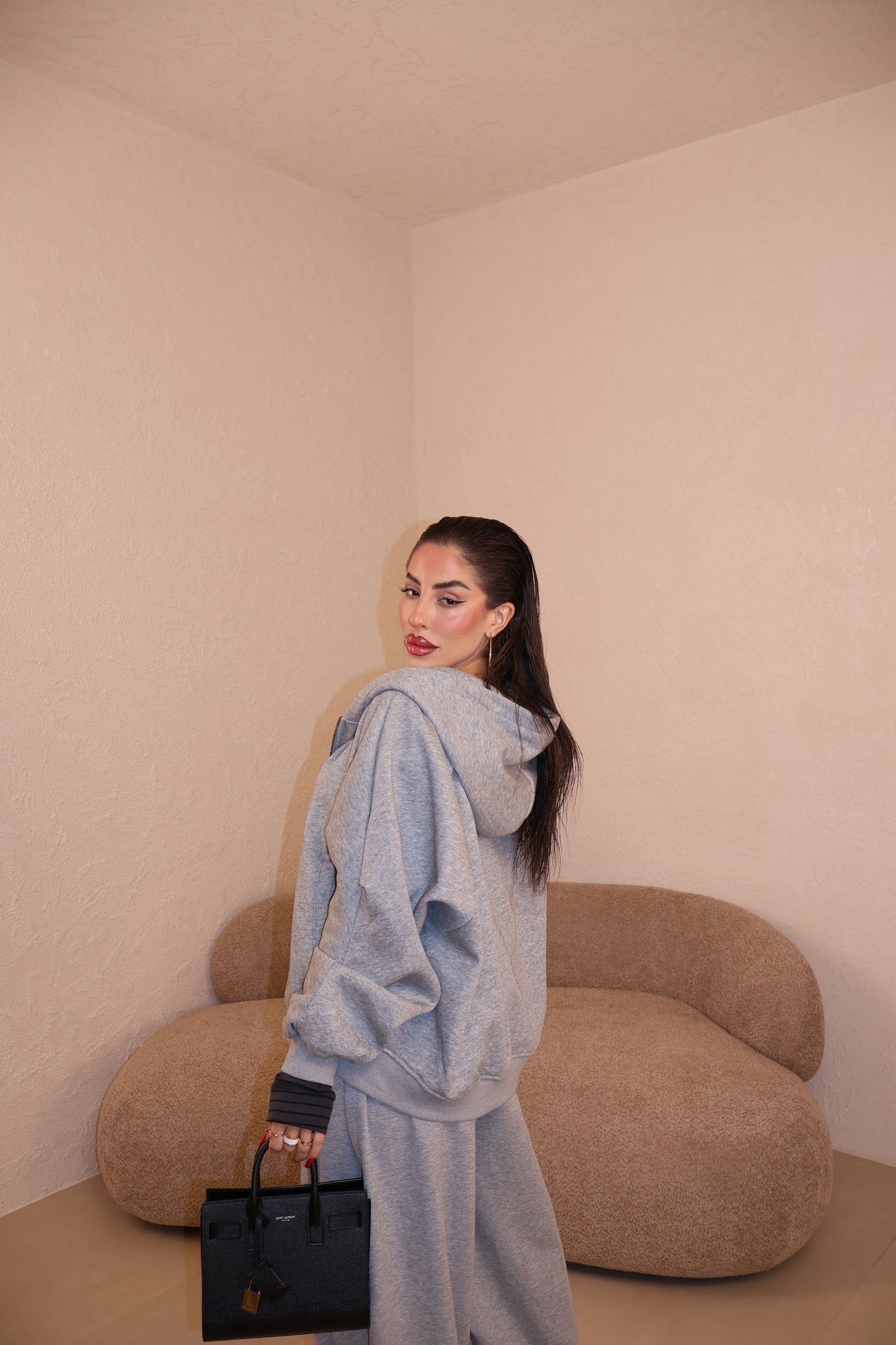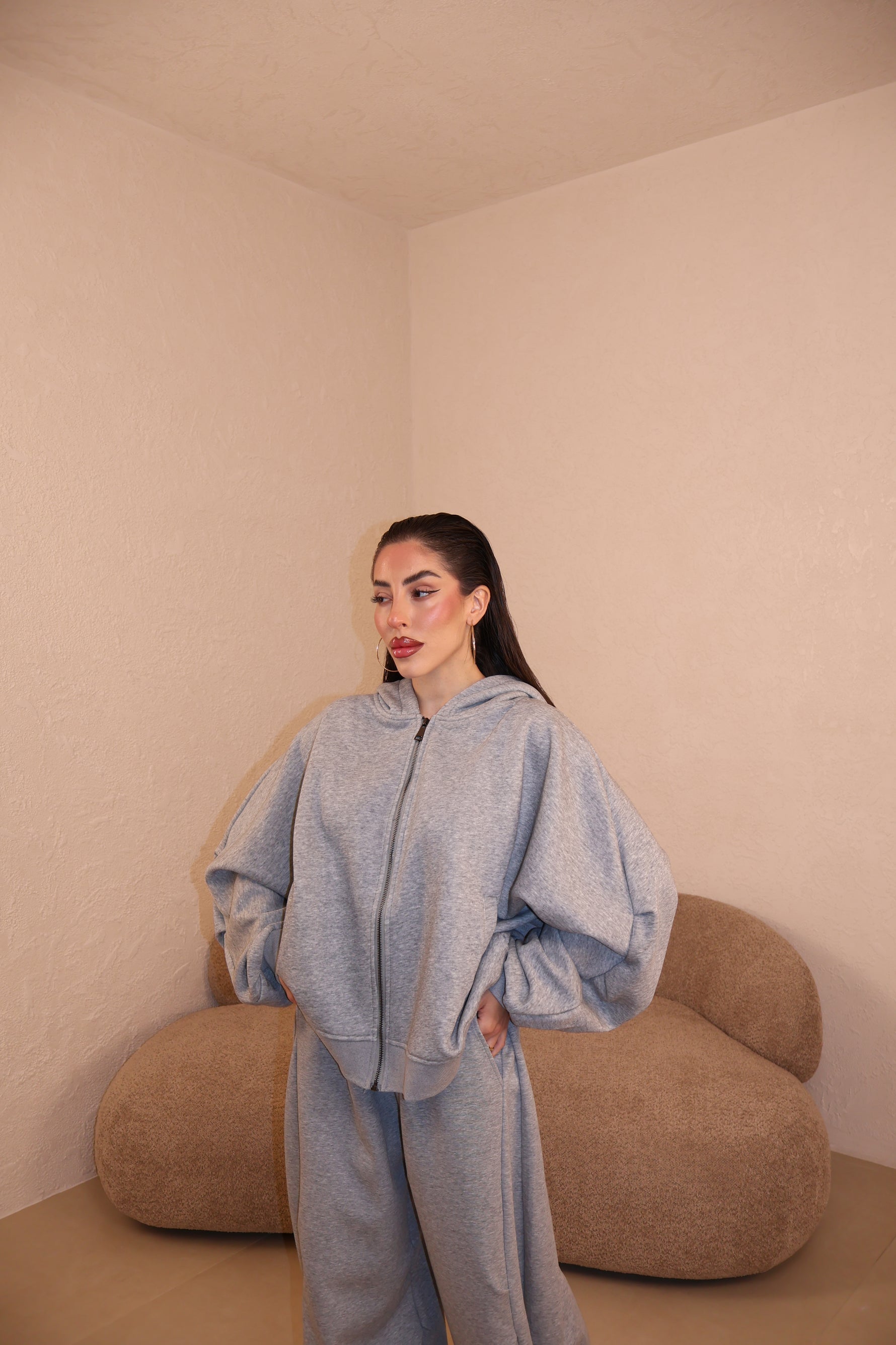 Felpa over con maniche ampie e cappuccio. Chiusura con cerniera. Taglia unica.