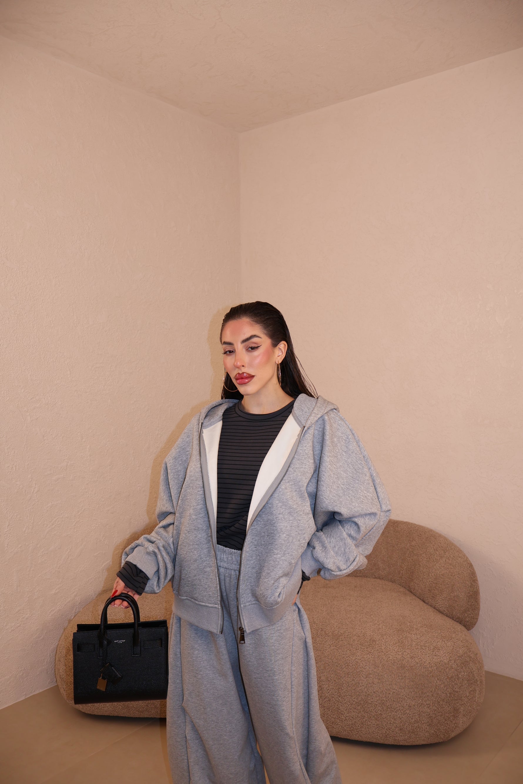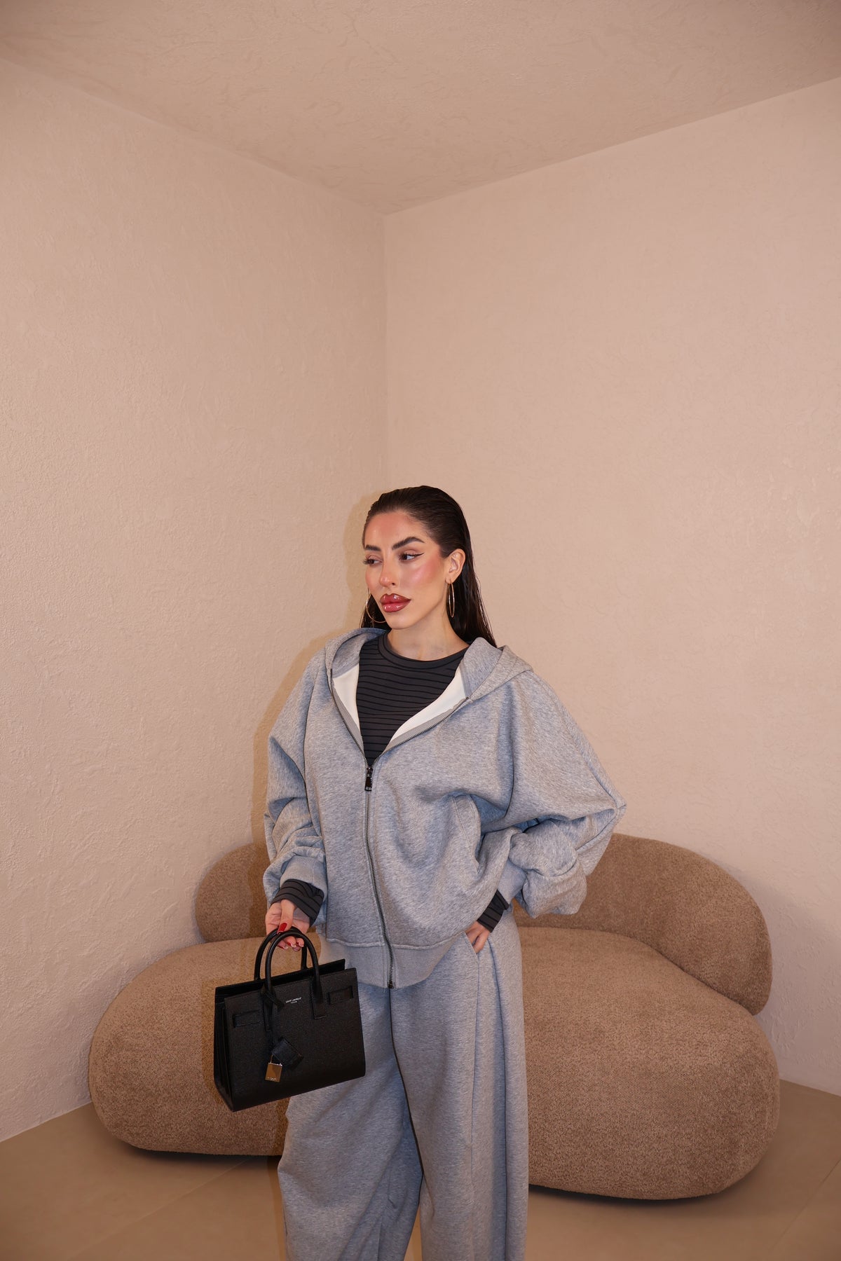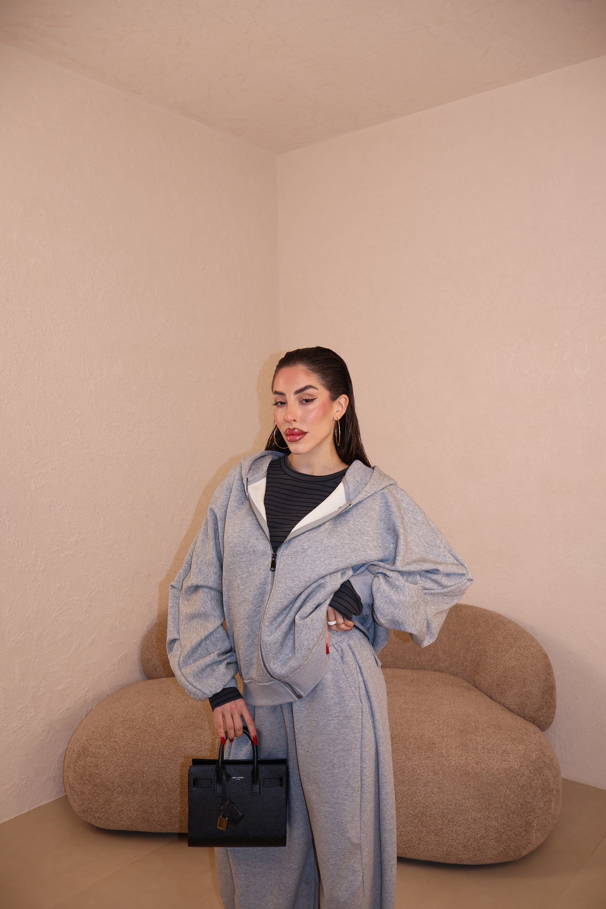 Felpa over con maniche ampie e cappuccio. Chiusura con cerniera. Taglia unica.