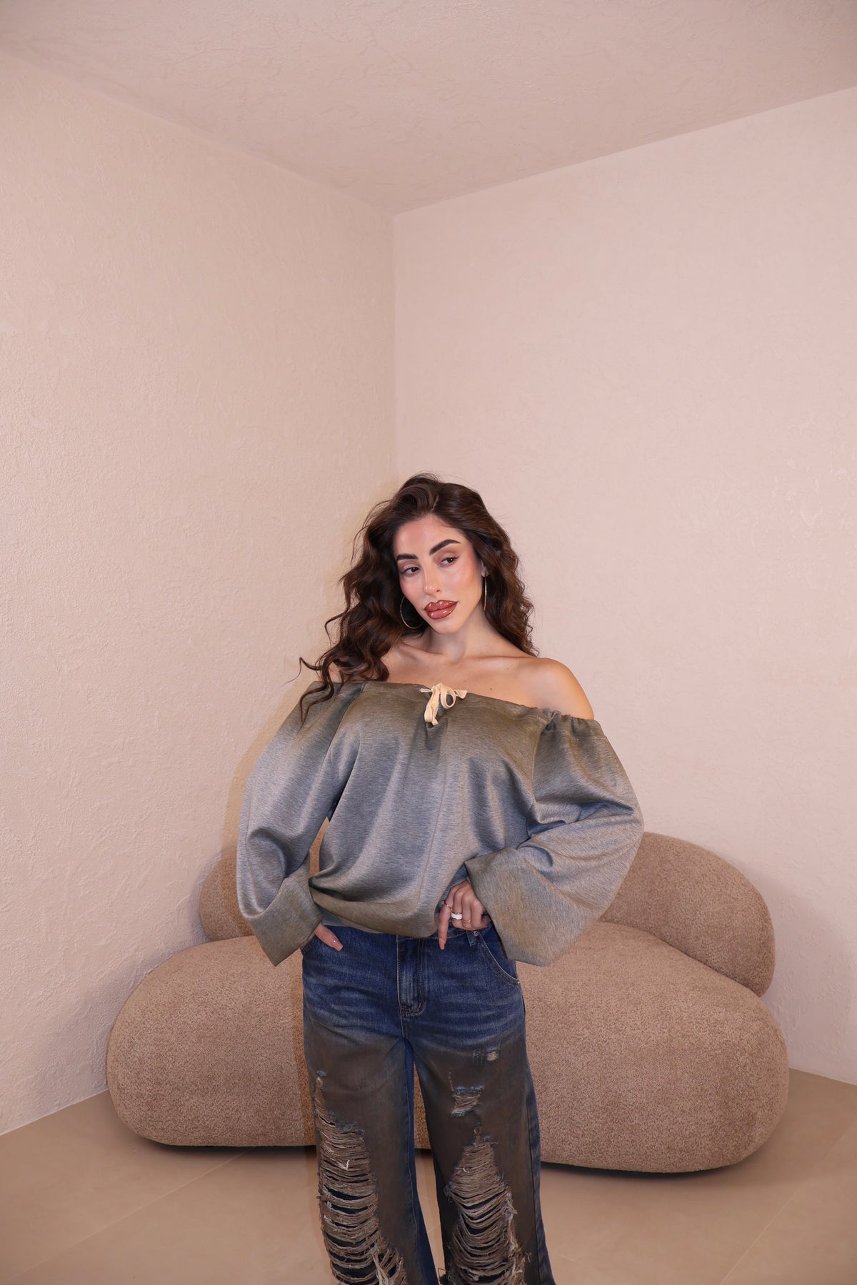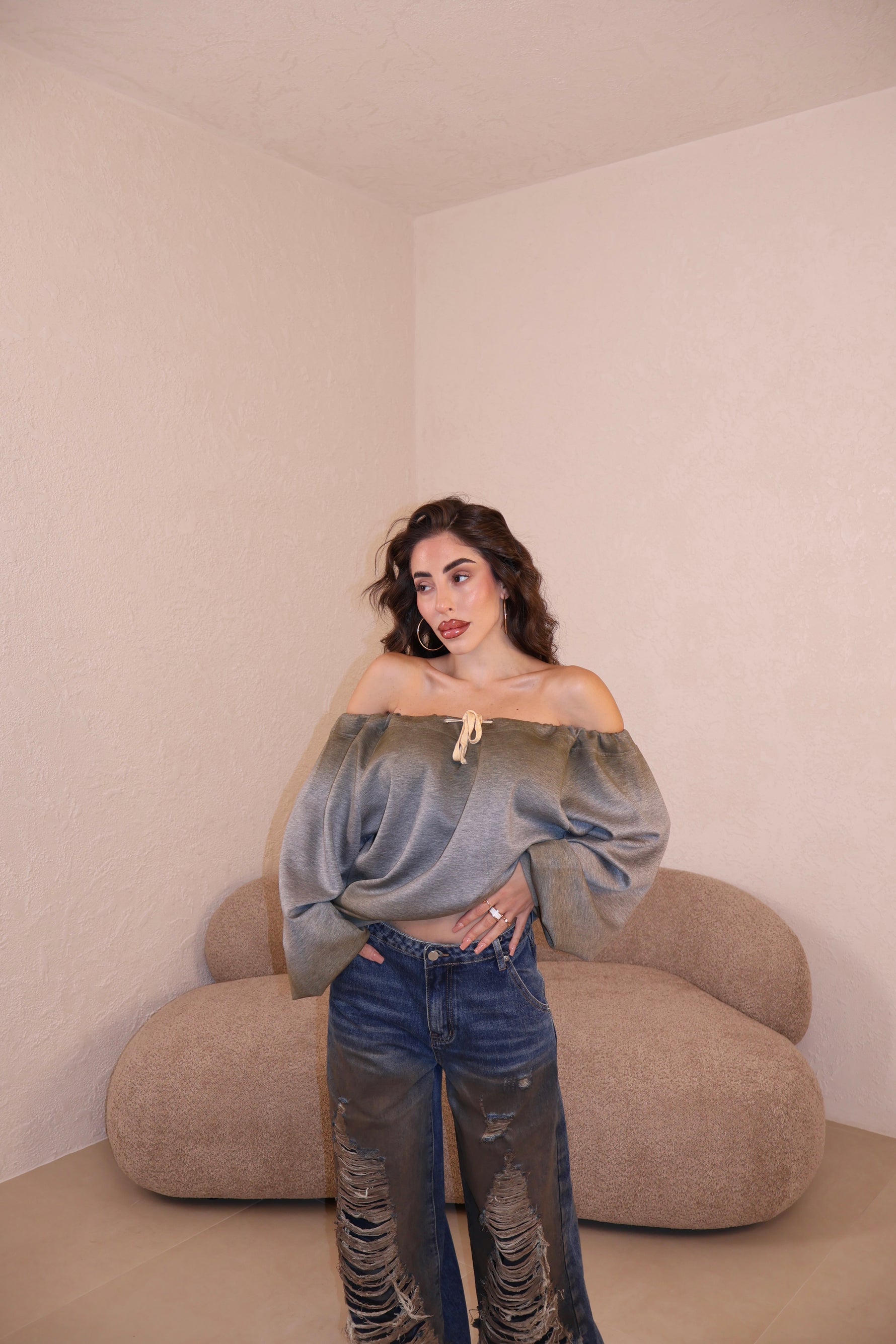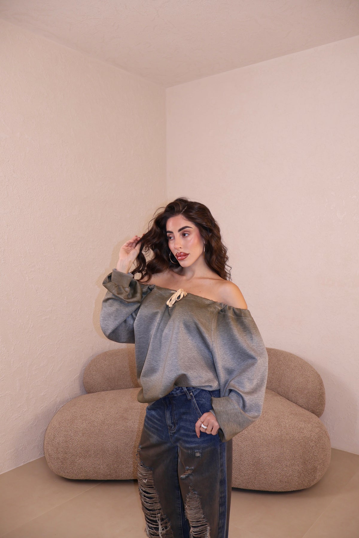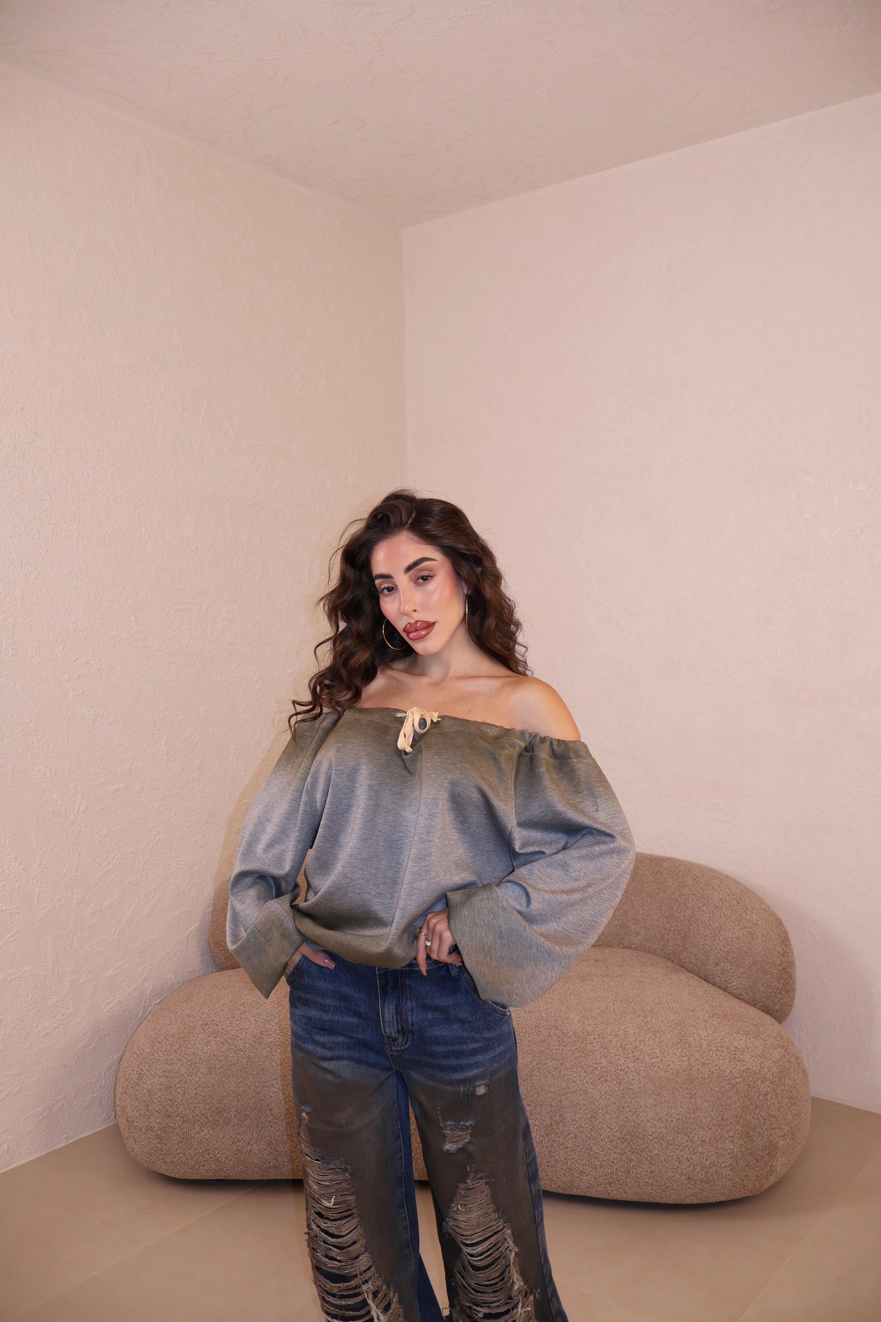 Felpa over con scollo a barca regolabile. Taglia unica.