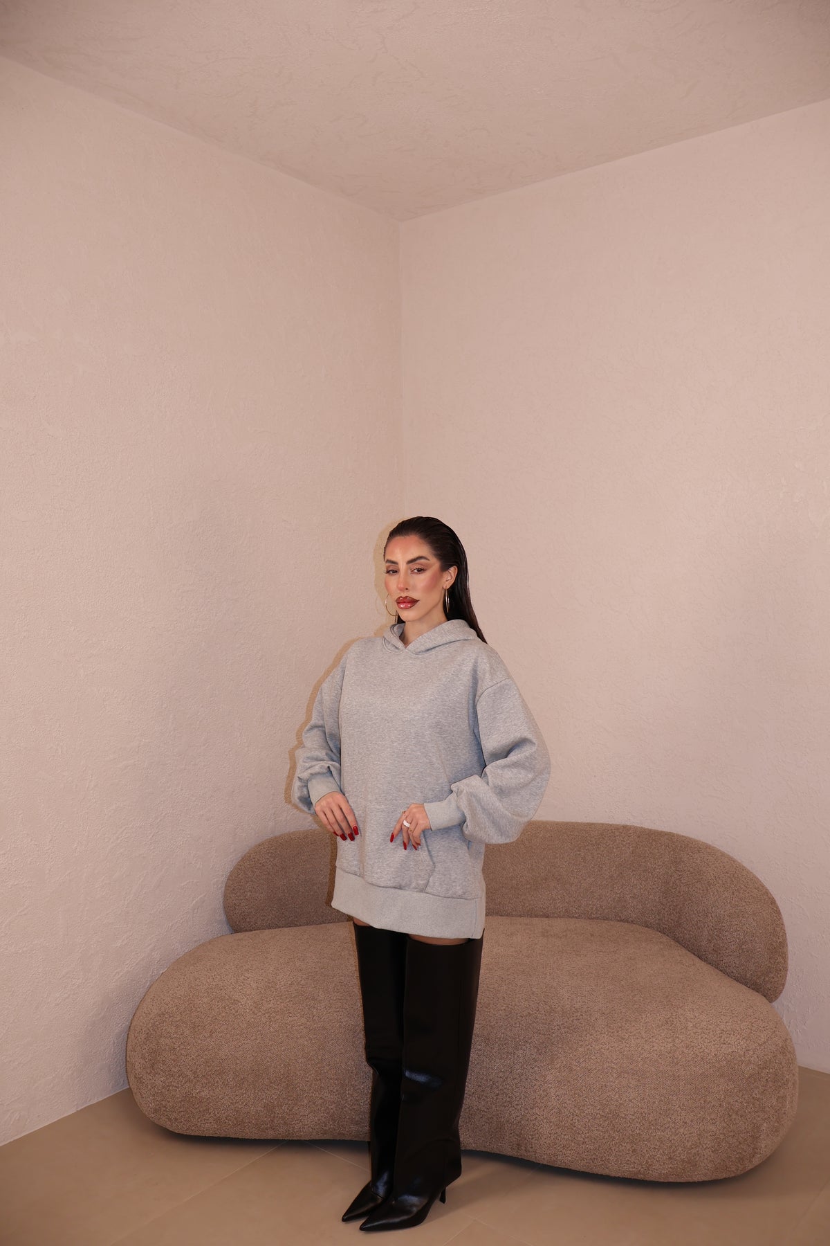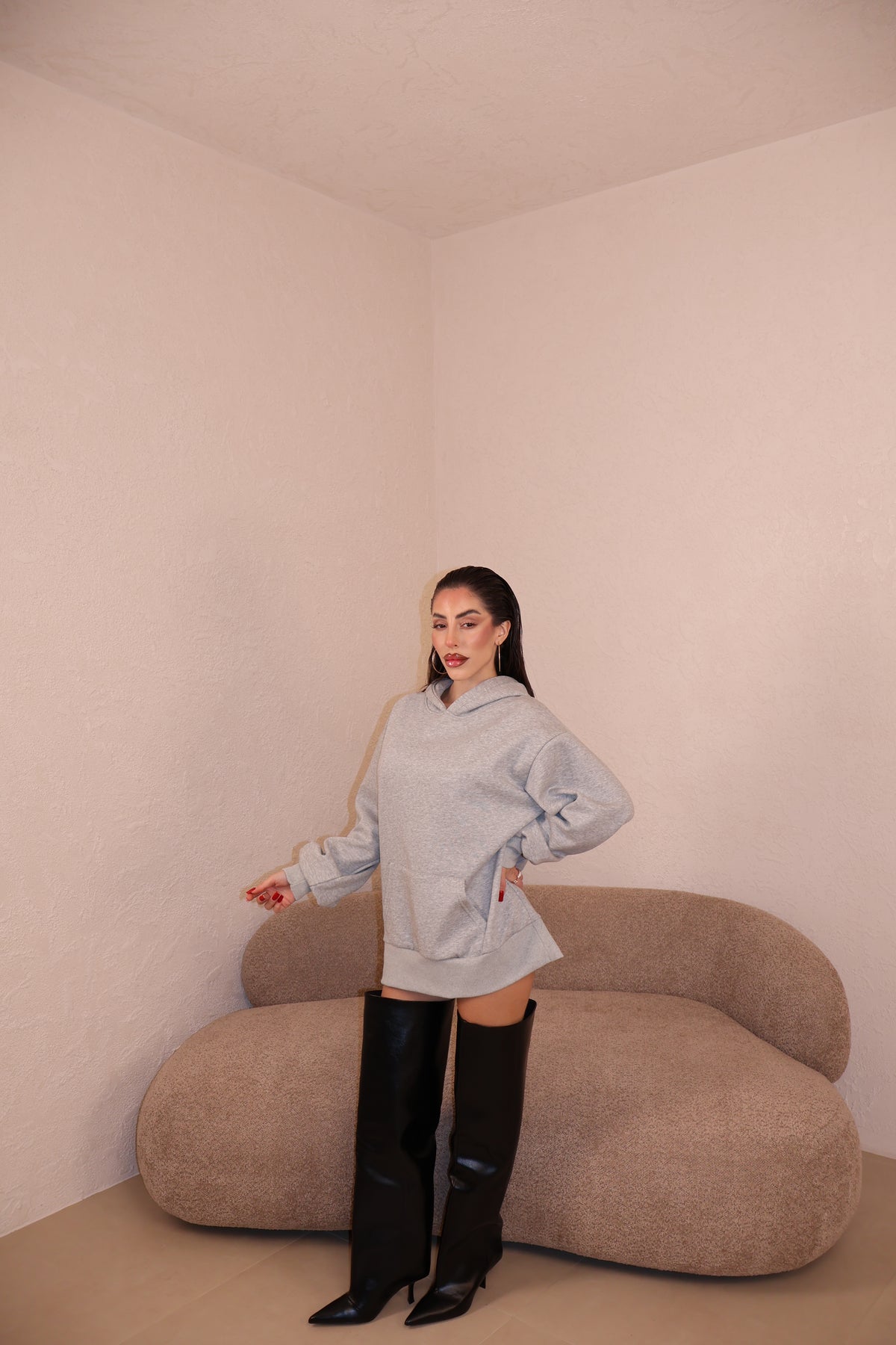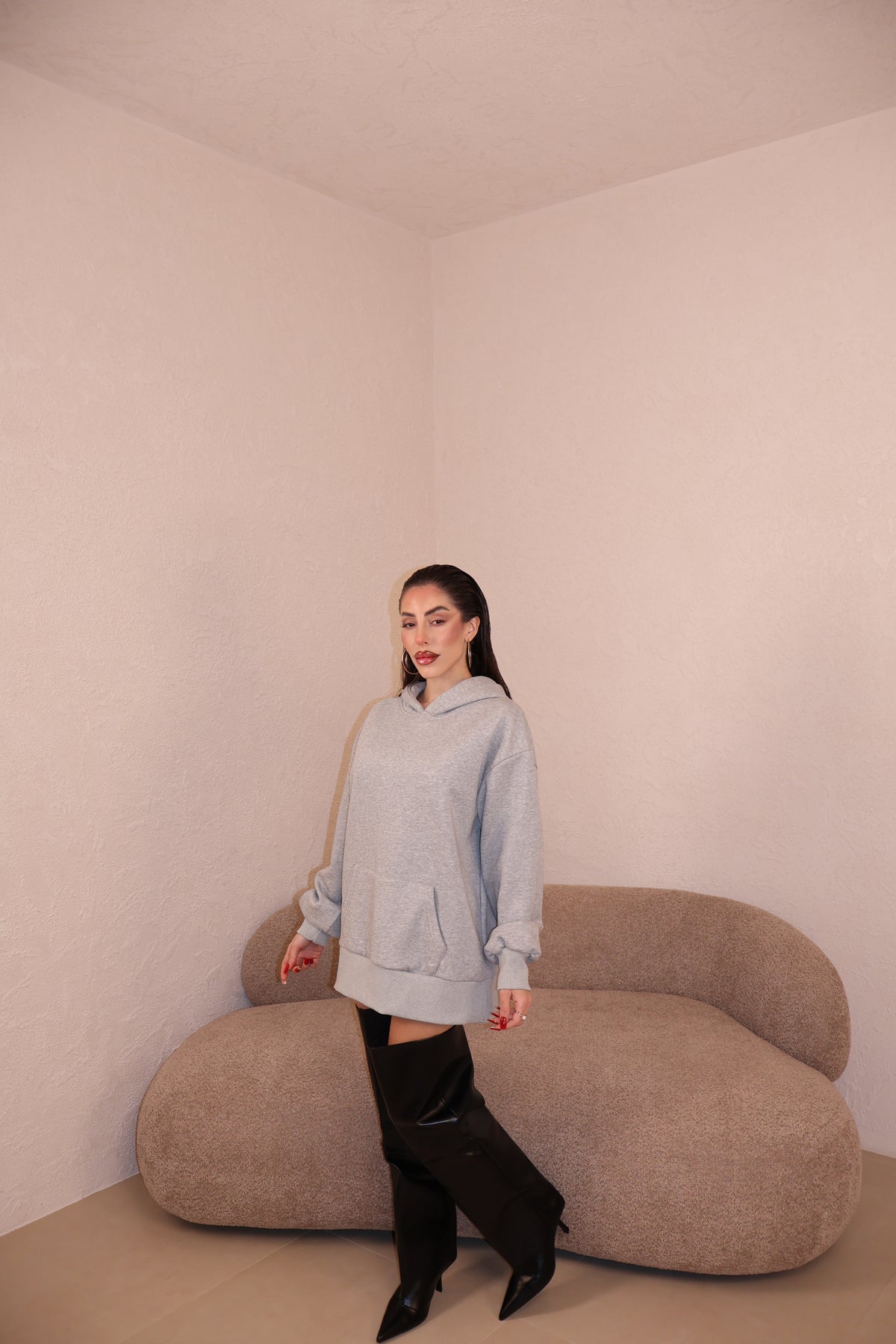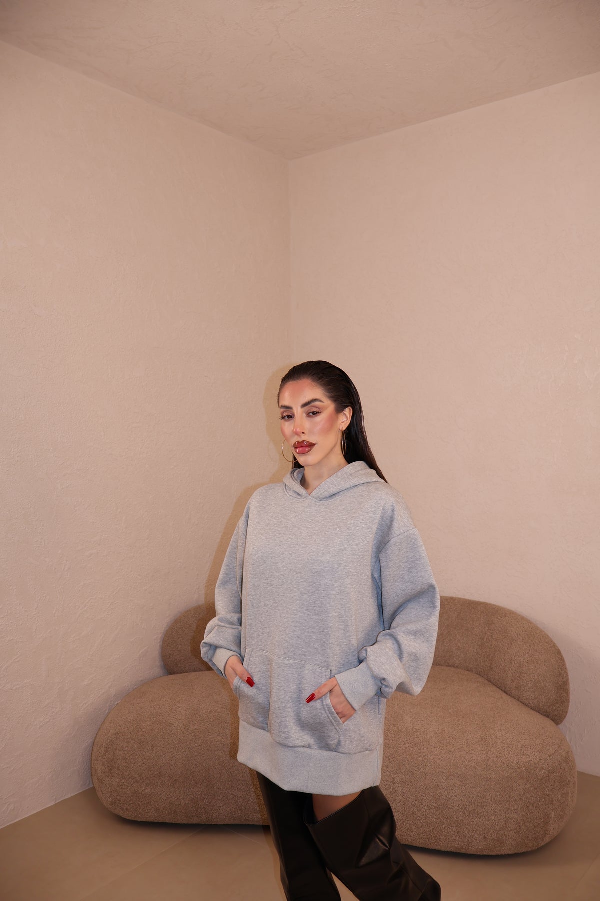 Prezzo unitario / perFelpa over con cappuccio e stringhe sul retro. Taglia unica.