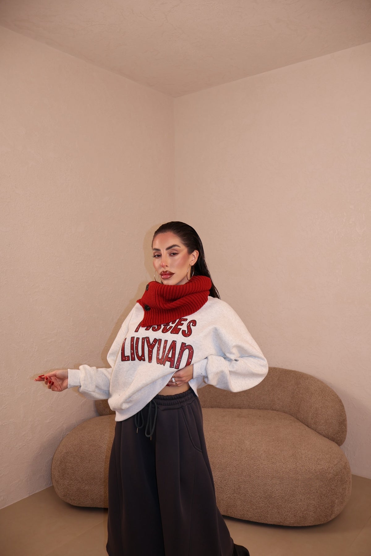 Prezzo unitario / perFelpa over con scaldacollo incluso. Felpata internamente. Taglia unica.