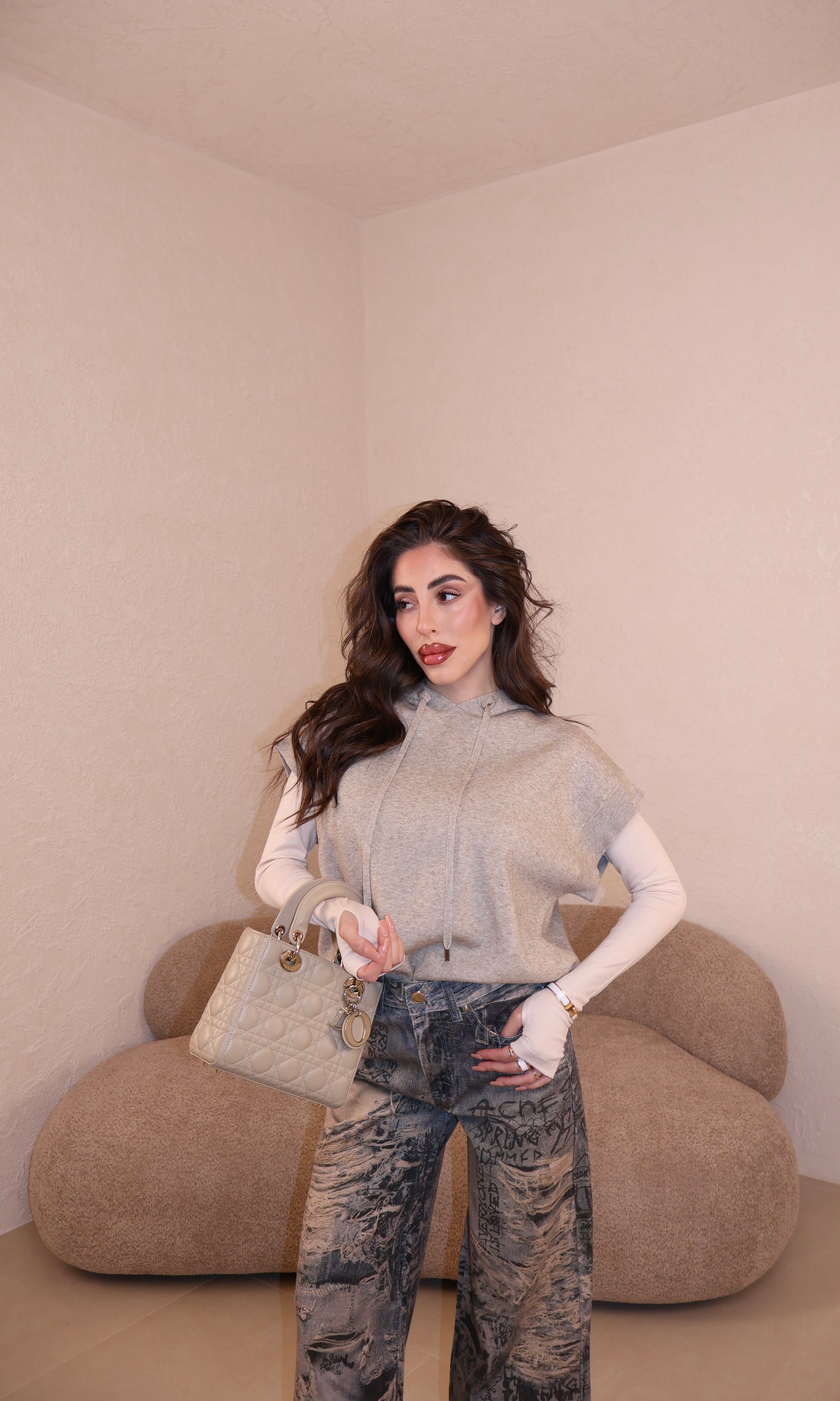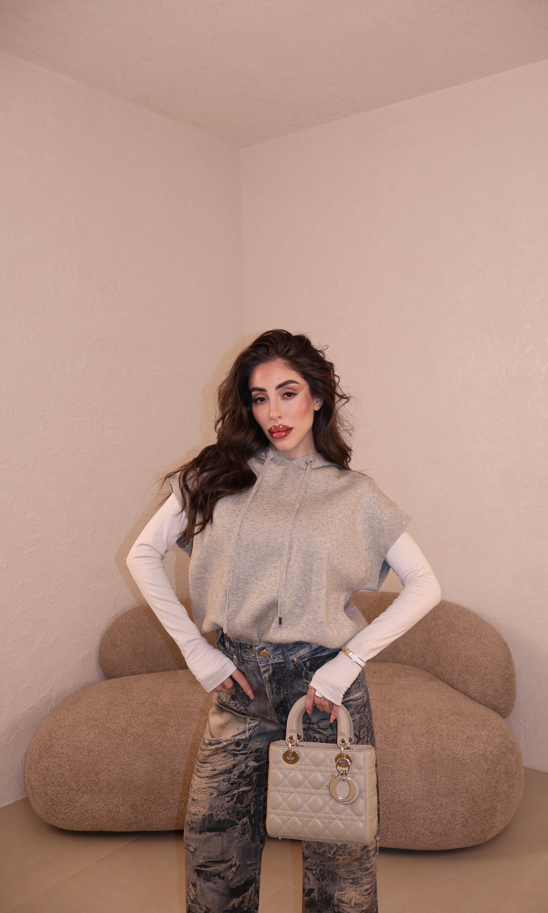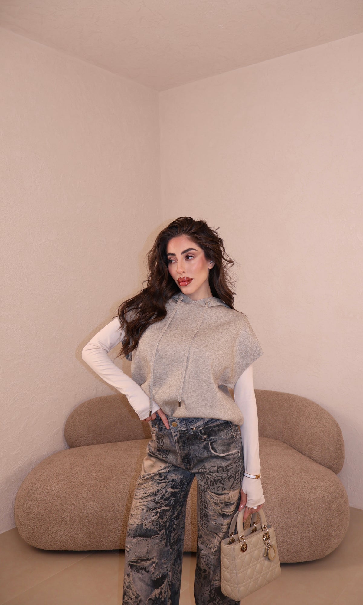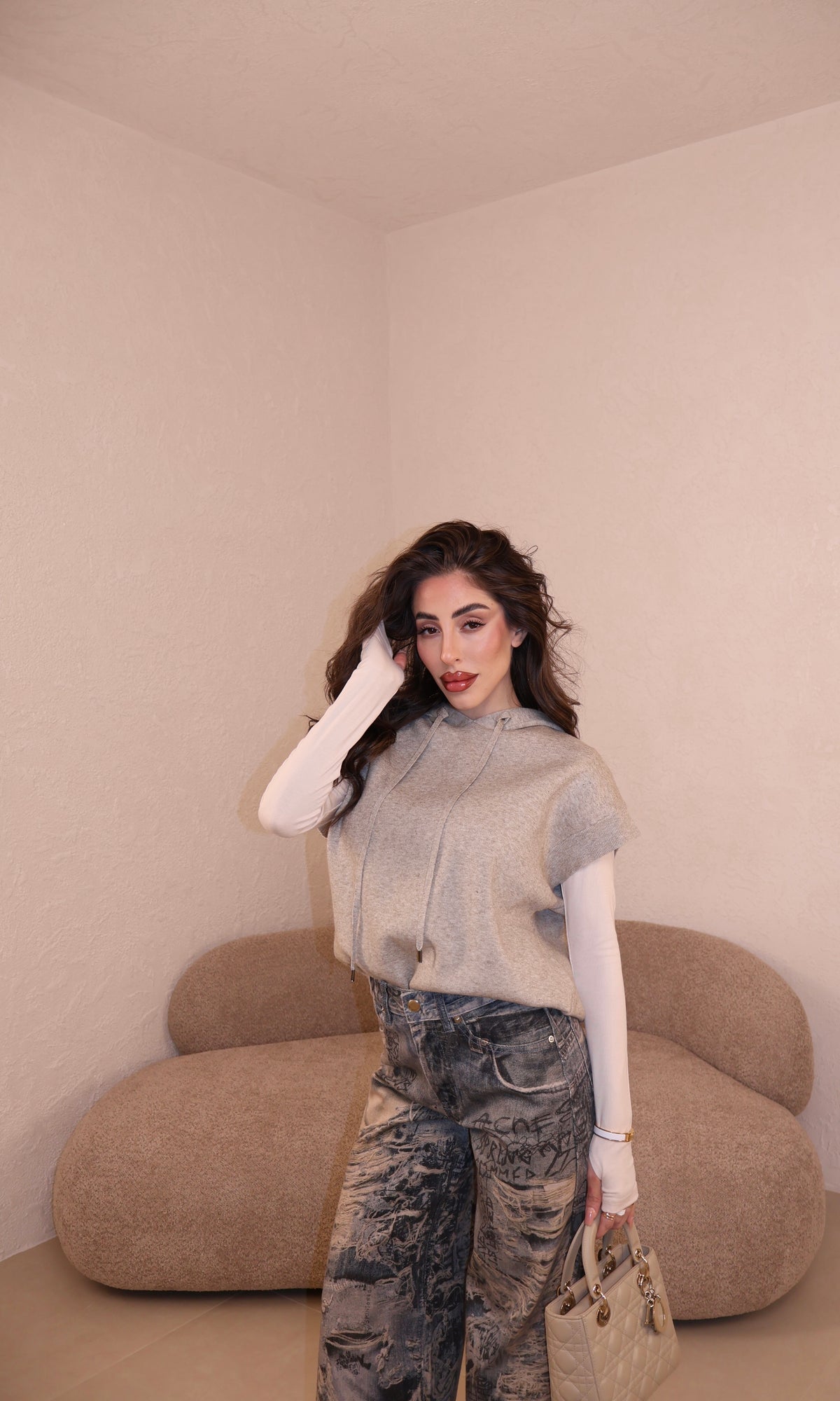 Gilet felpa con cappuccio e laccetti regolabili. Taglia unica.