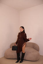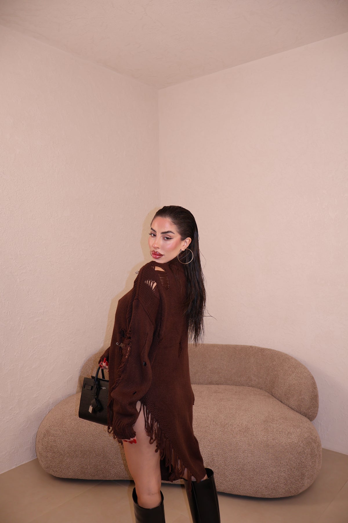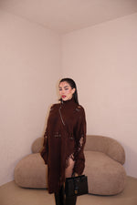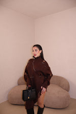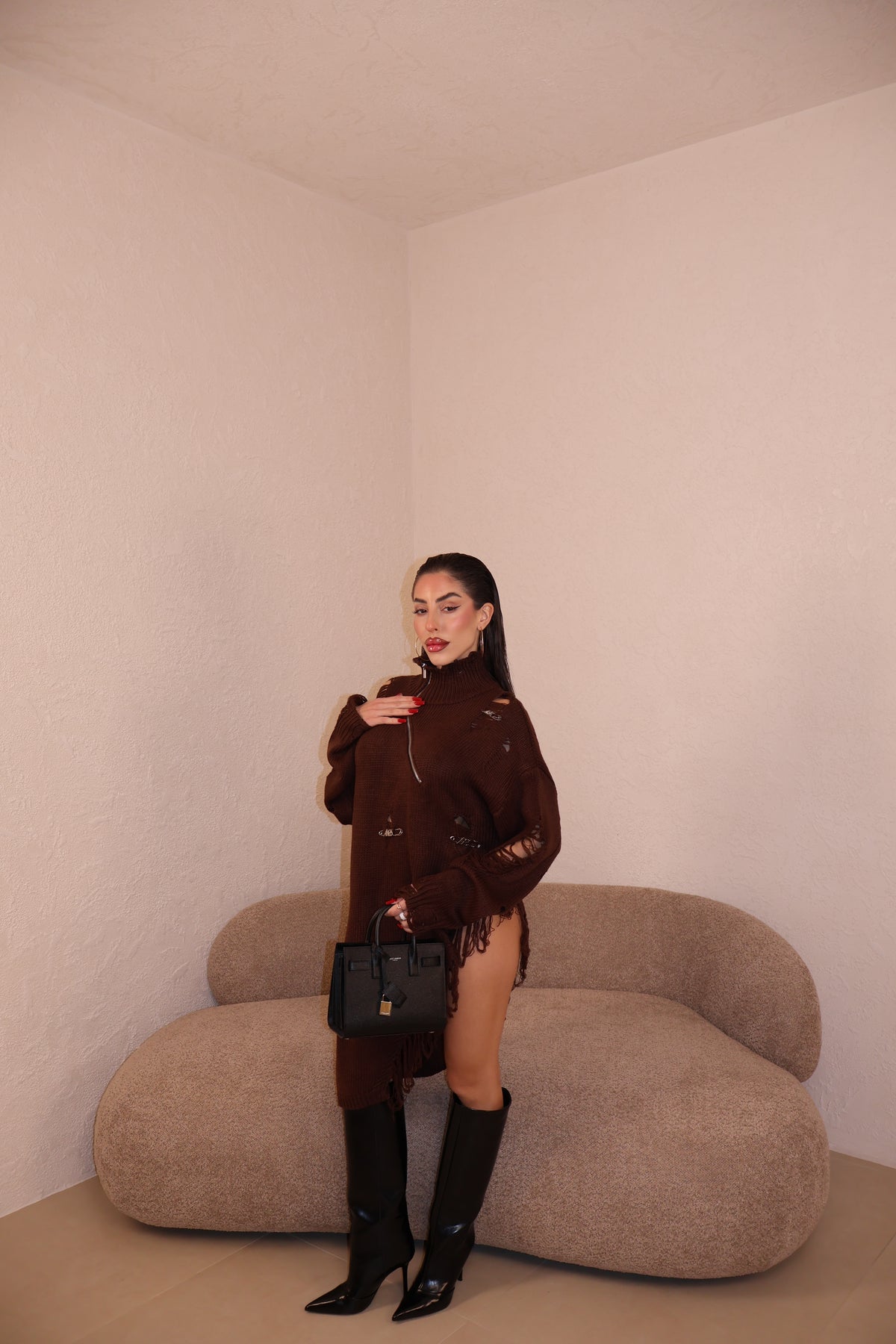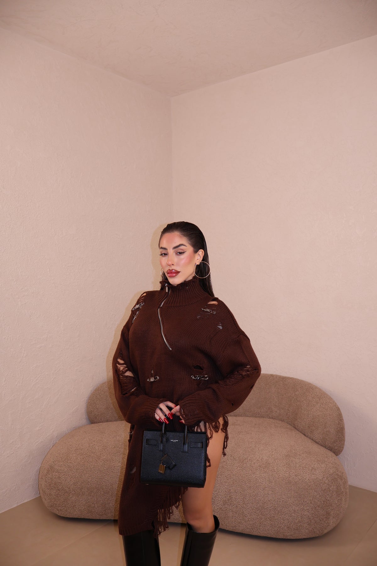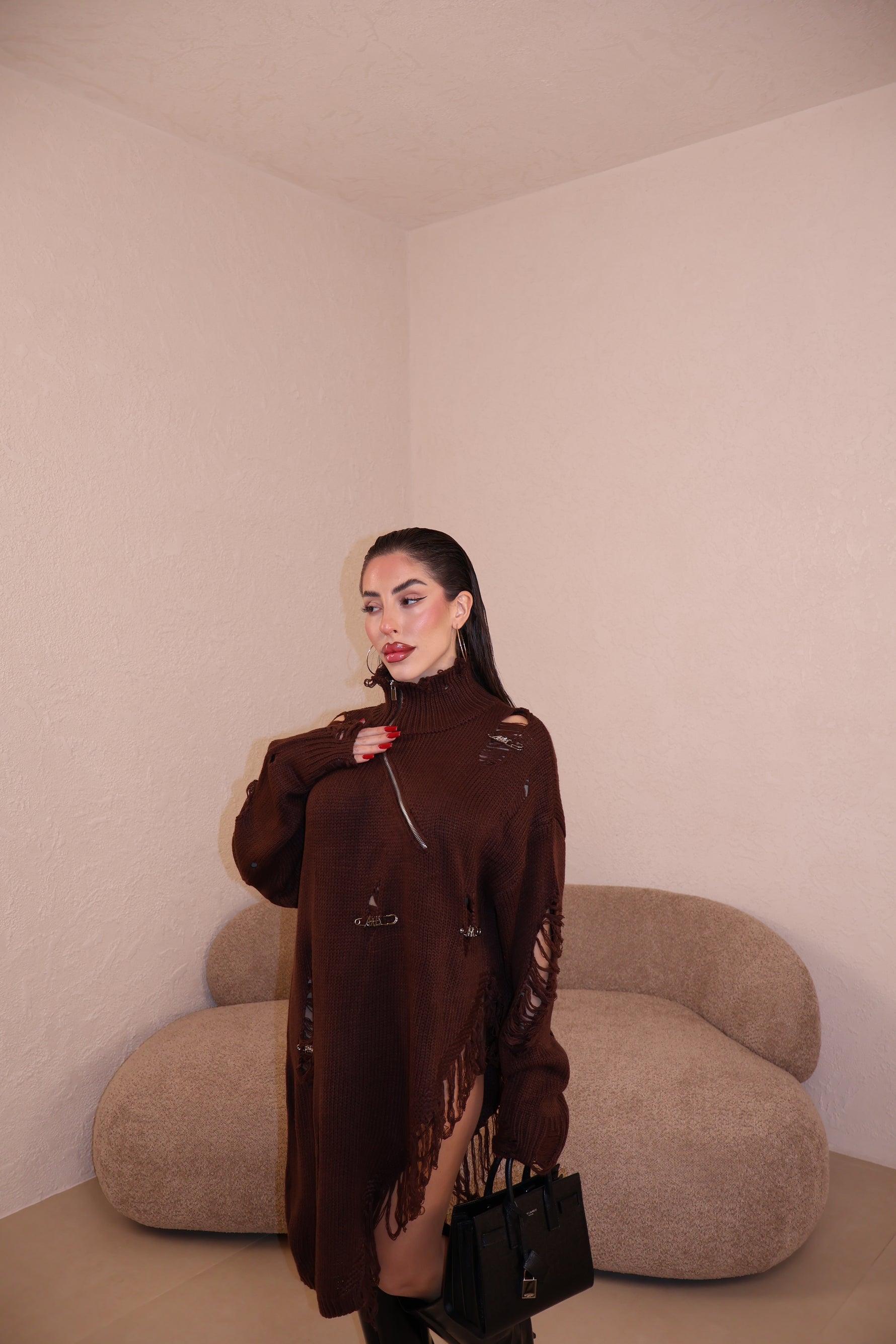 Pullover a collo alto con cerniera e dettagli sfrangiati. Spille removibili. Taglia unica.
