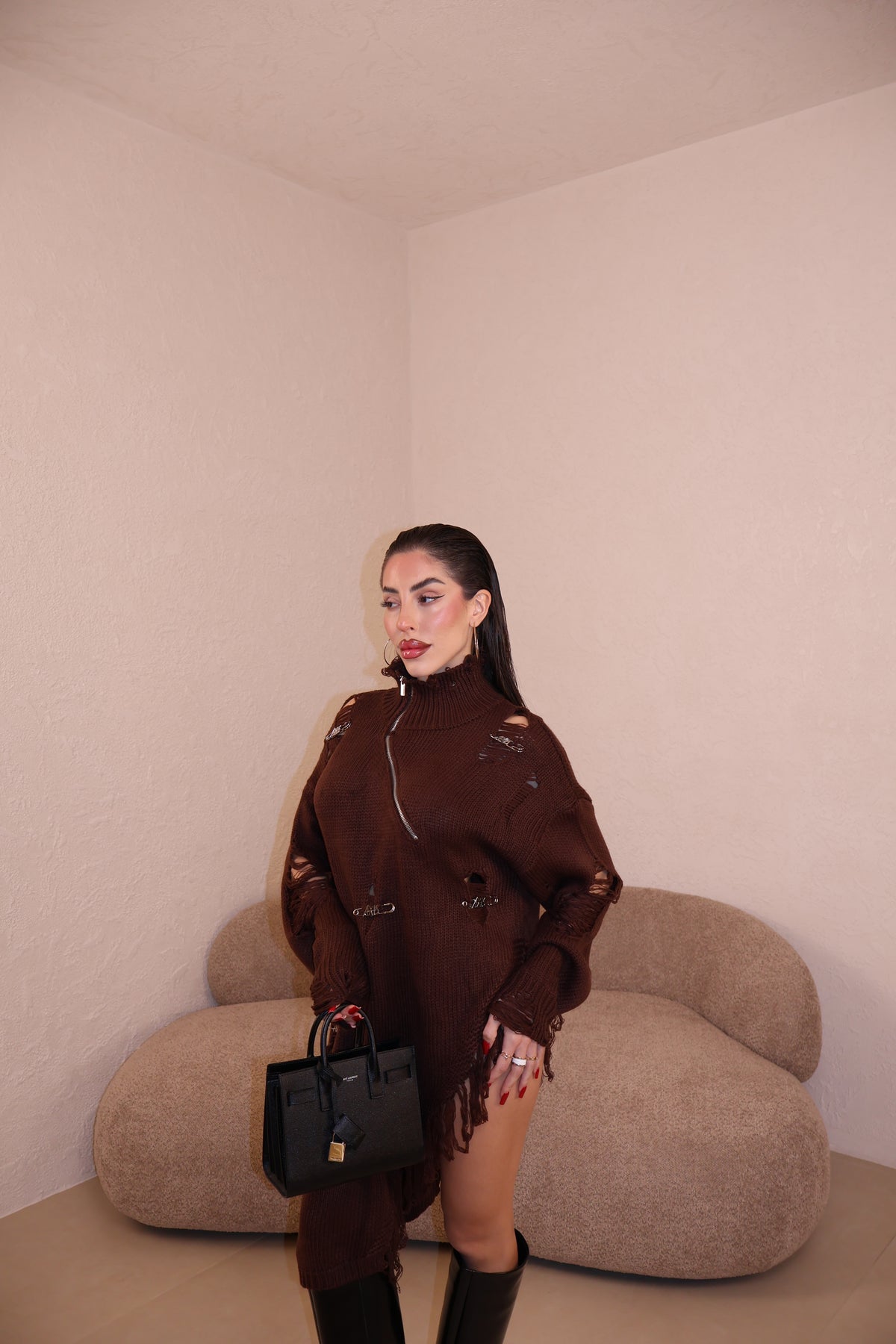 Prezzo unitario / perPullover a collo alto con cerniera e dettagli sfrangiati. Spille removibili. Taglia unica.
