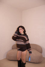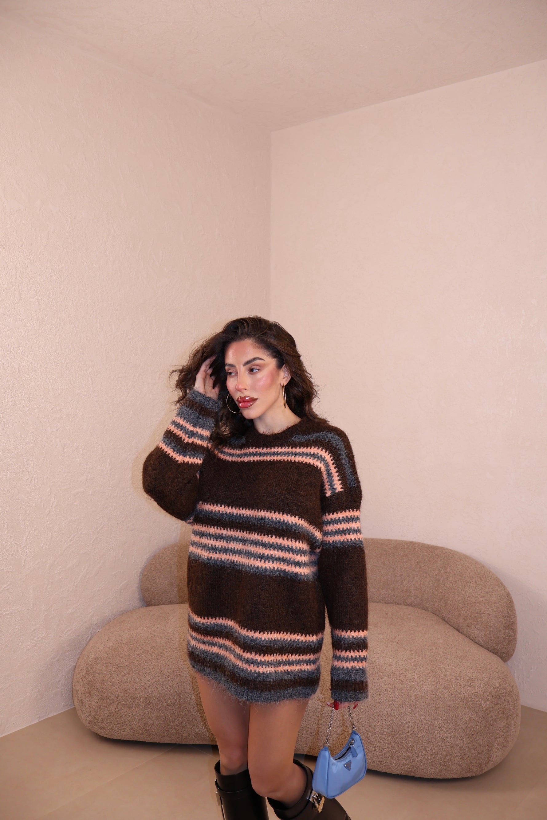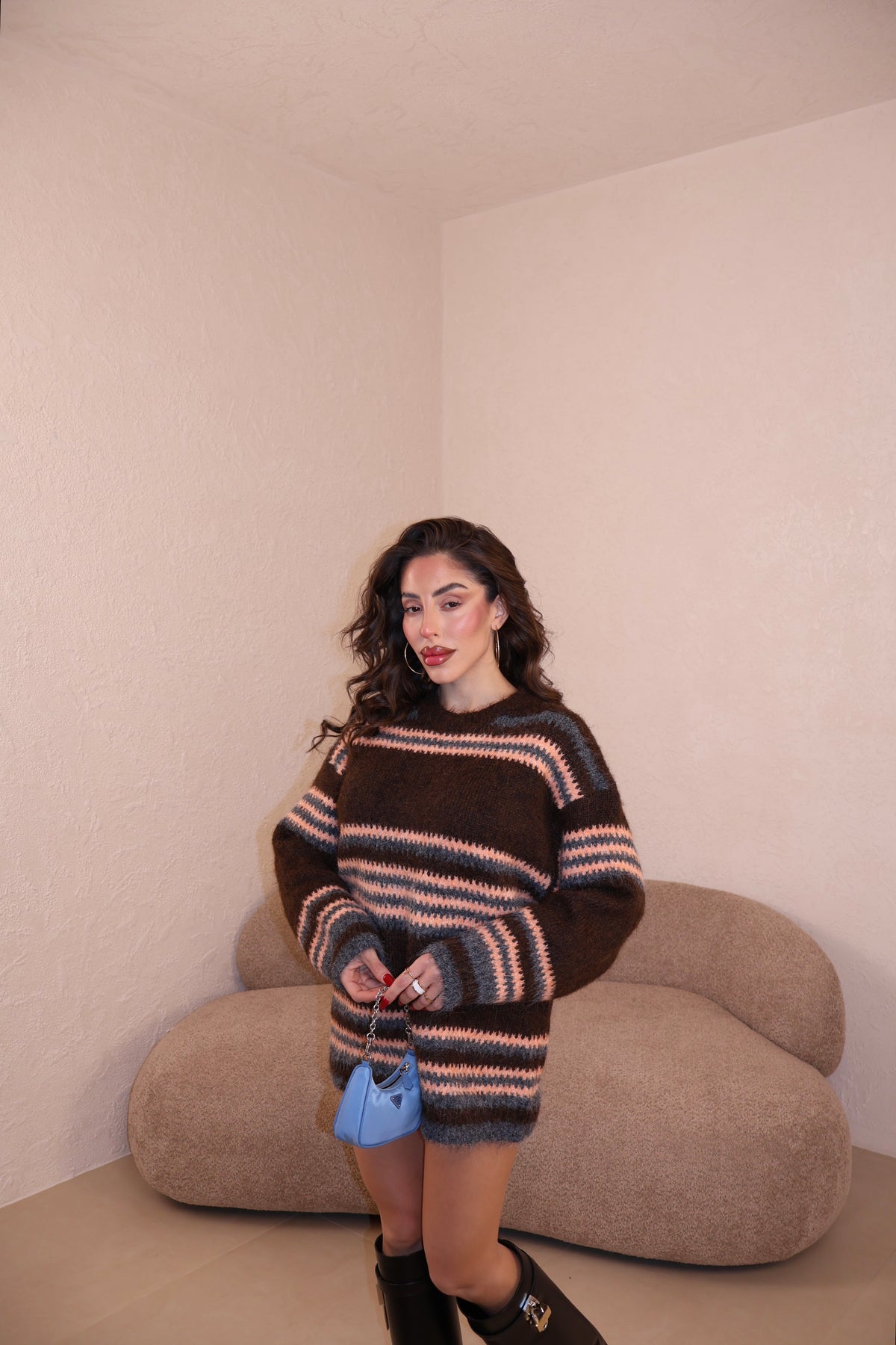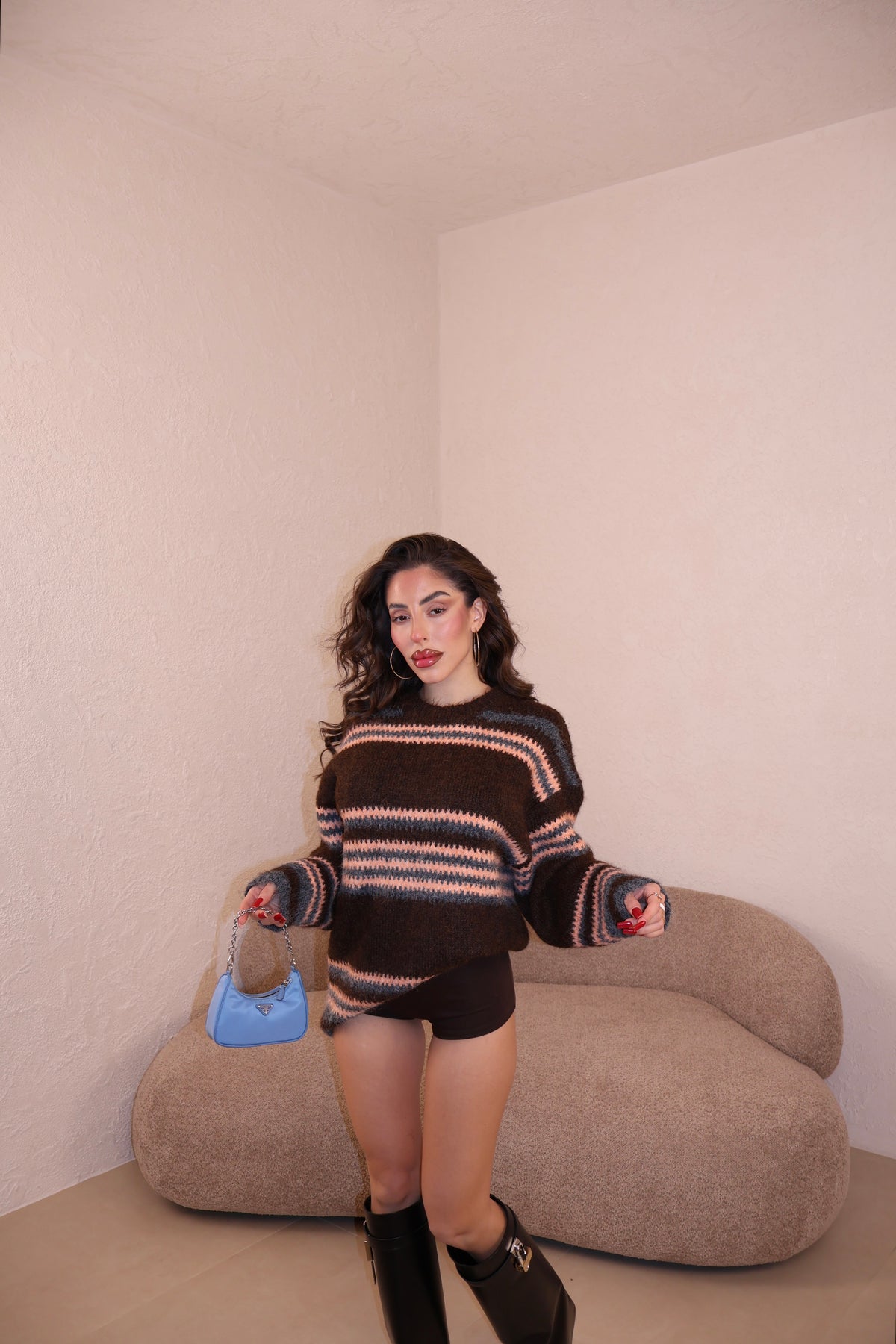 Pullover in lana rasata a righe con scollo rotondo. Taglia unica.
