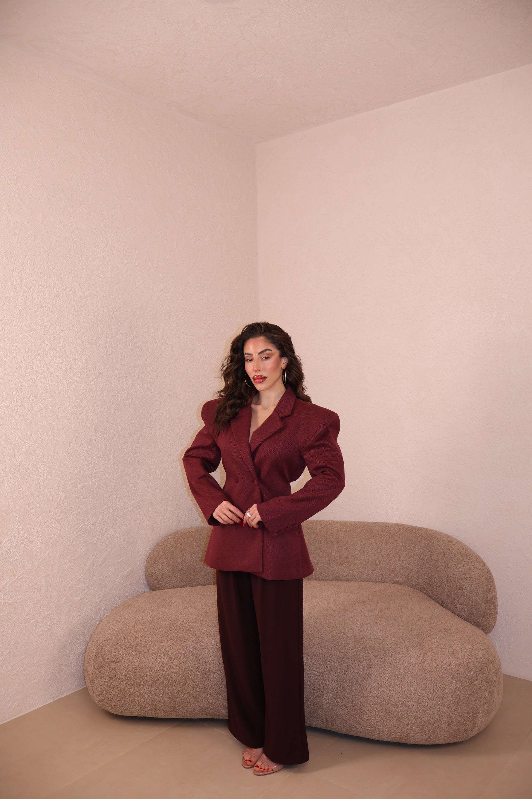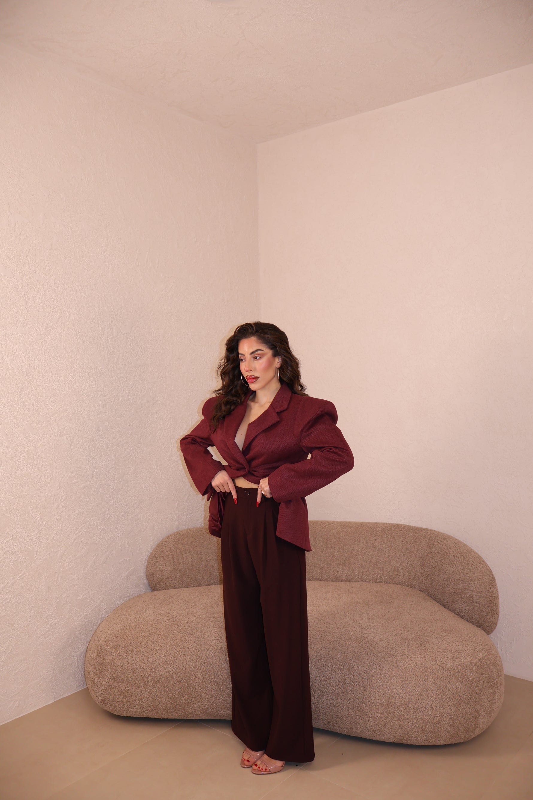 Pantaloni vita alta con pinces frontali e passanti.Gamba dritta. Chiusura frontale con cerniera e bottone. La modella indossa taglia XS.