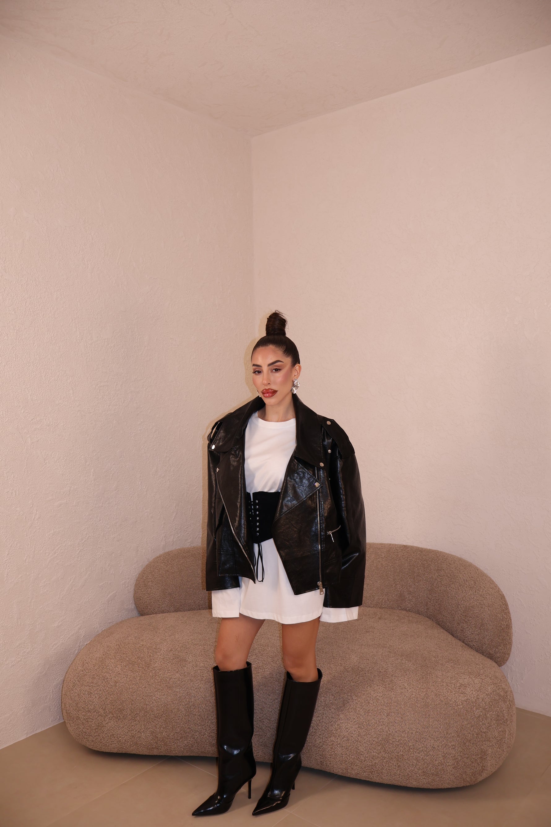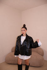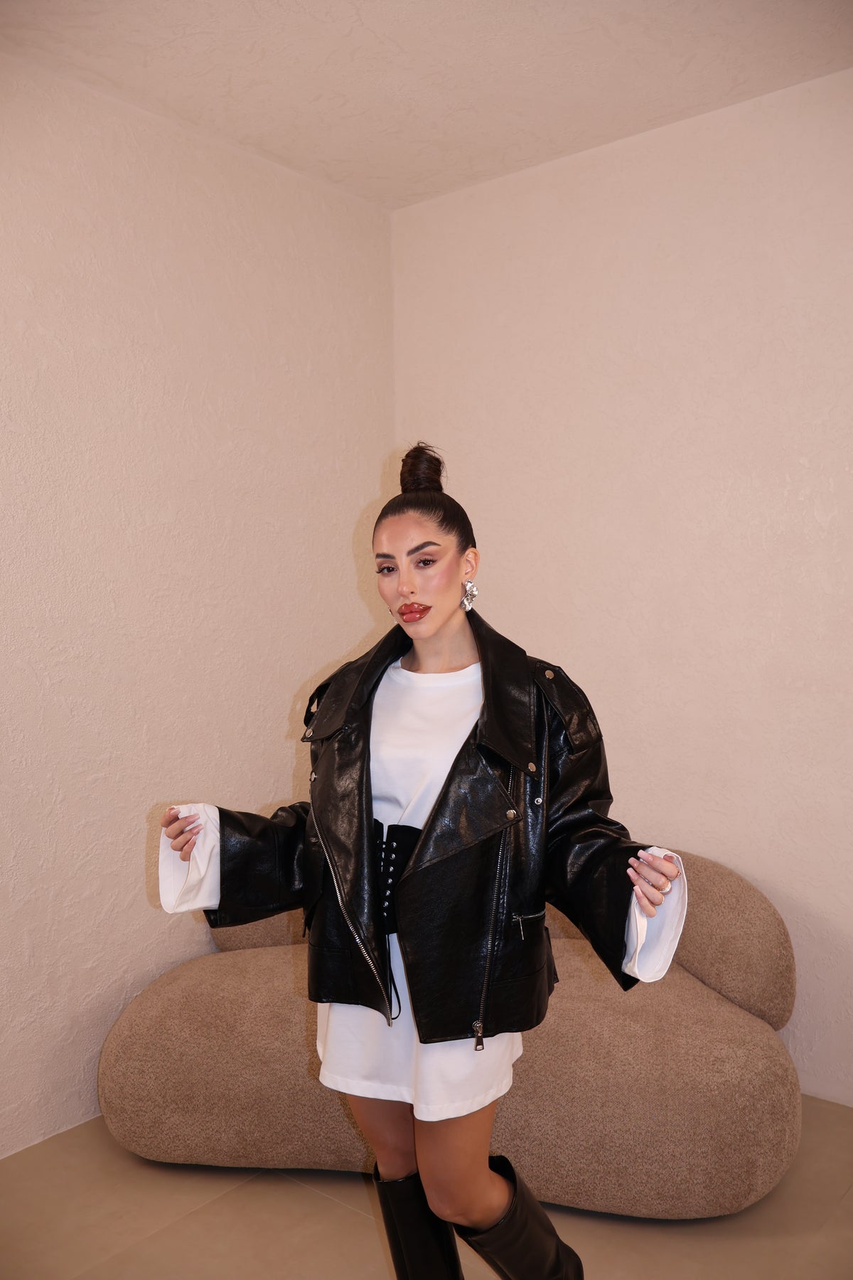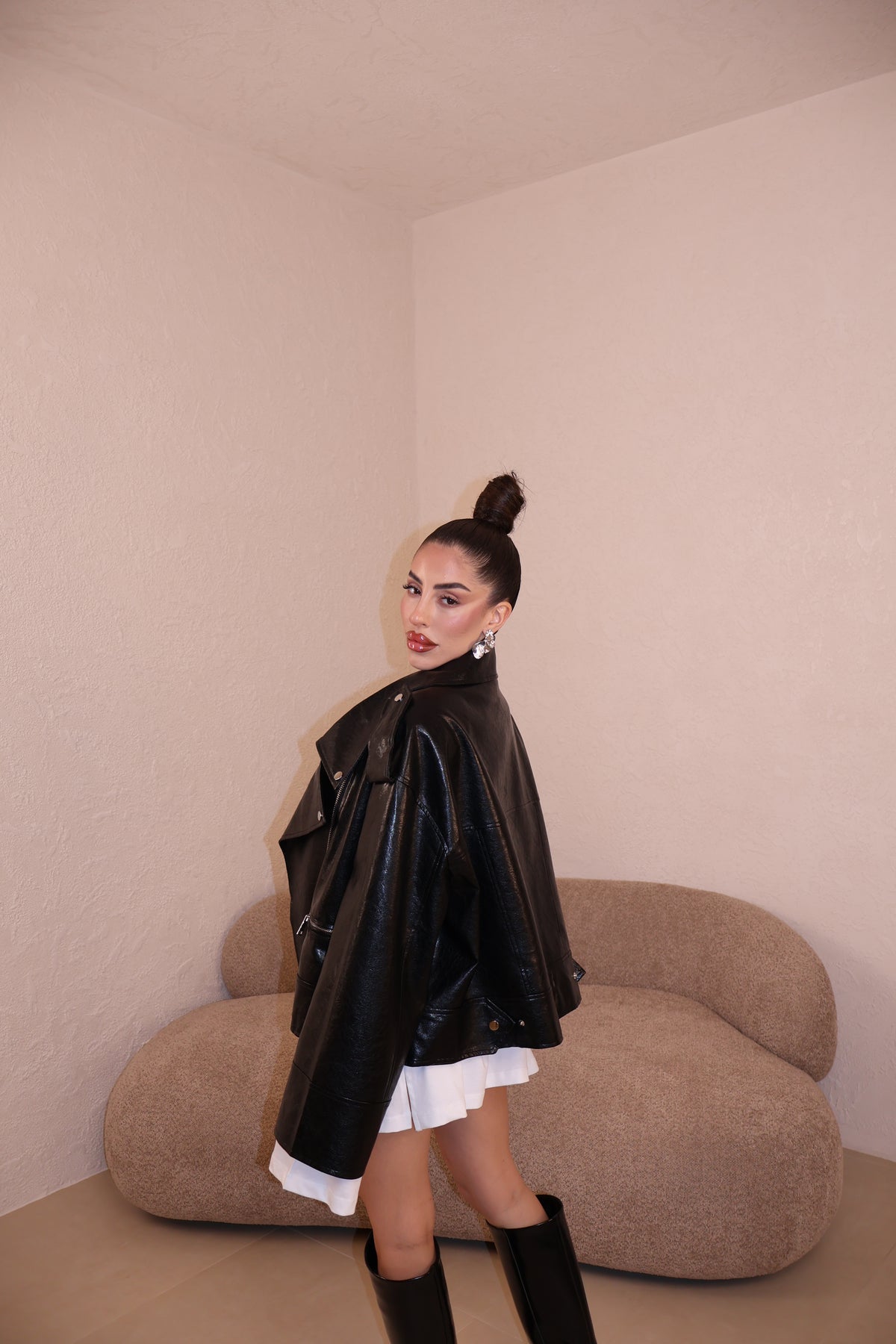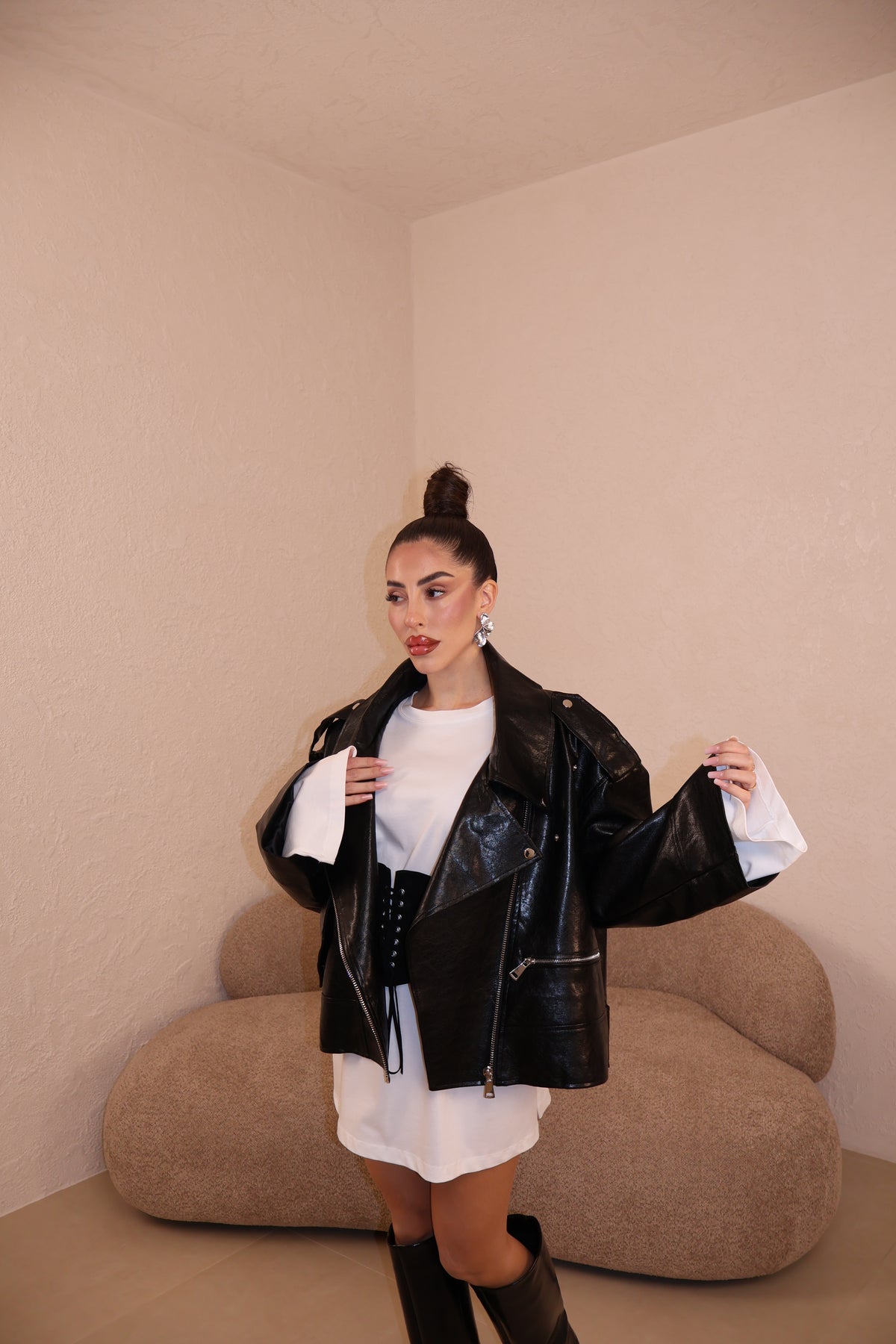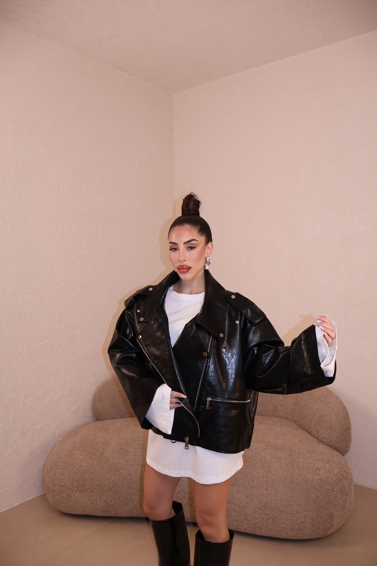 Prezzo unitario / perChiodo over in ecopelle con colletto a revers e cerniera laterale. Taglia unica.