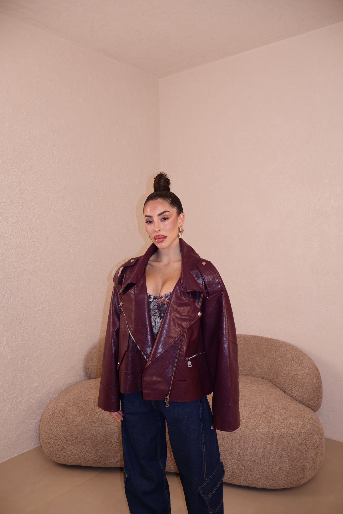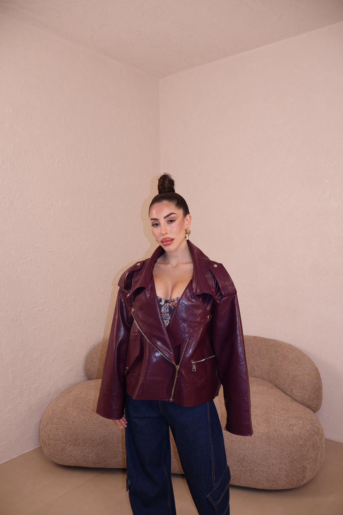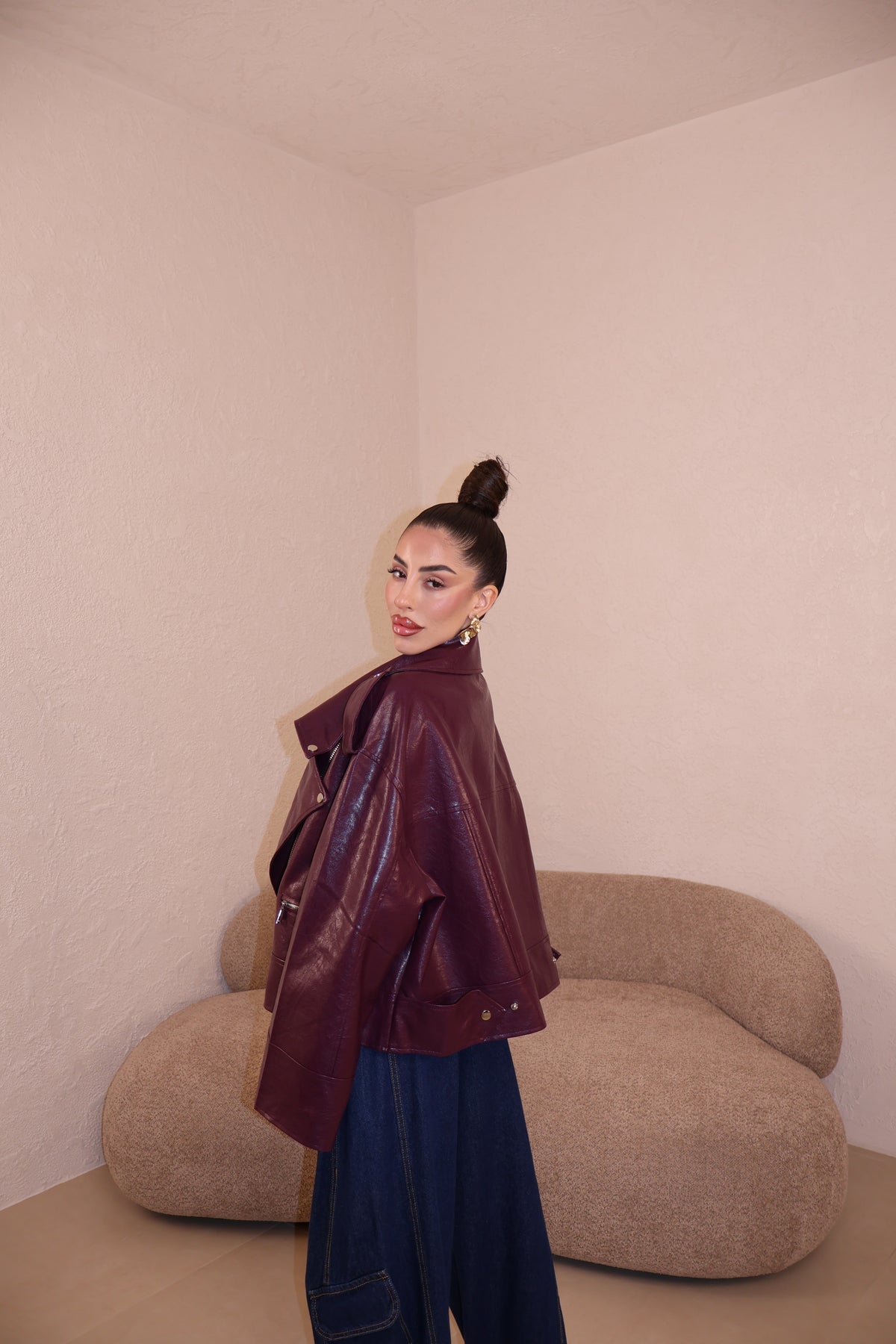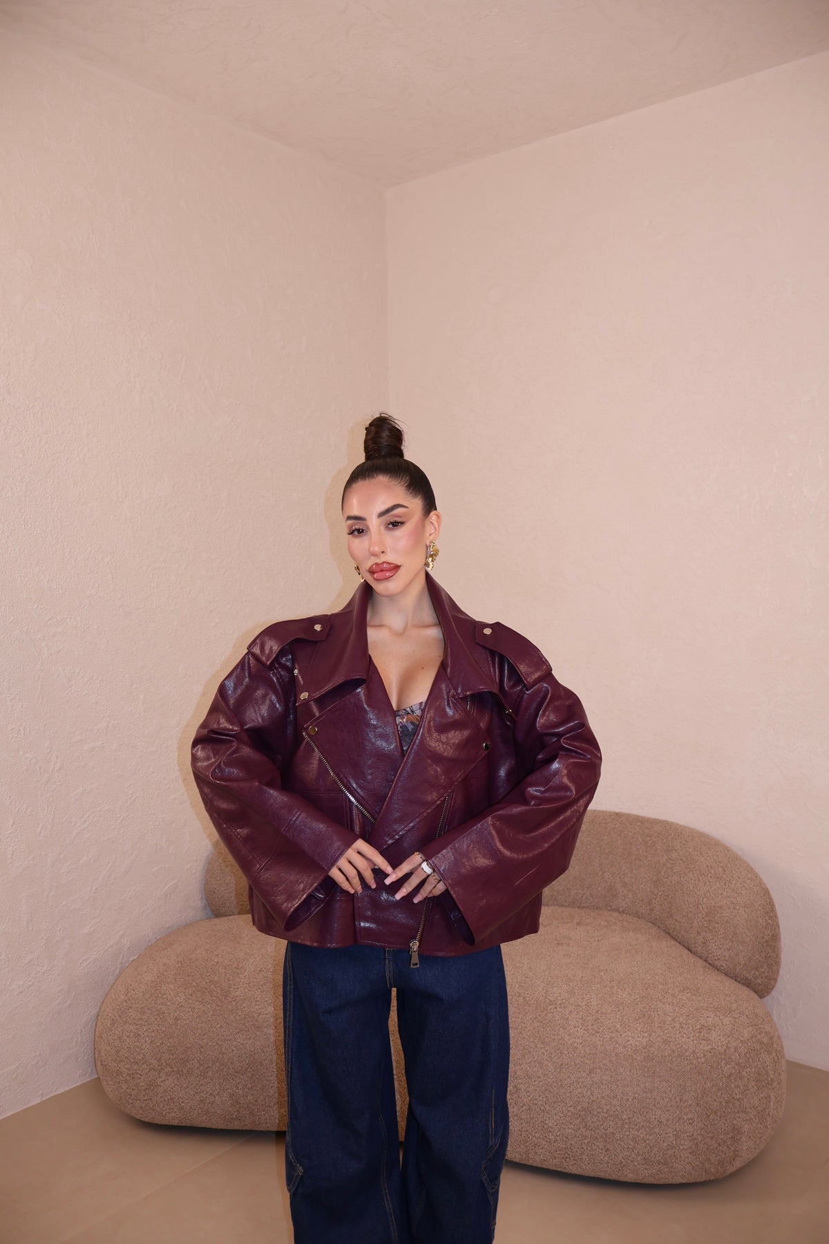 Prezzo unitario / perChiodo over in ecopelle con colletto a revers e cerniera laterale. Taglia unica.