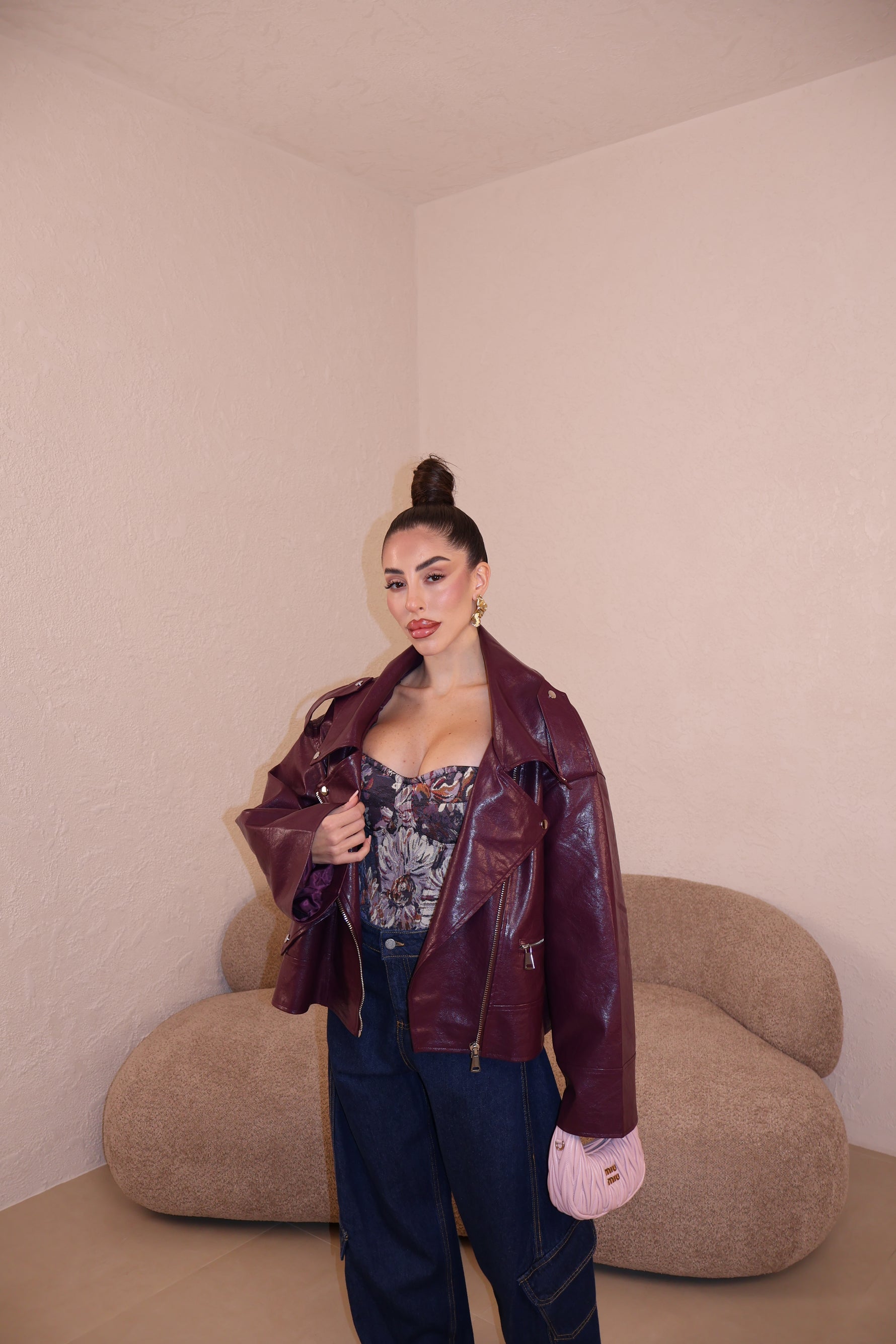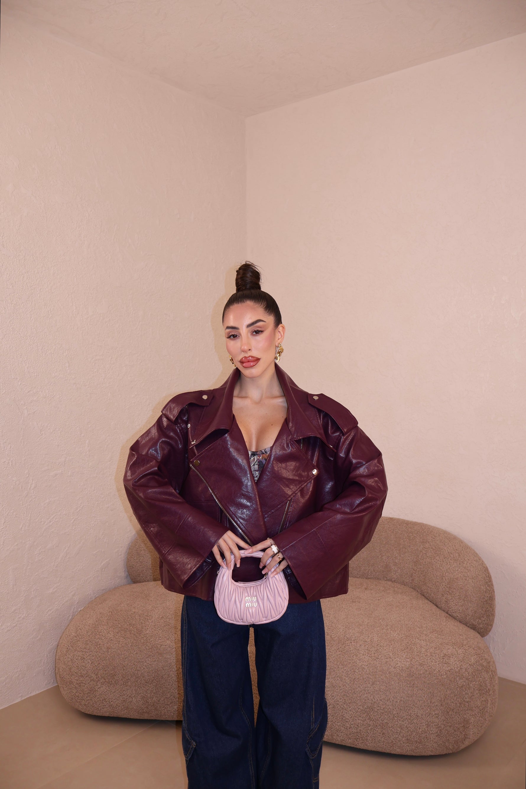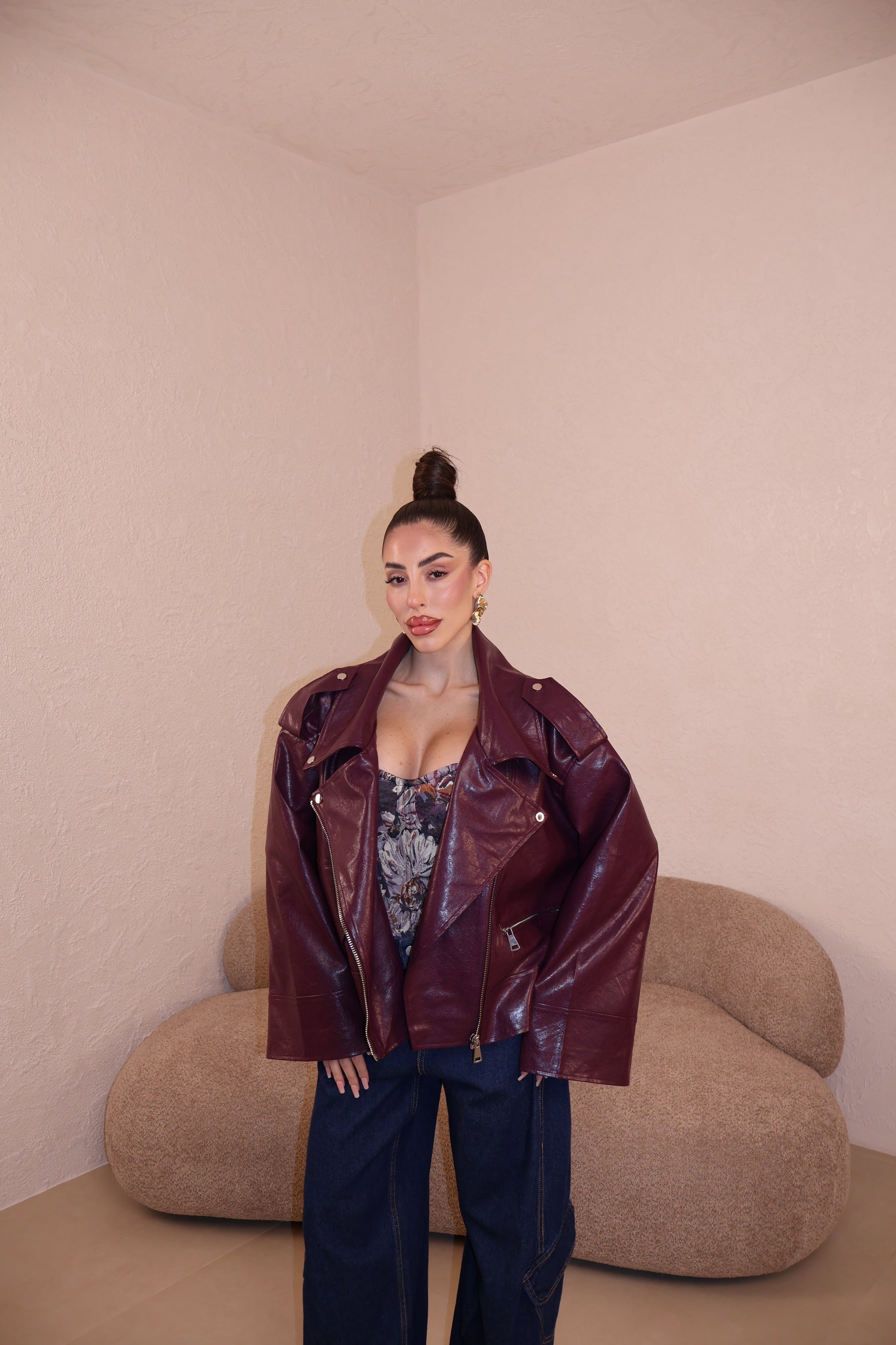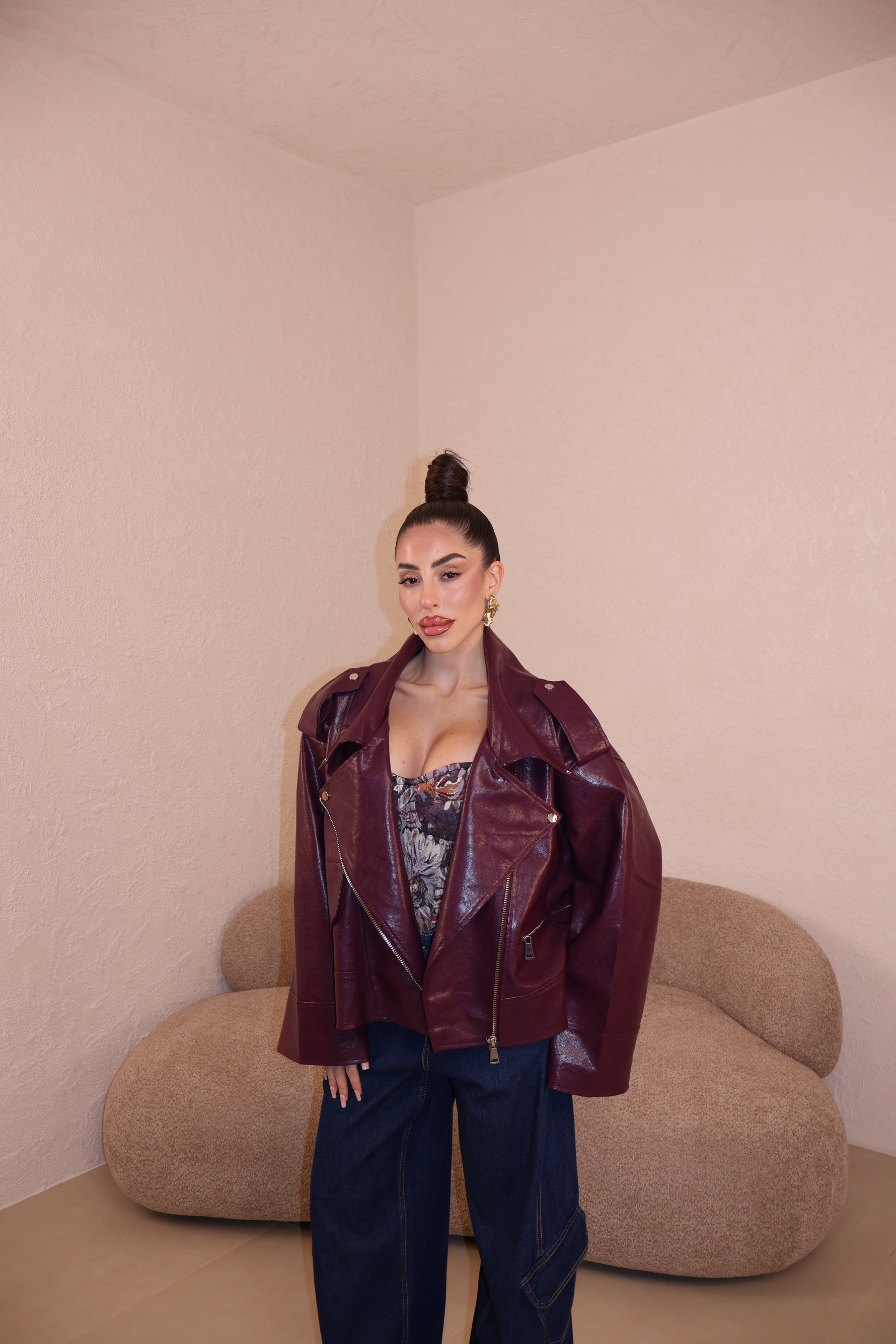 Prezzo unitario / perChiodo over in ecopelle con colletto a revers e cerniera laterale. Taglia unica.