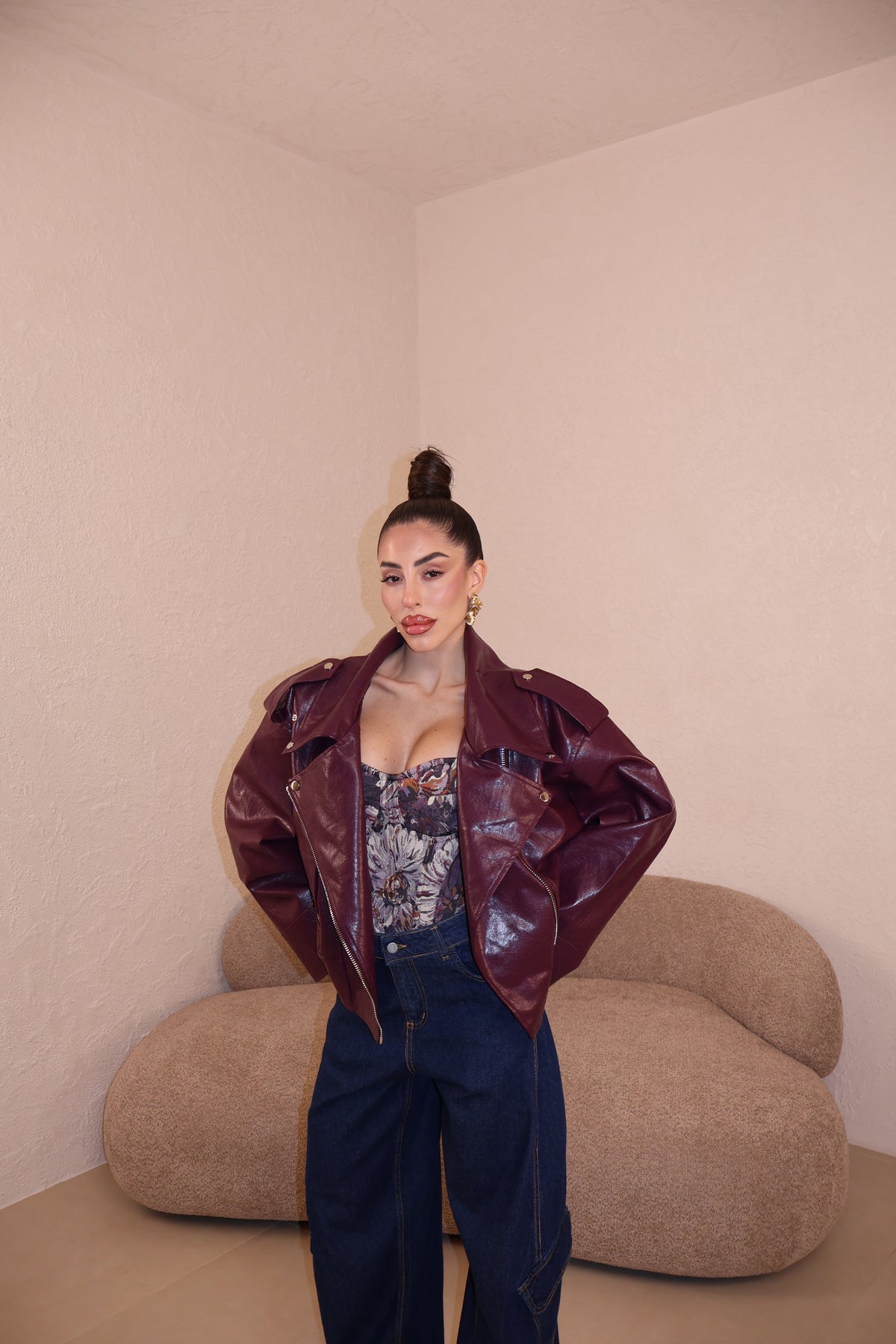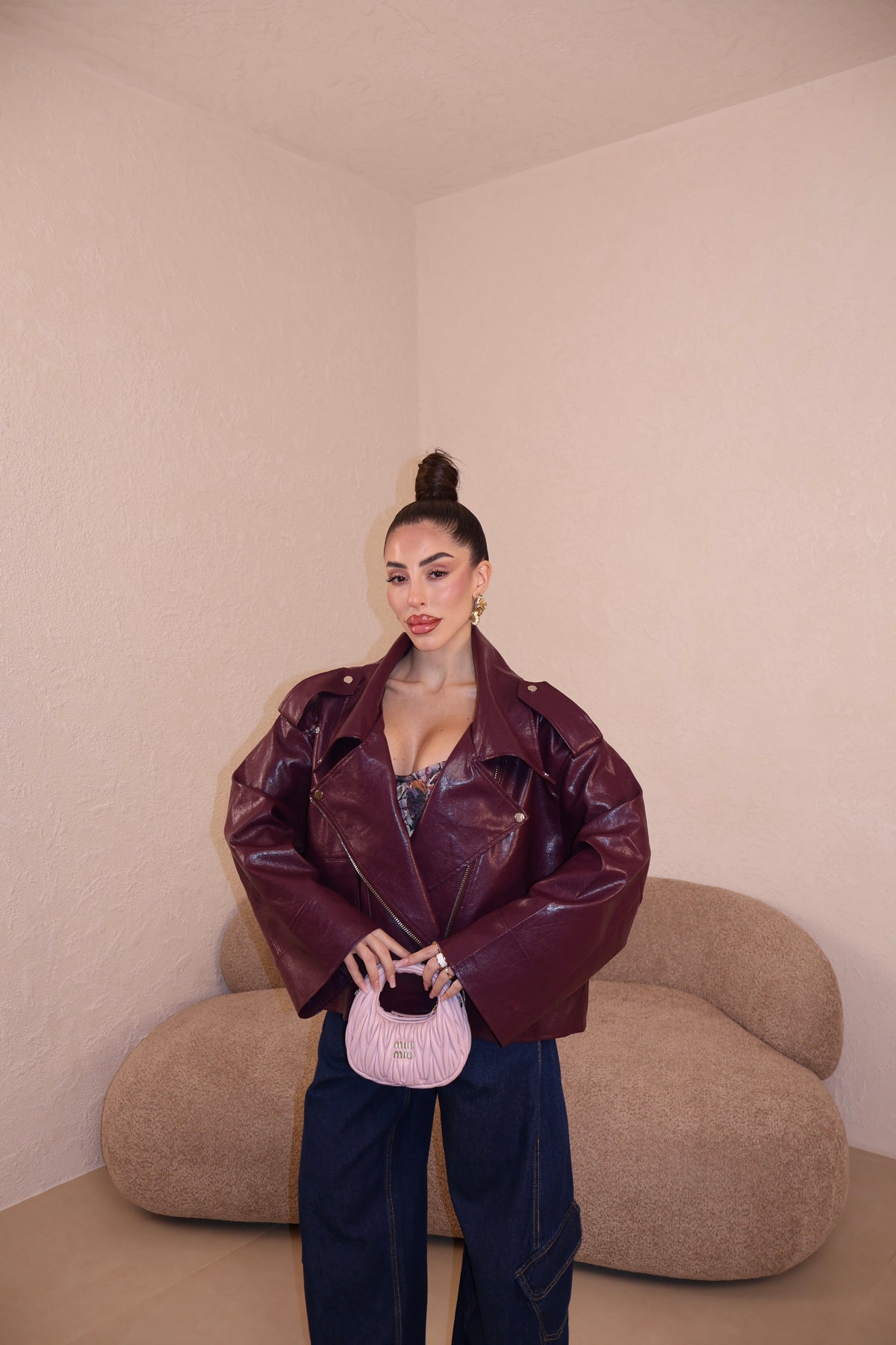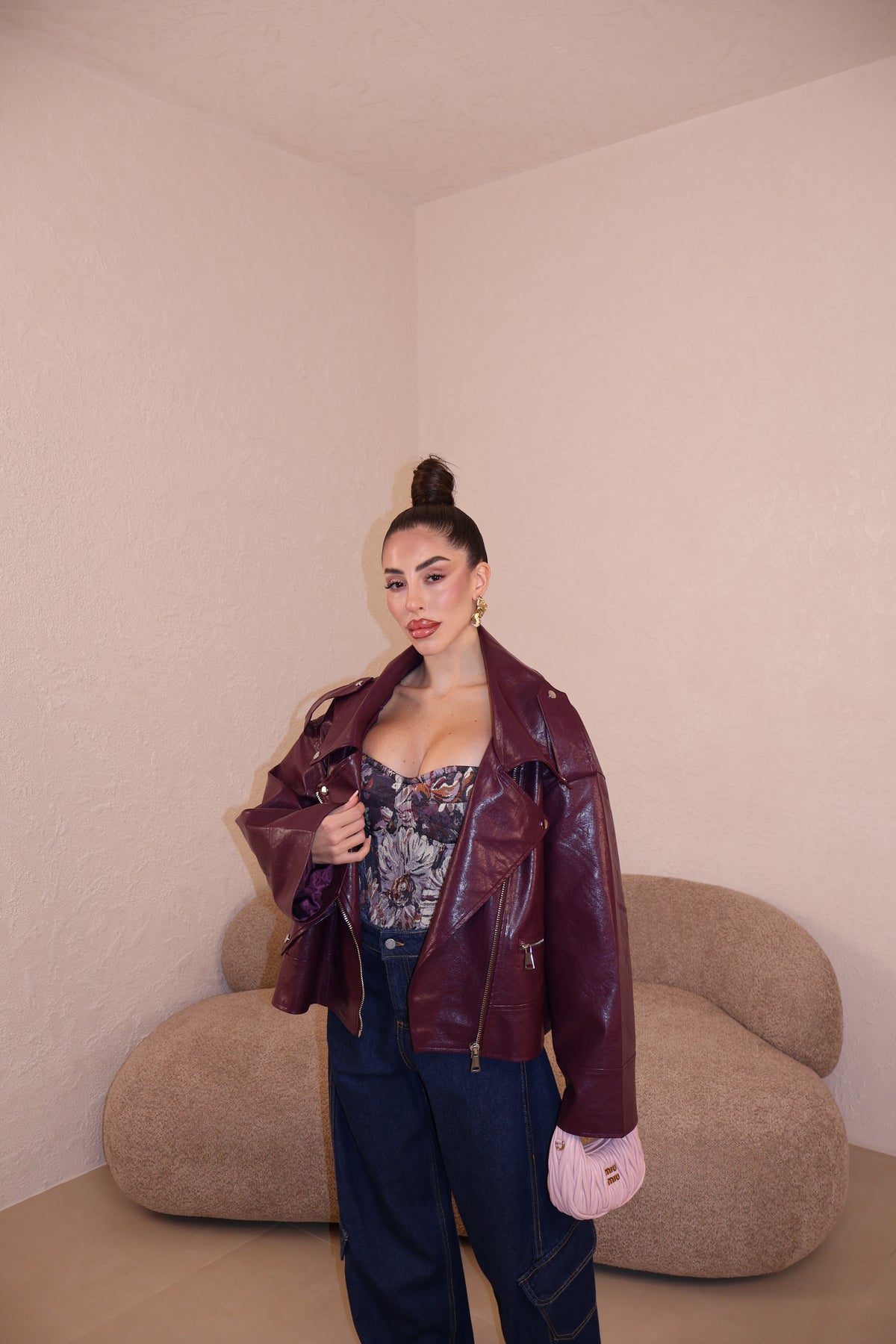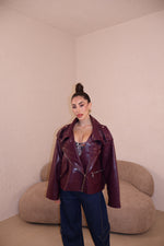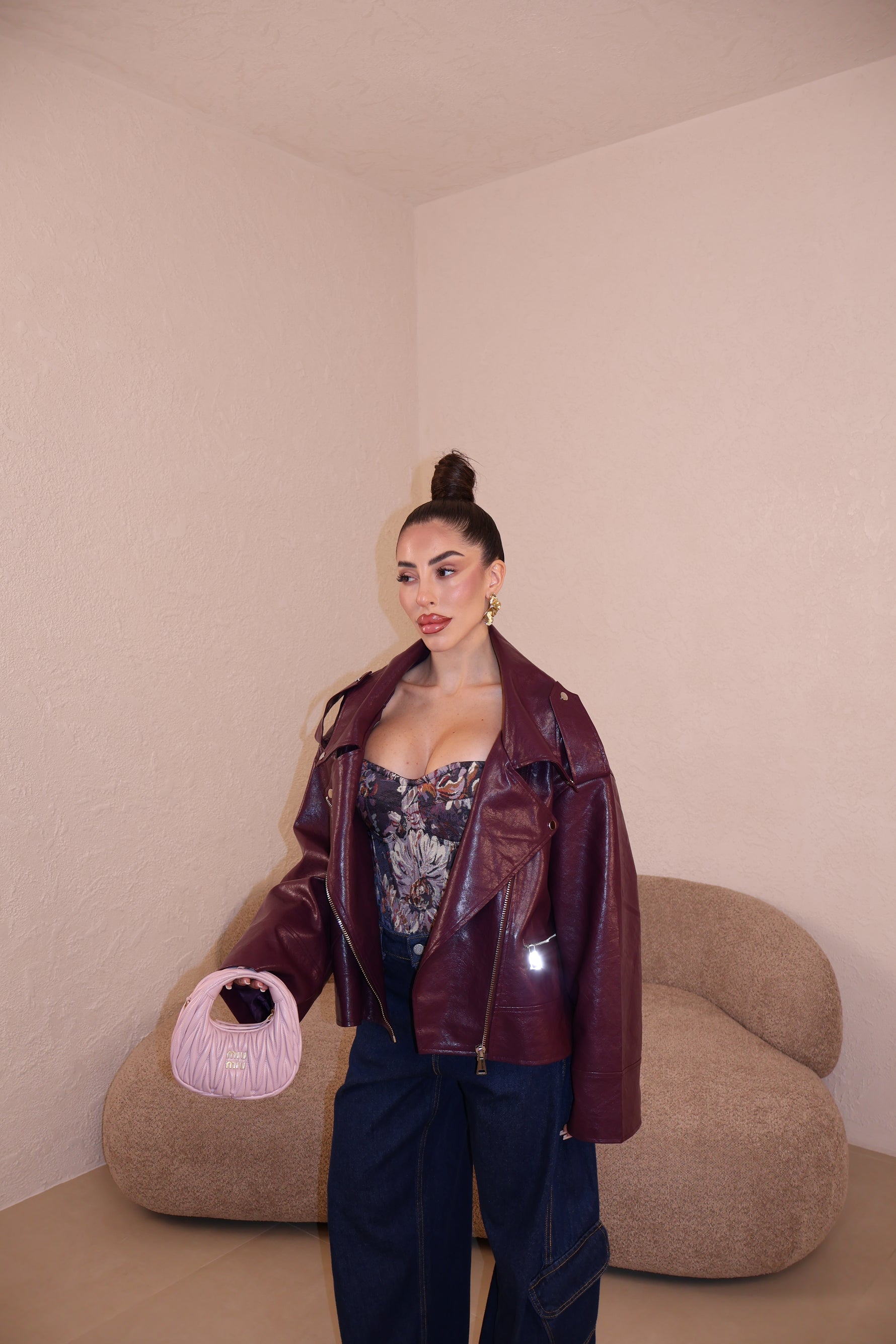 Prezzo unitario / perChiodo over in ecopelle con colletto a revers e cerniera laterale. Taglia unica.