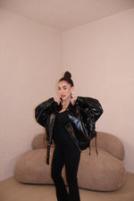 Chiodo Ecopelle Stringhe BLACK
