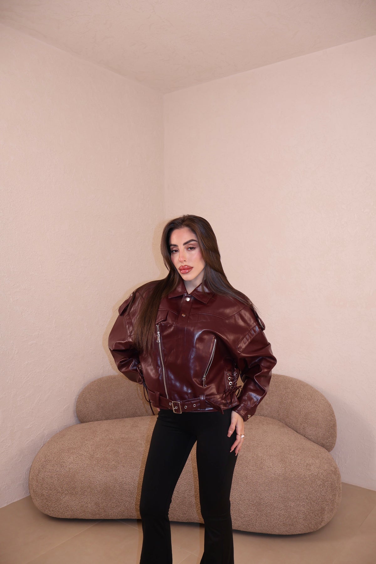 Chiodo Ecopelle Stringhe BORDEAUX