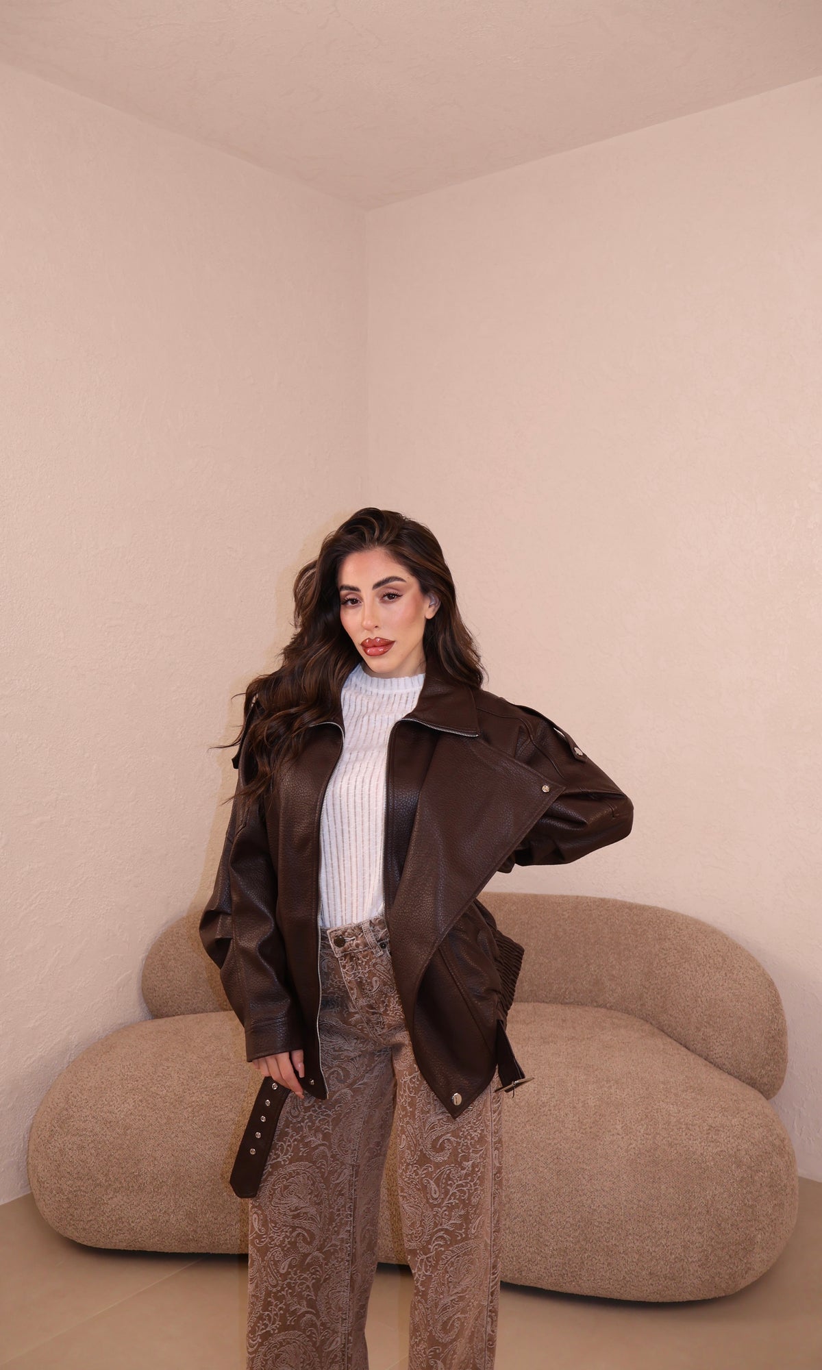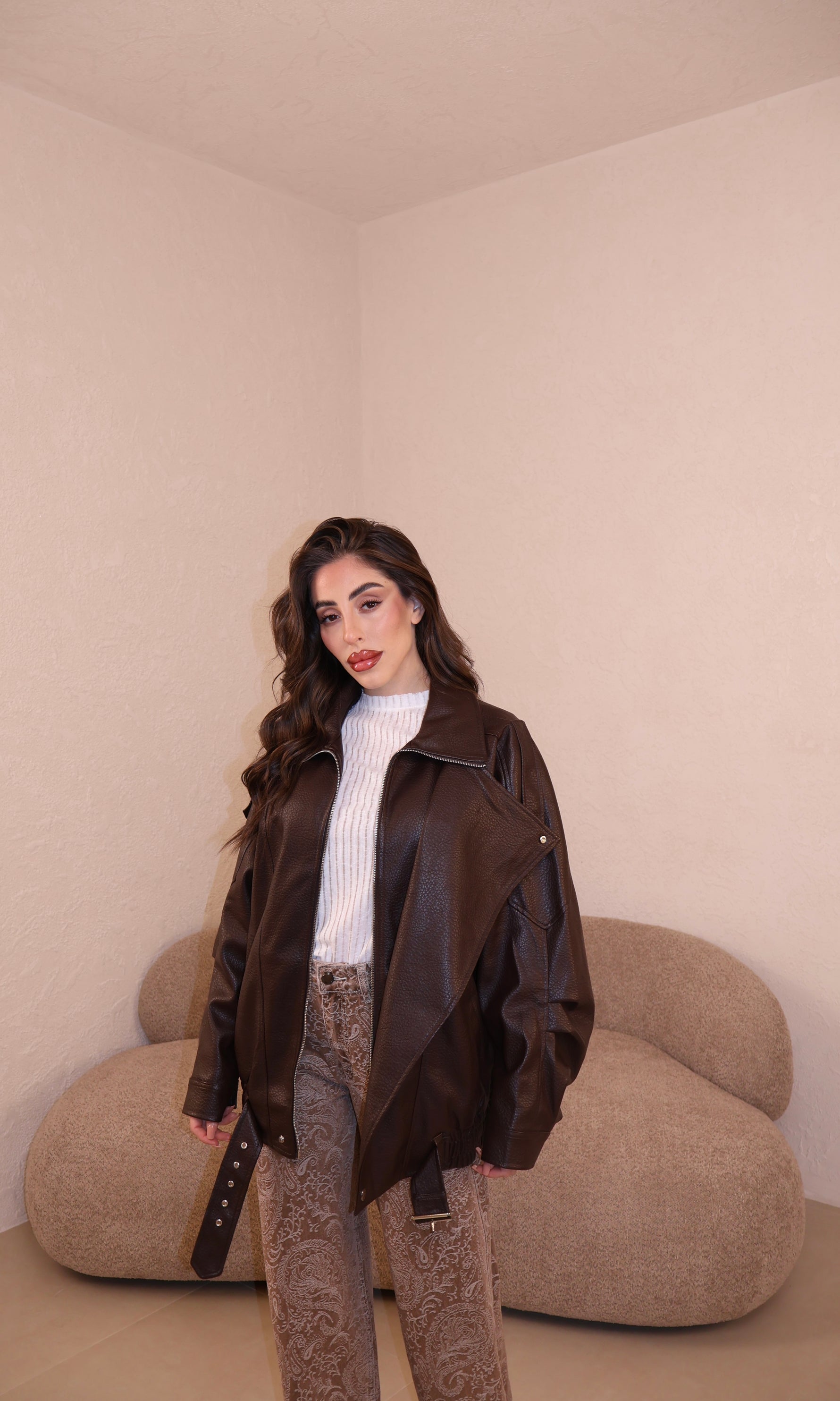 Chiodo in ecopelle con cintura in vita. Taglia unica.