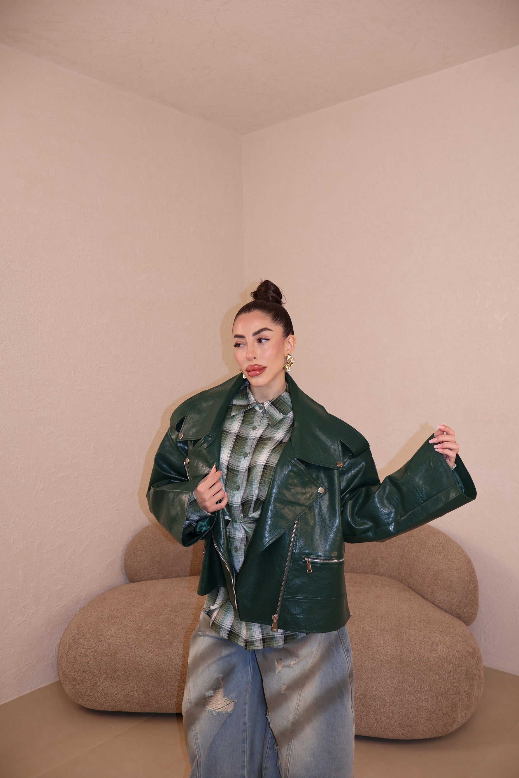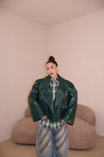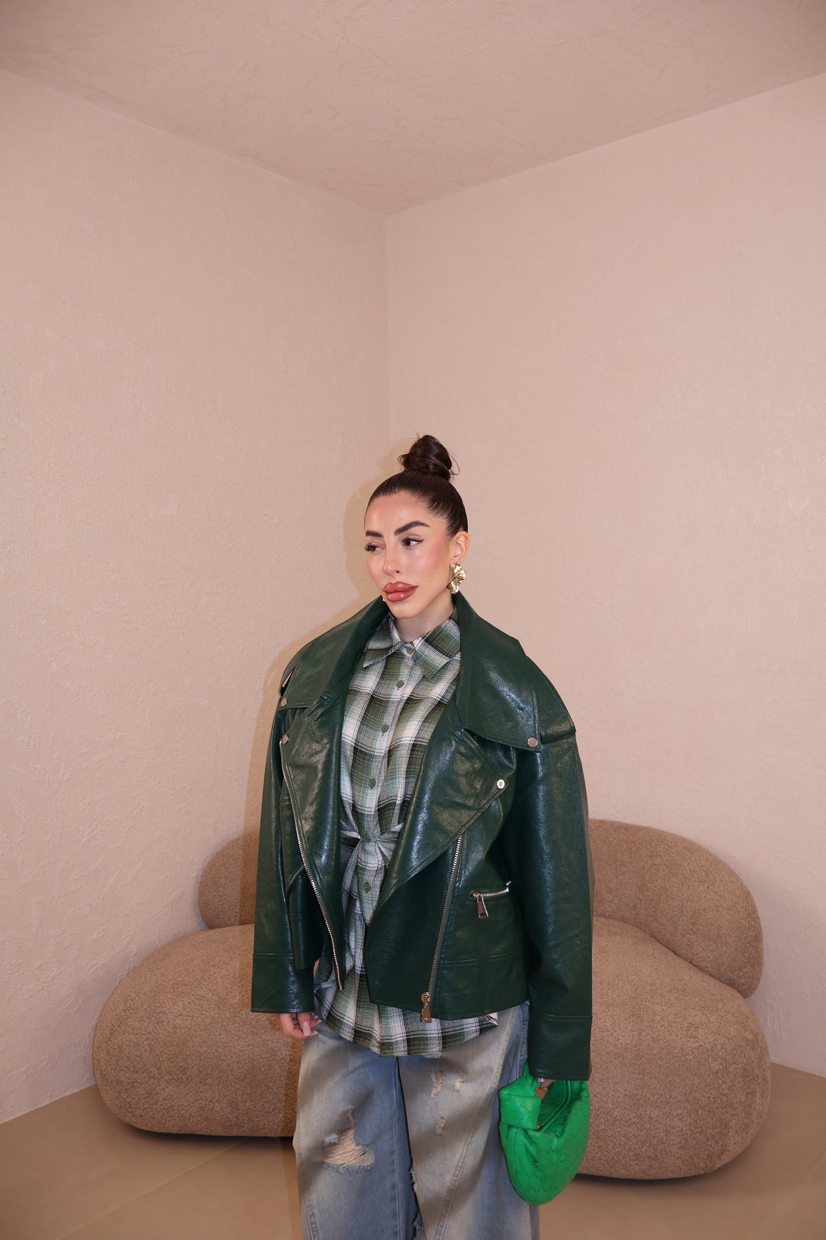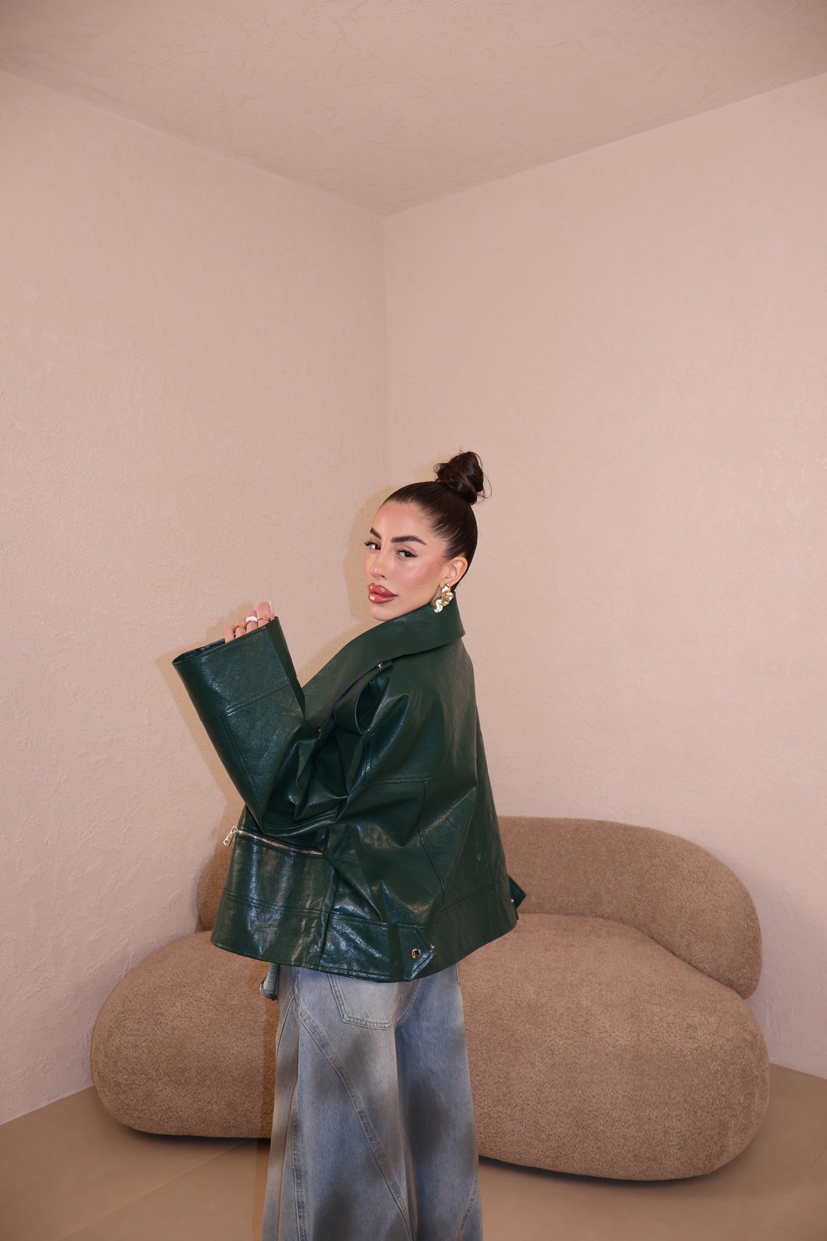 Prezzo unitario / perChiodo over in ecopelle con colletto a revers e cerniera laterale. Taglia unica.