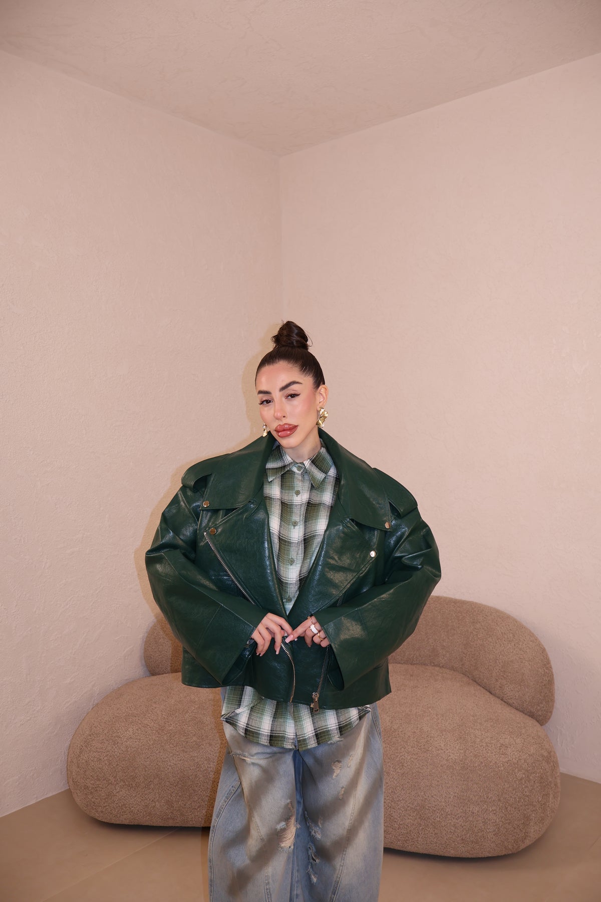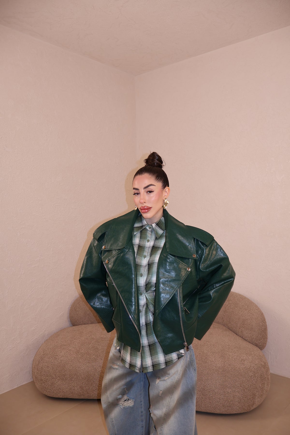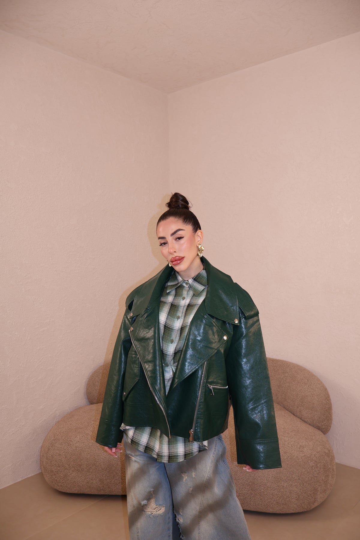Prezzo unitario / perChiodo over in ecopelle con colletto a revers e cerniera laterale. Taglia unica.